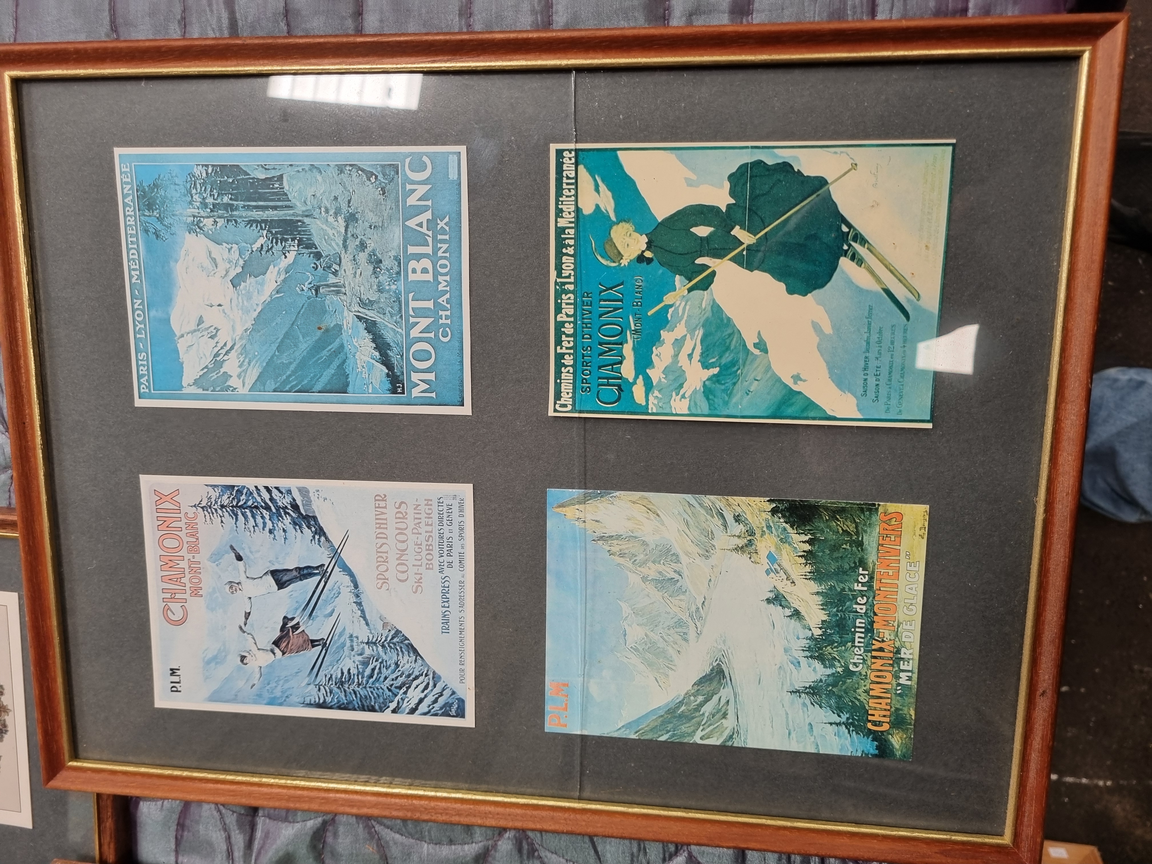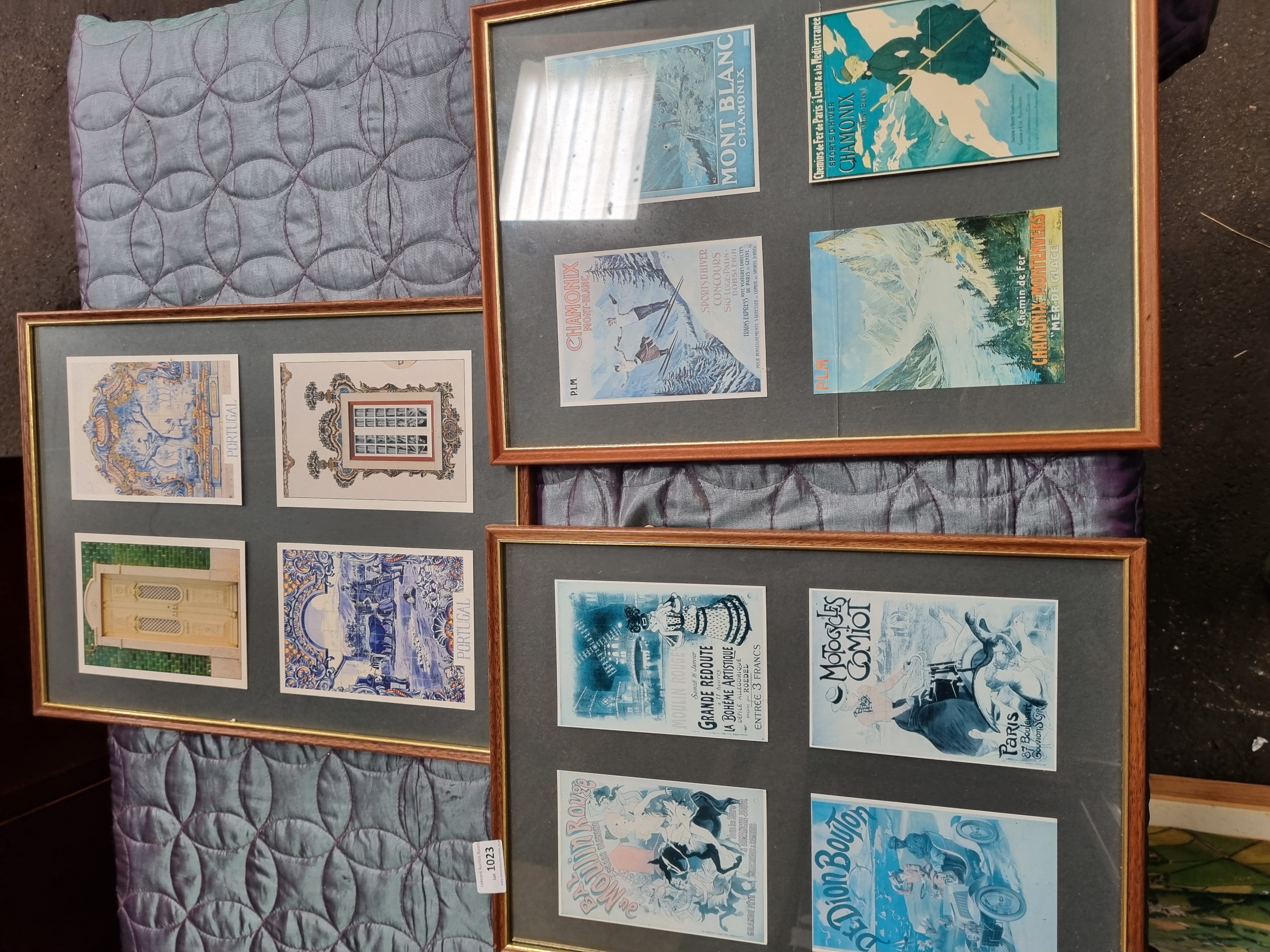 Lot 1023: A Trio of Framed Postcard Collages Featuring French Poster Art, Alpine Tourism, and Portuguese Architecture