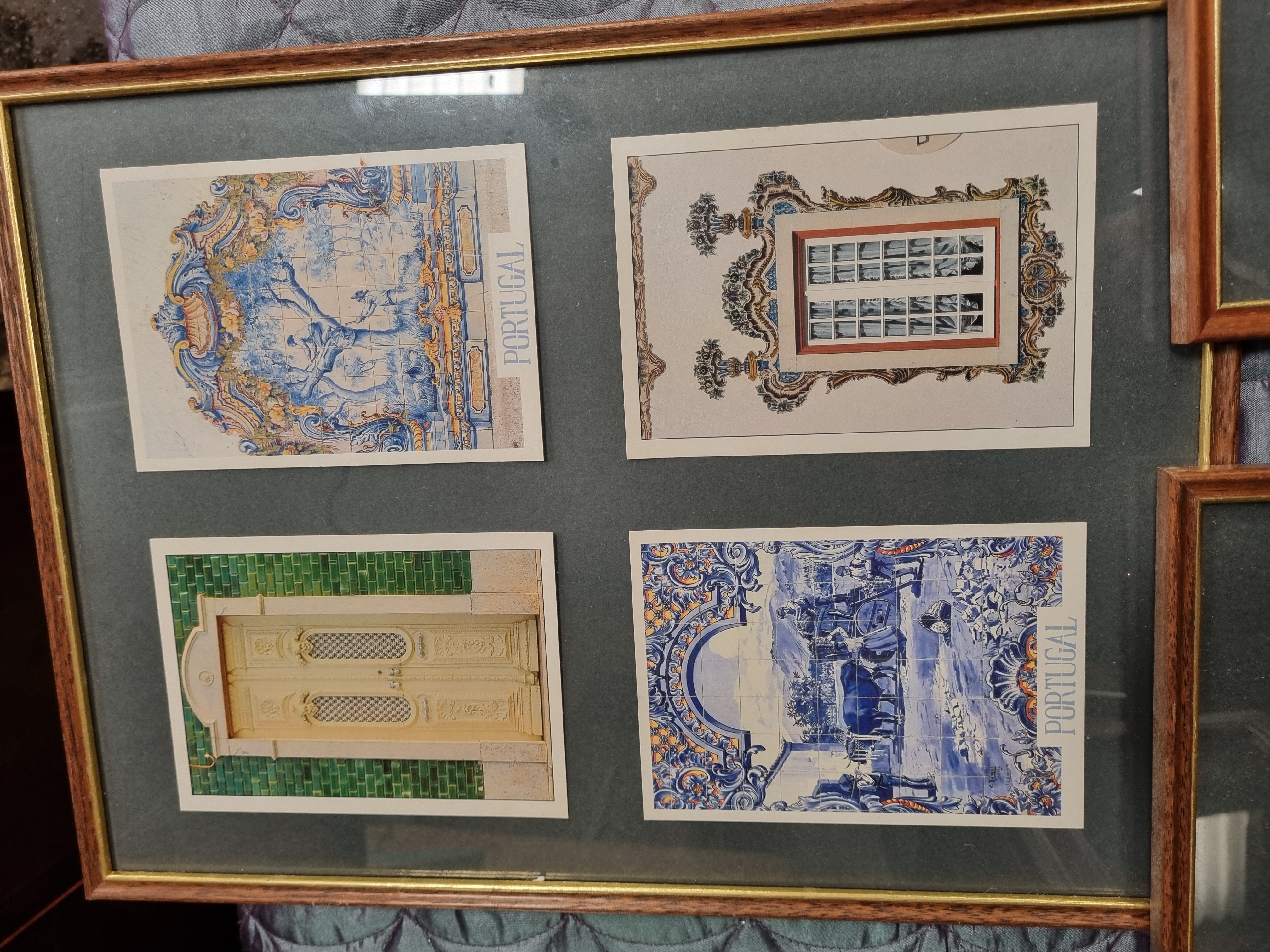 Each frame approximately 45 cm x 35 cm; individual postcards approximately 10 cm x 15 cm.