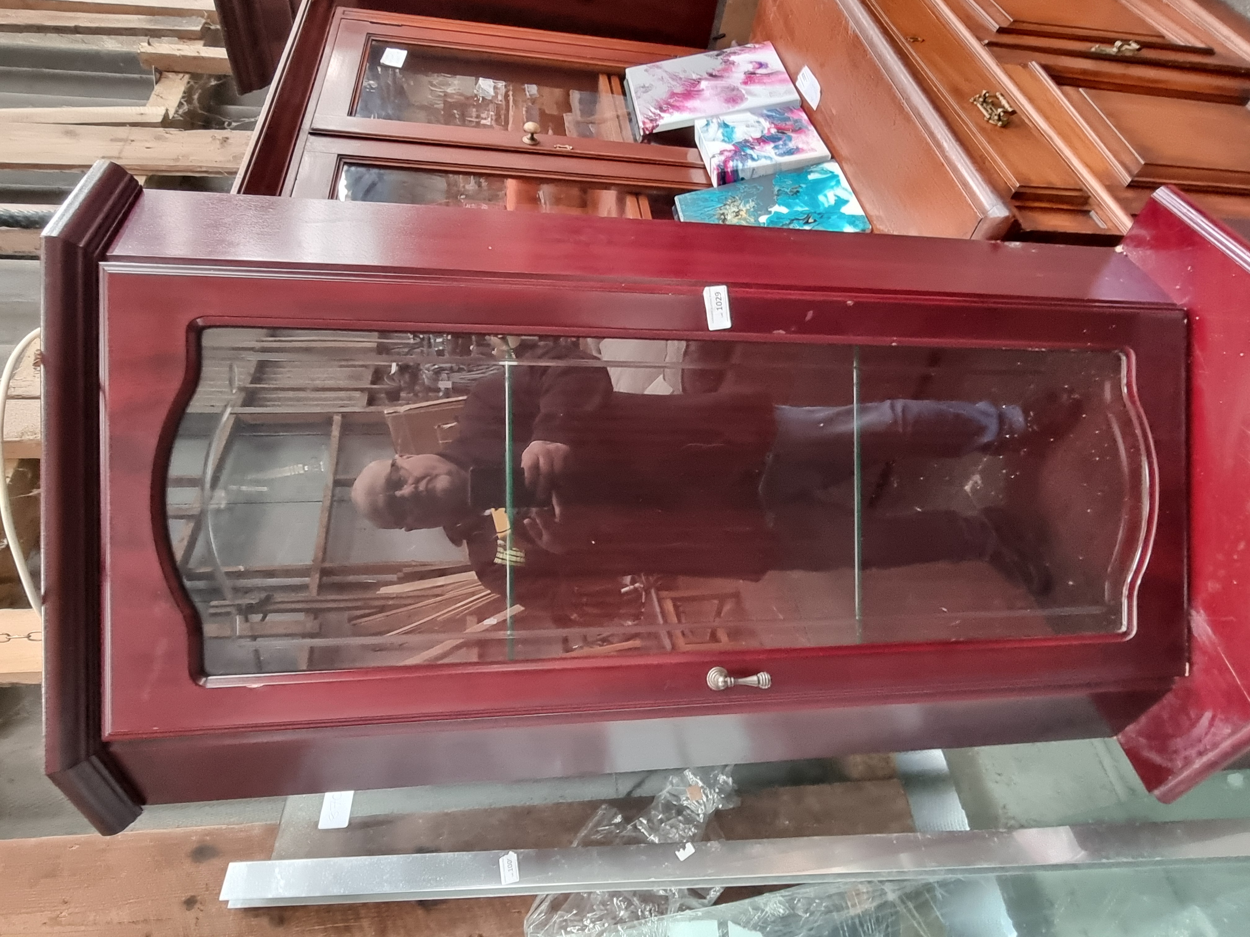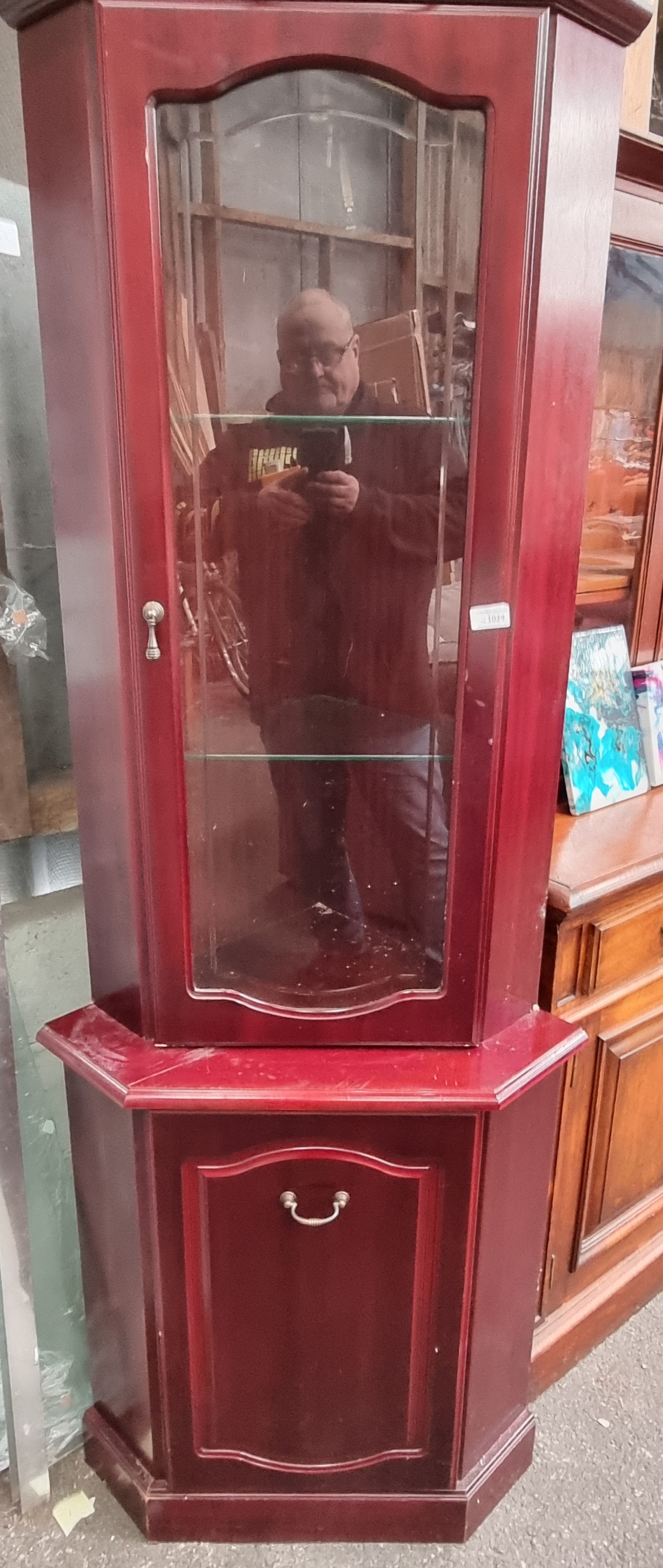 Lot 1029: A modern mahogany finished two piece corner display cabinet