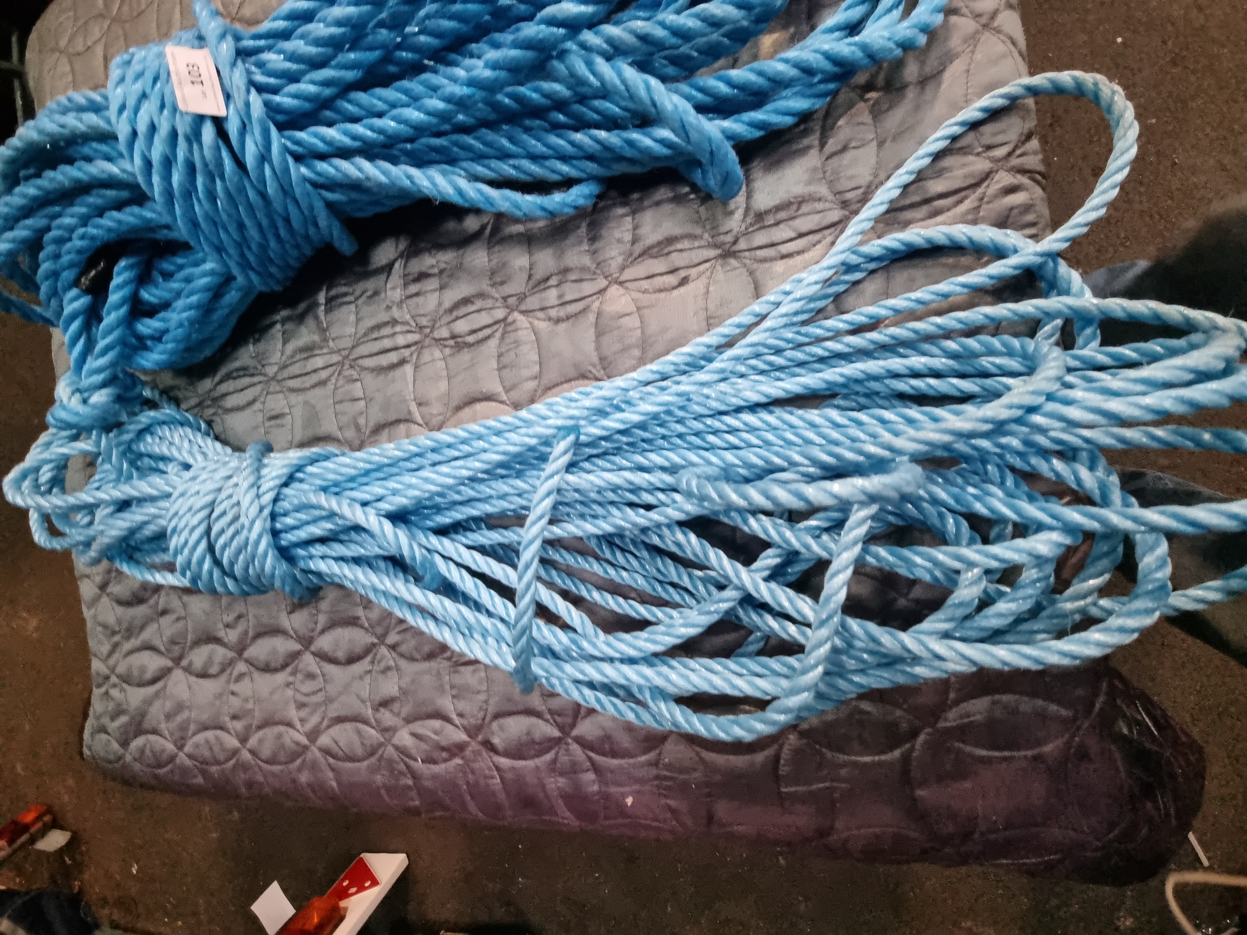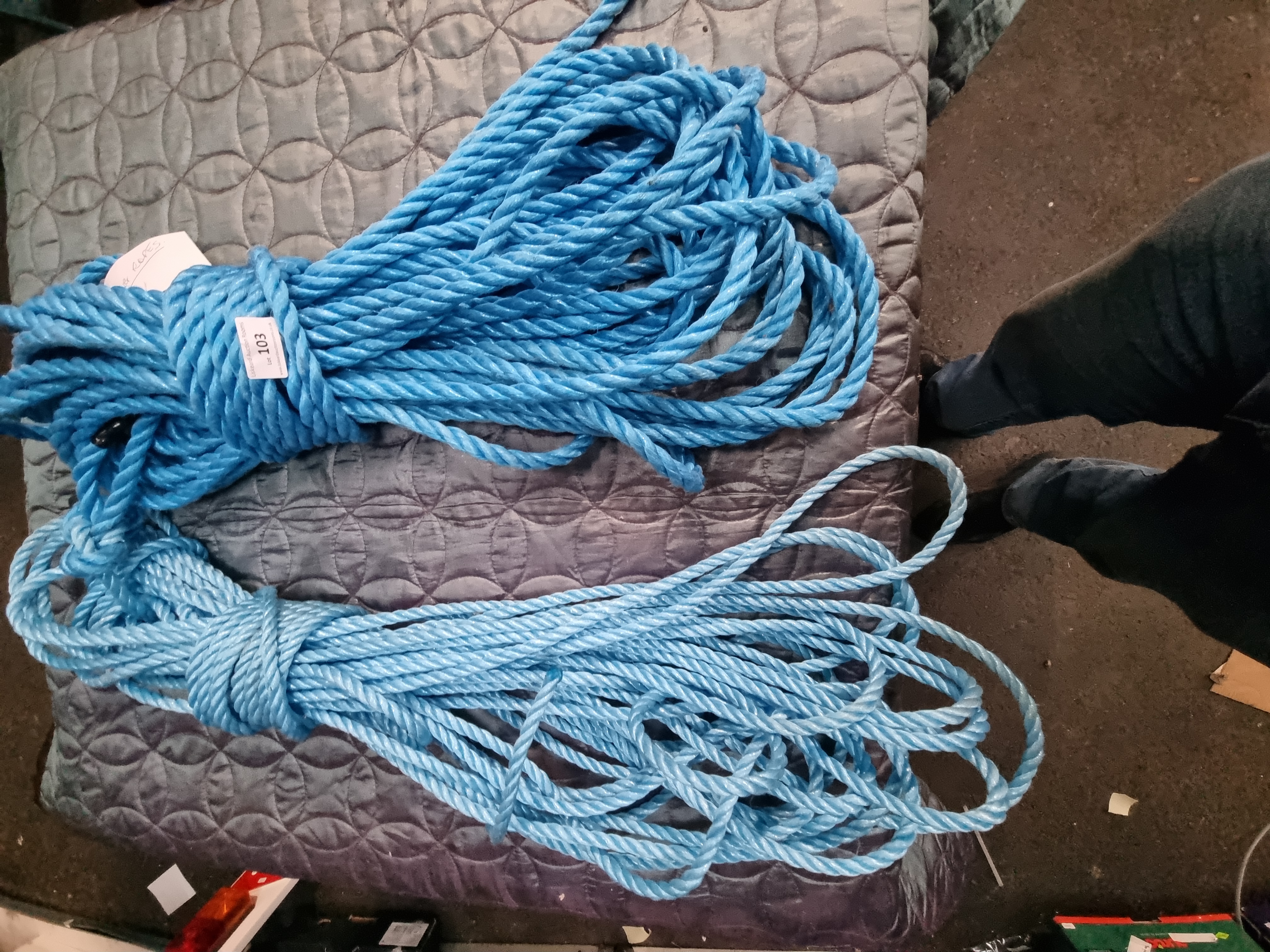 Lot 103: A Pair of Blue 3-Strand Twisted Polypropylene Ropes