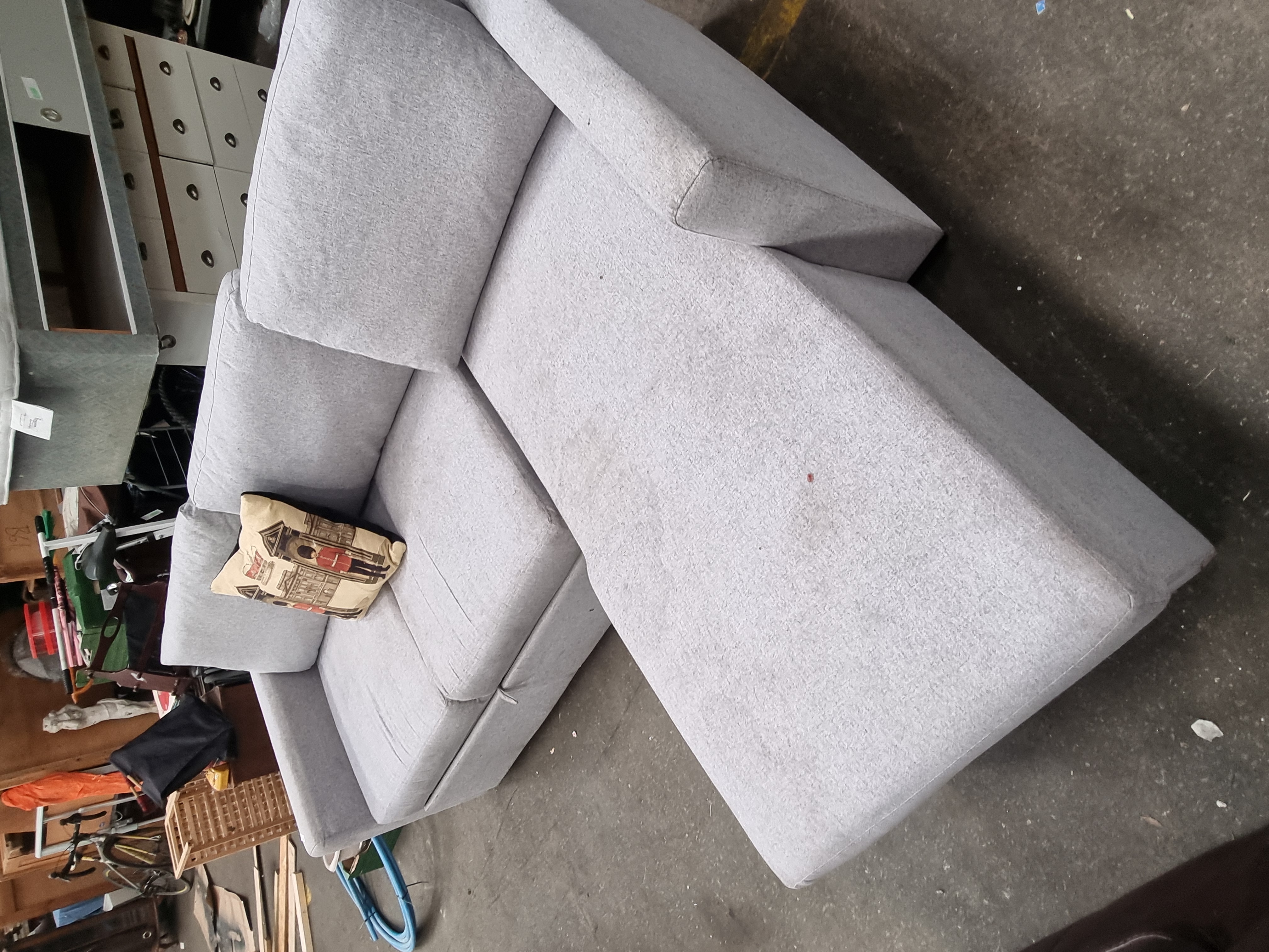 Lot 1036: A contemporary grey fabric upholstered corner sofa bed with right-hand chaise