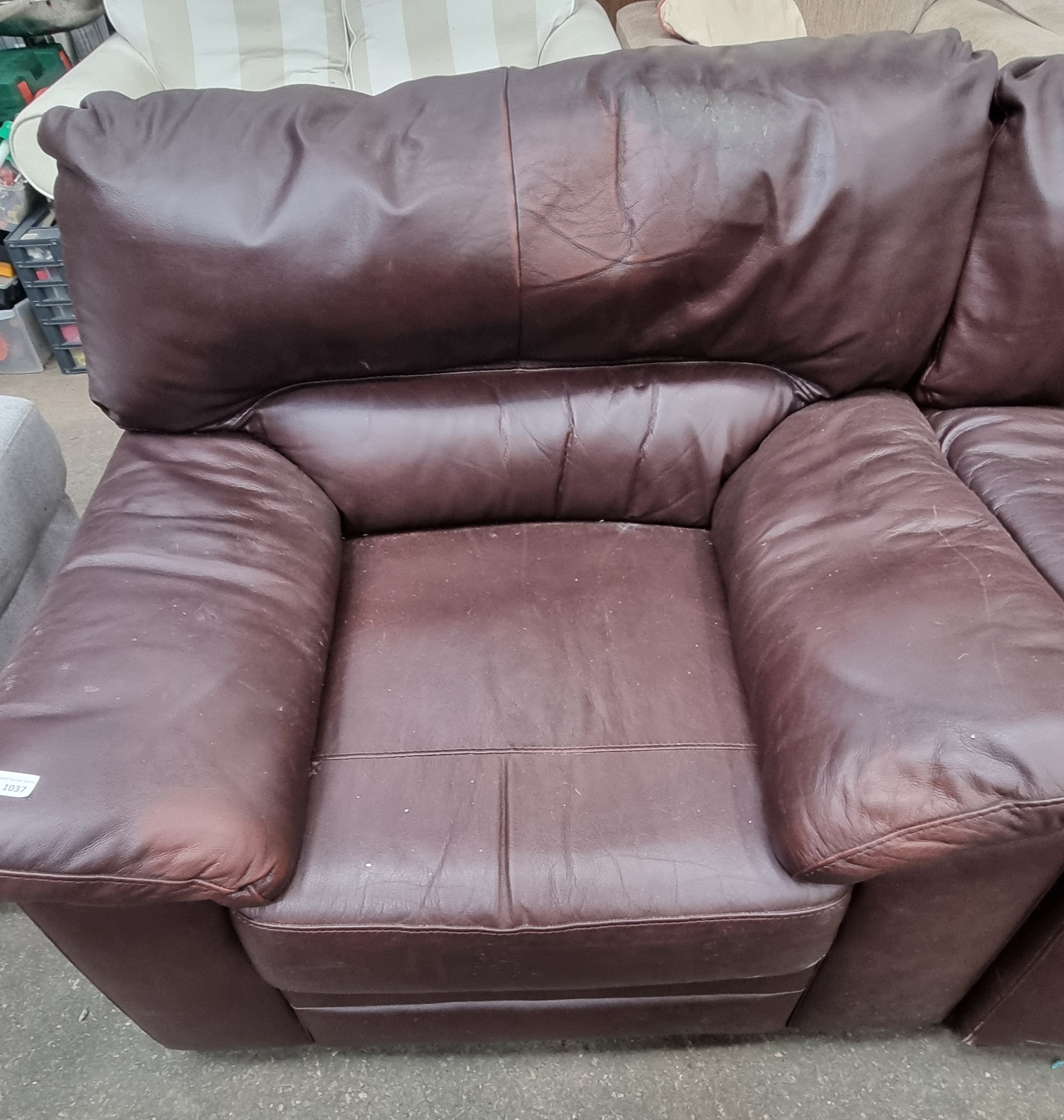 Lot 1037: A contemporary two-piece dark brown leather lounge suite comprising a two-seater sofa and matching armchair