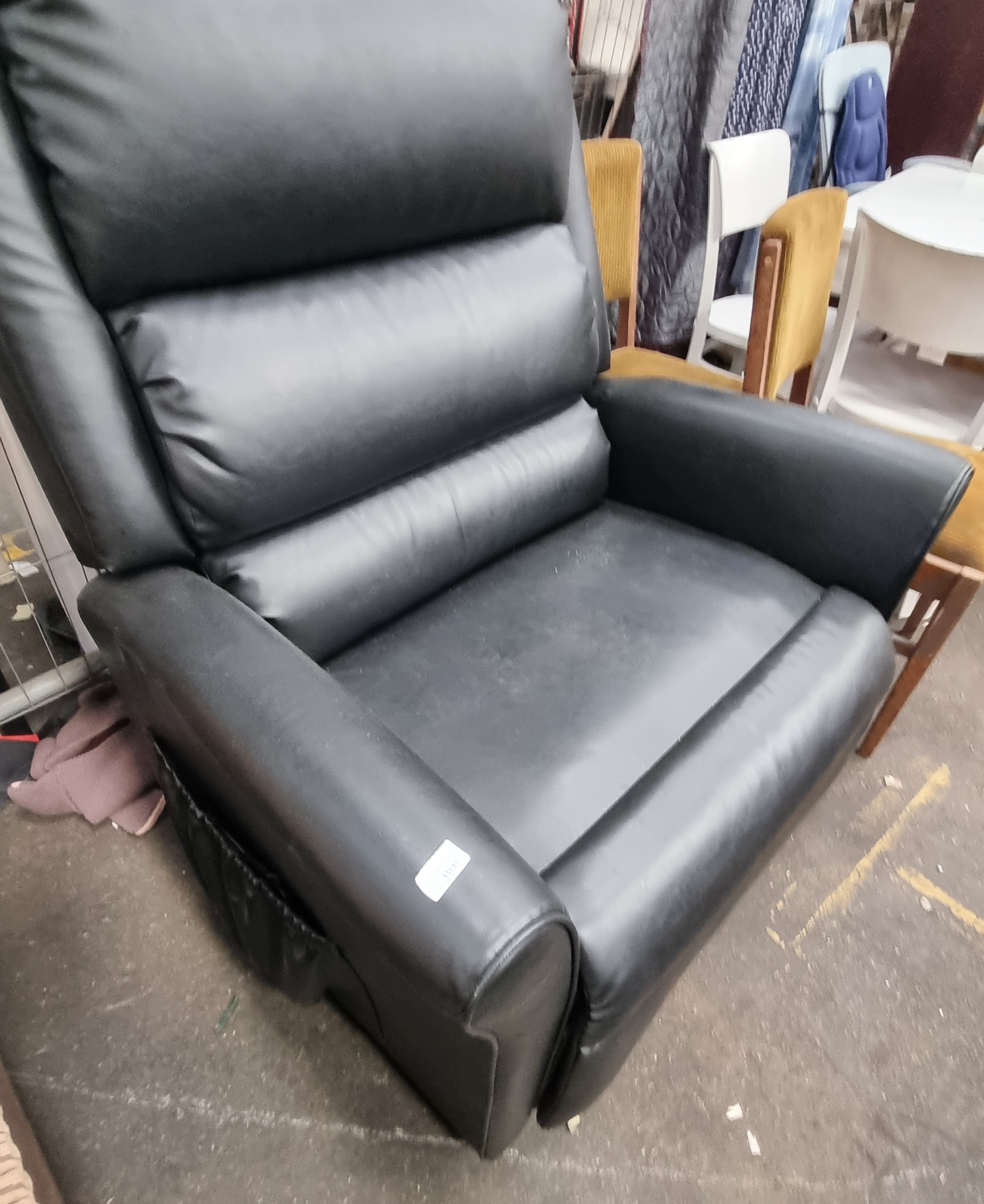 The chair is in used condition with visible surface scuffs and minor marks to the seat cushion. There is accumulated dust in the crevices and on the power components. The electrical functionality and lifting mechanism have not been tested. Bidders are advised that this item must comply with the Furniture and Furnishings (Fire Safety) Regulations 1988 for domestic use; the presence of a fire safety label has not been verified.