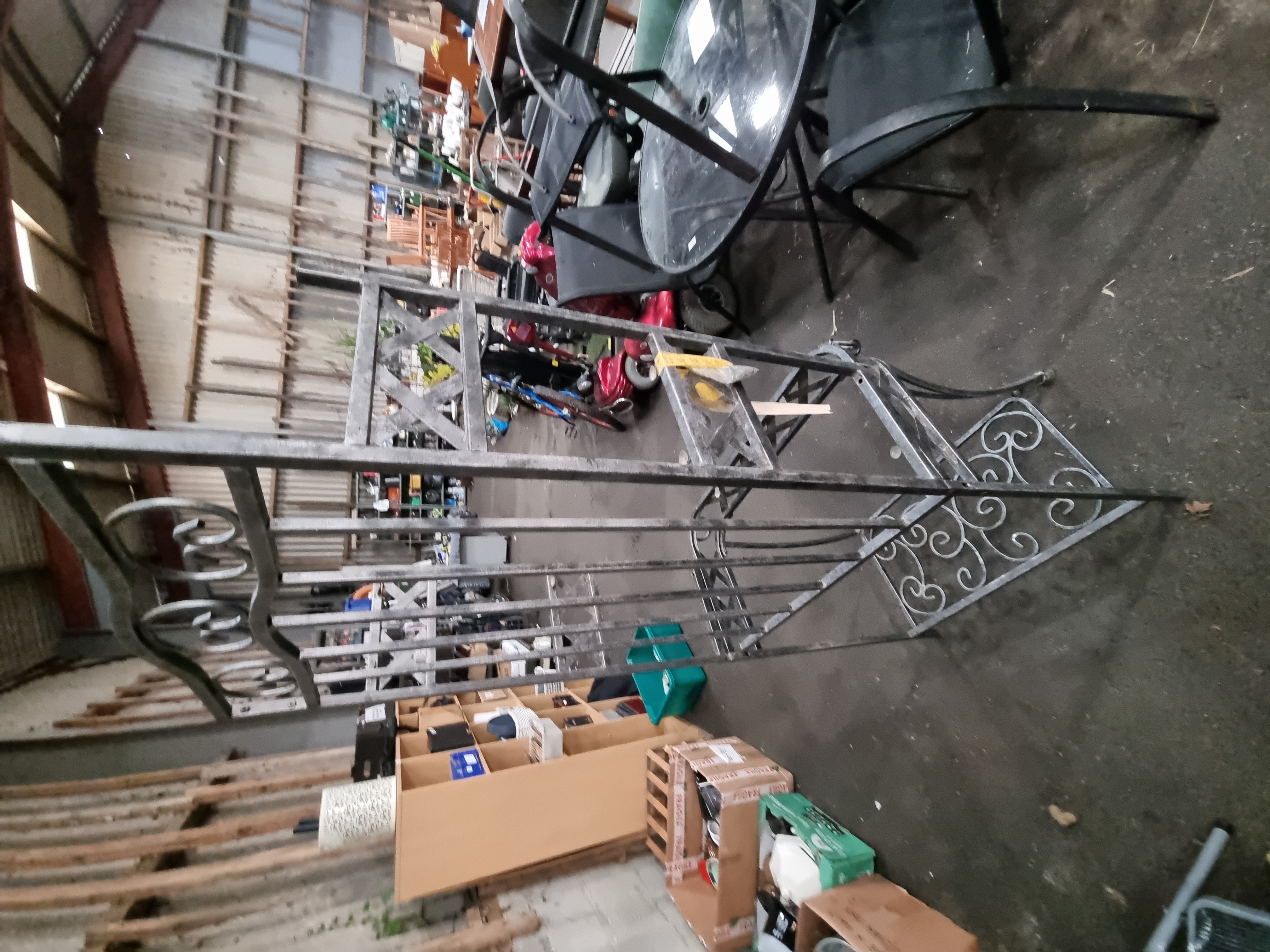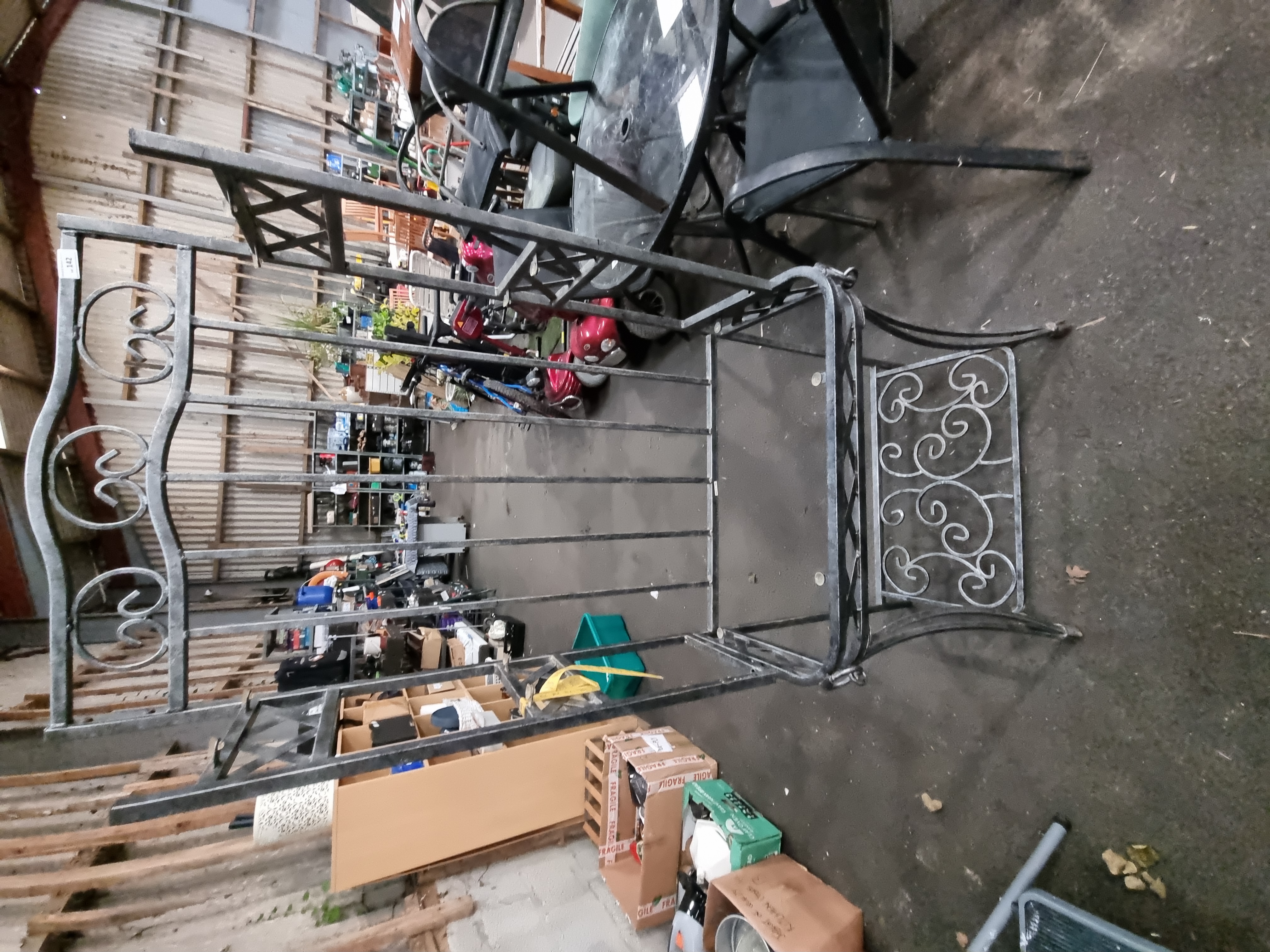 Lot 142: A modern wrought metal three-tier baker's rack in the traditional style