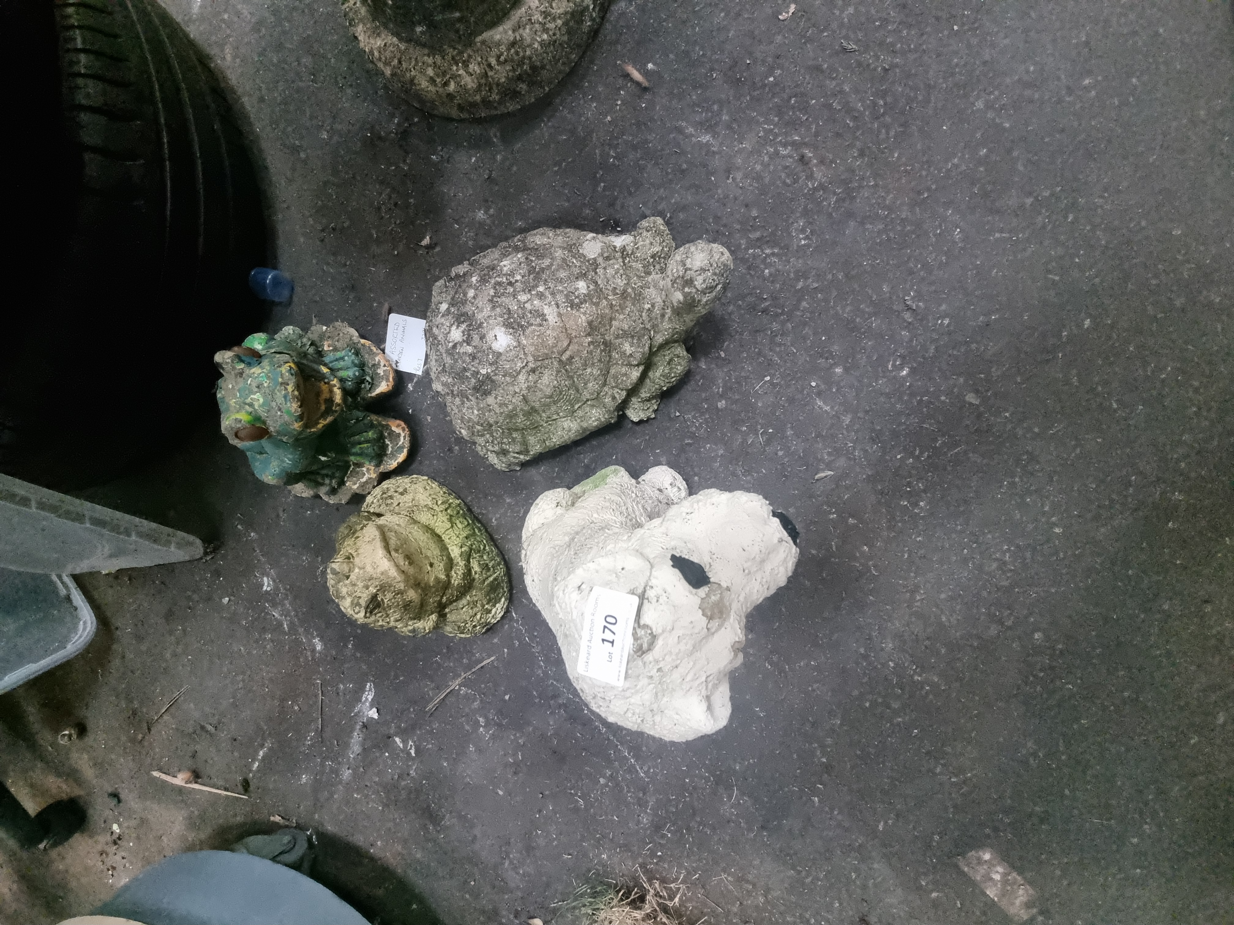 Lot 170: A Collection of Weathered Cast Stone Garden Animal Ornaments