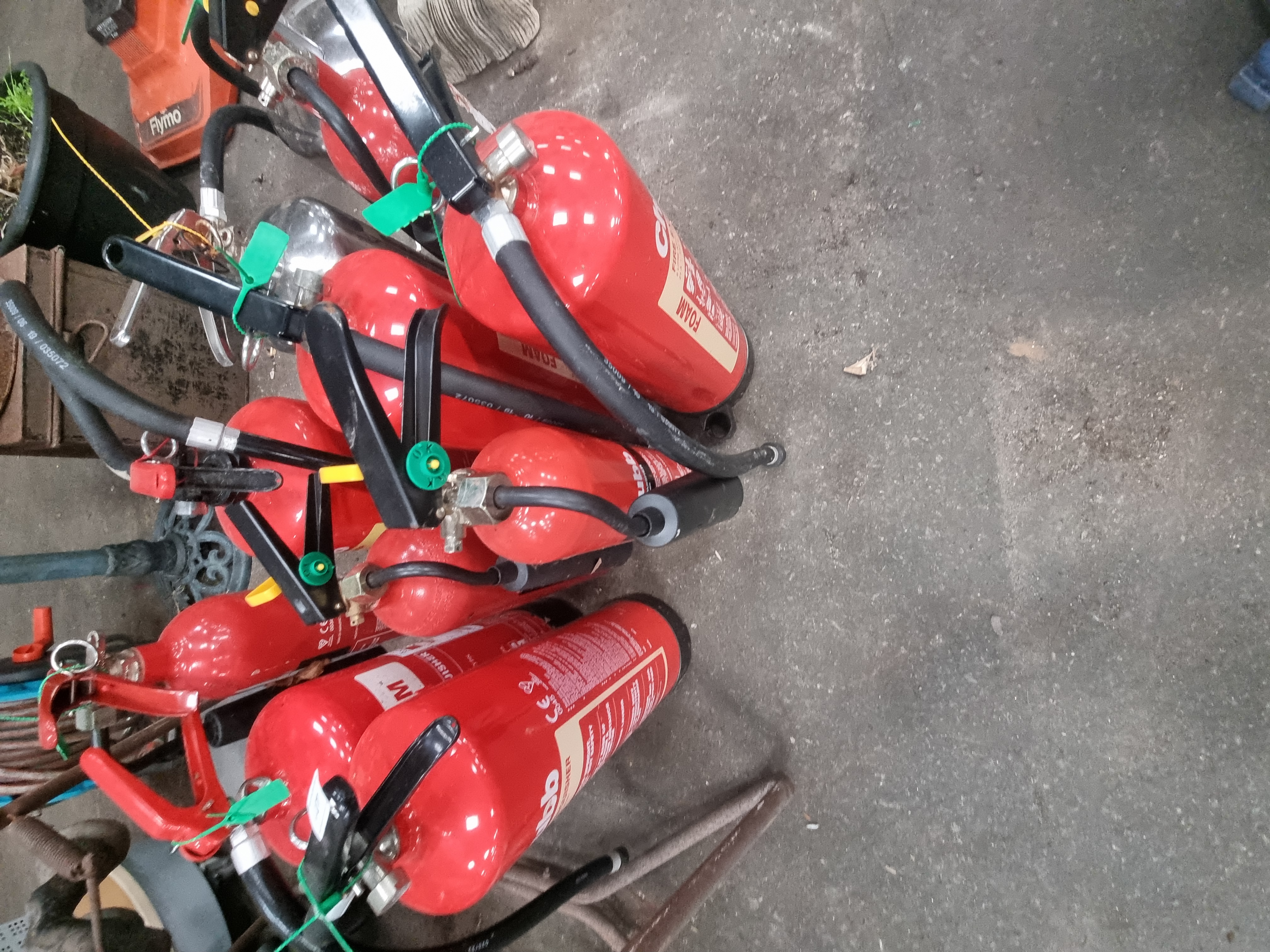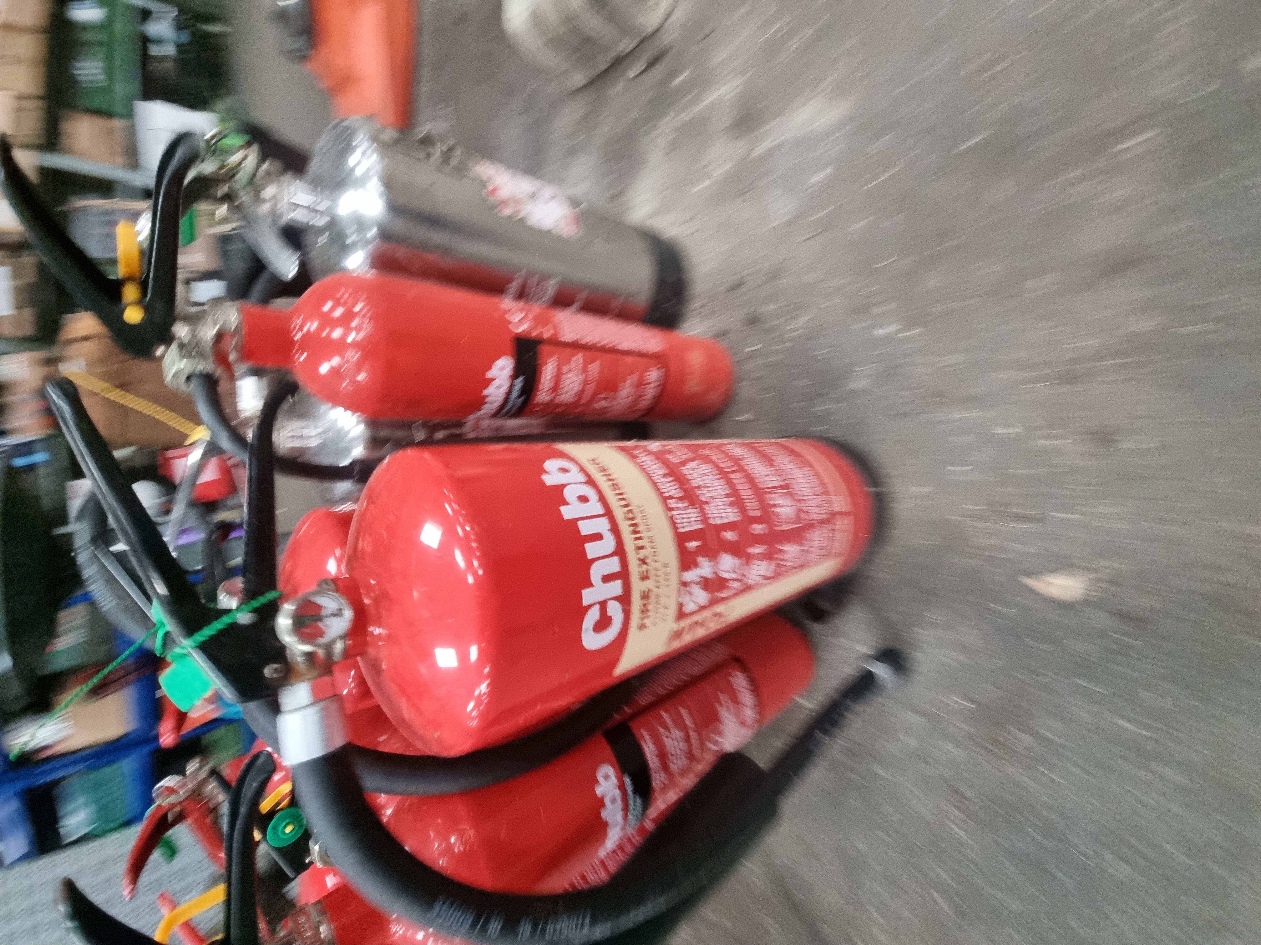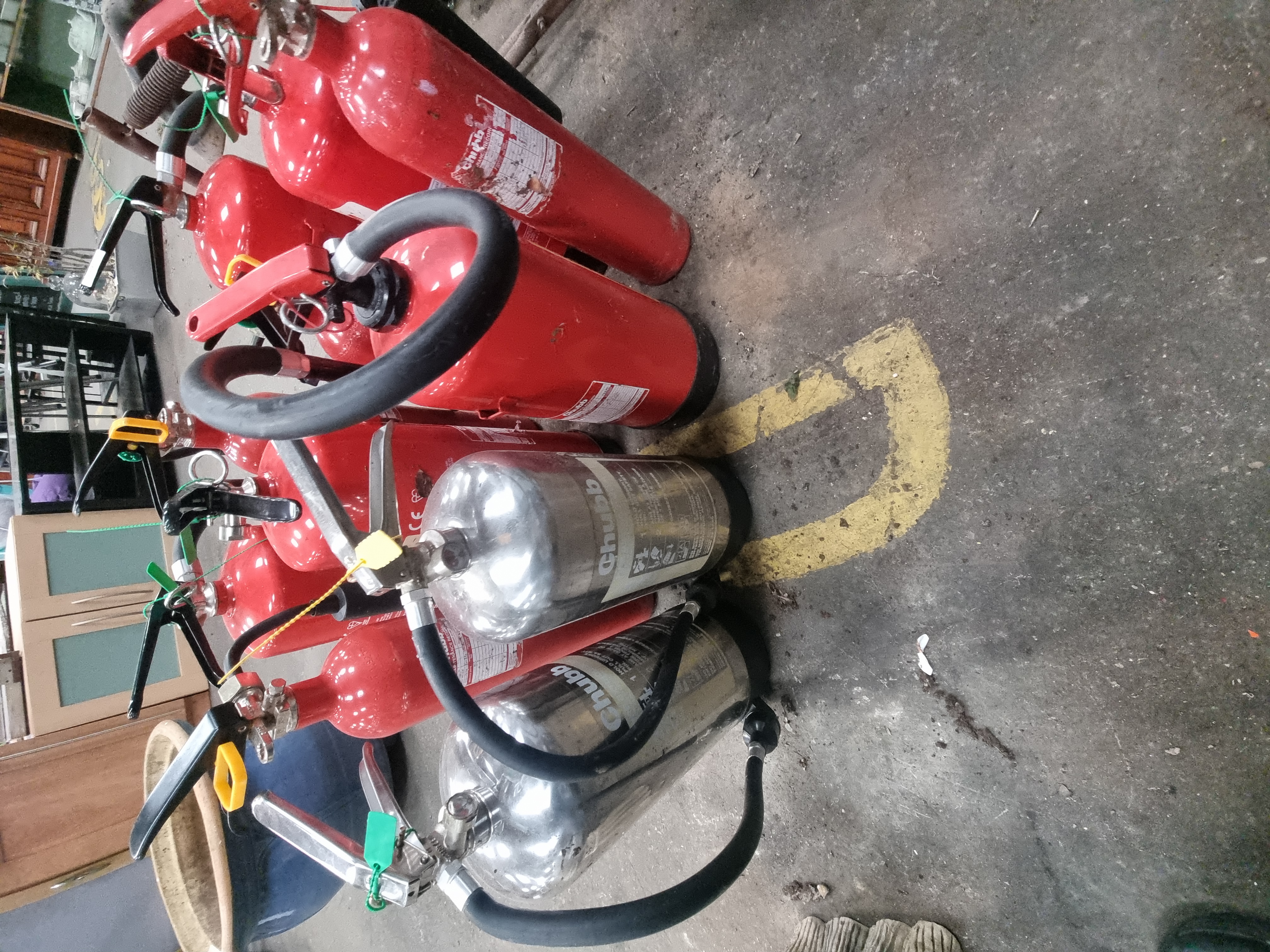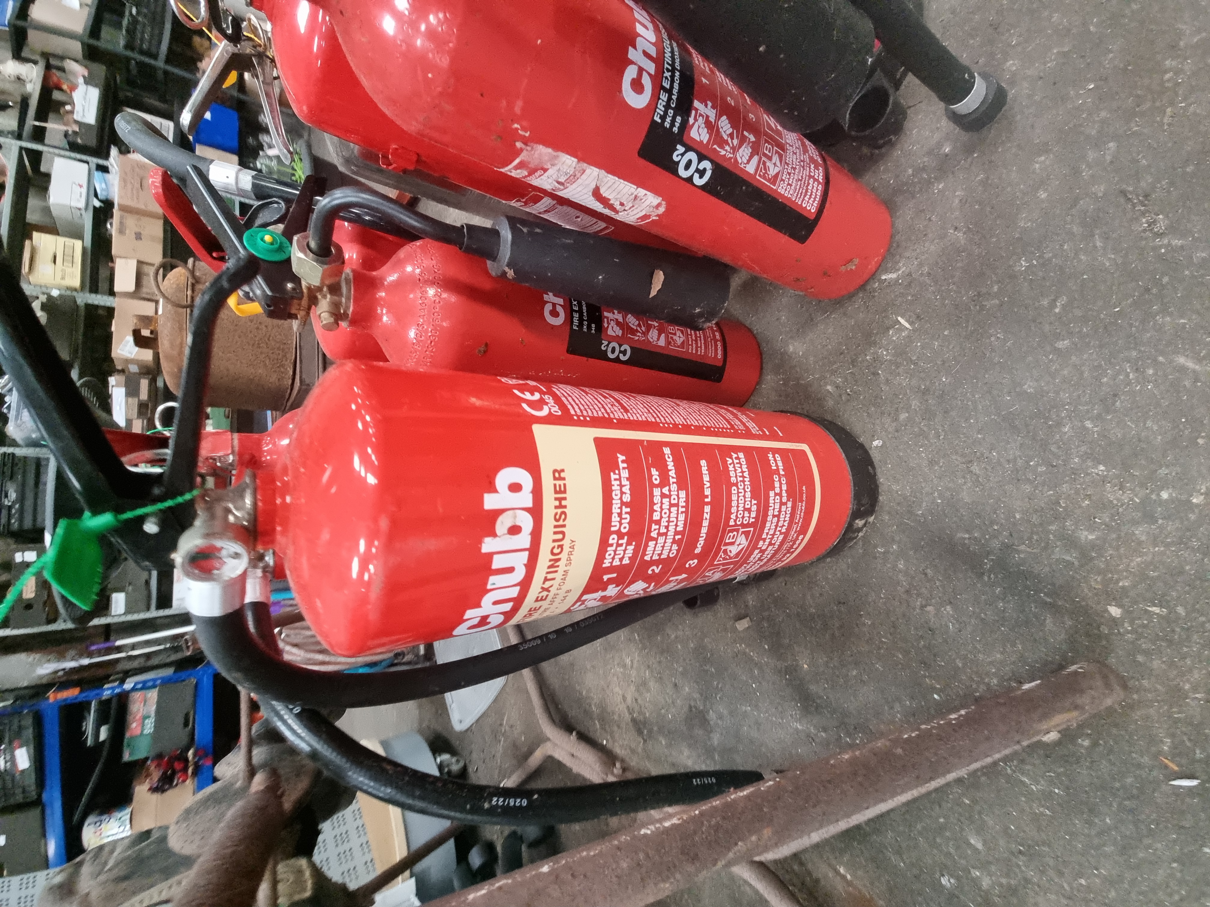 Lot 177: A Collection of 11 Chubb Portable Fire Extinguishers Including CO2 and Foam Types