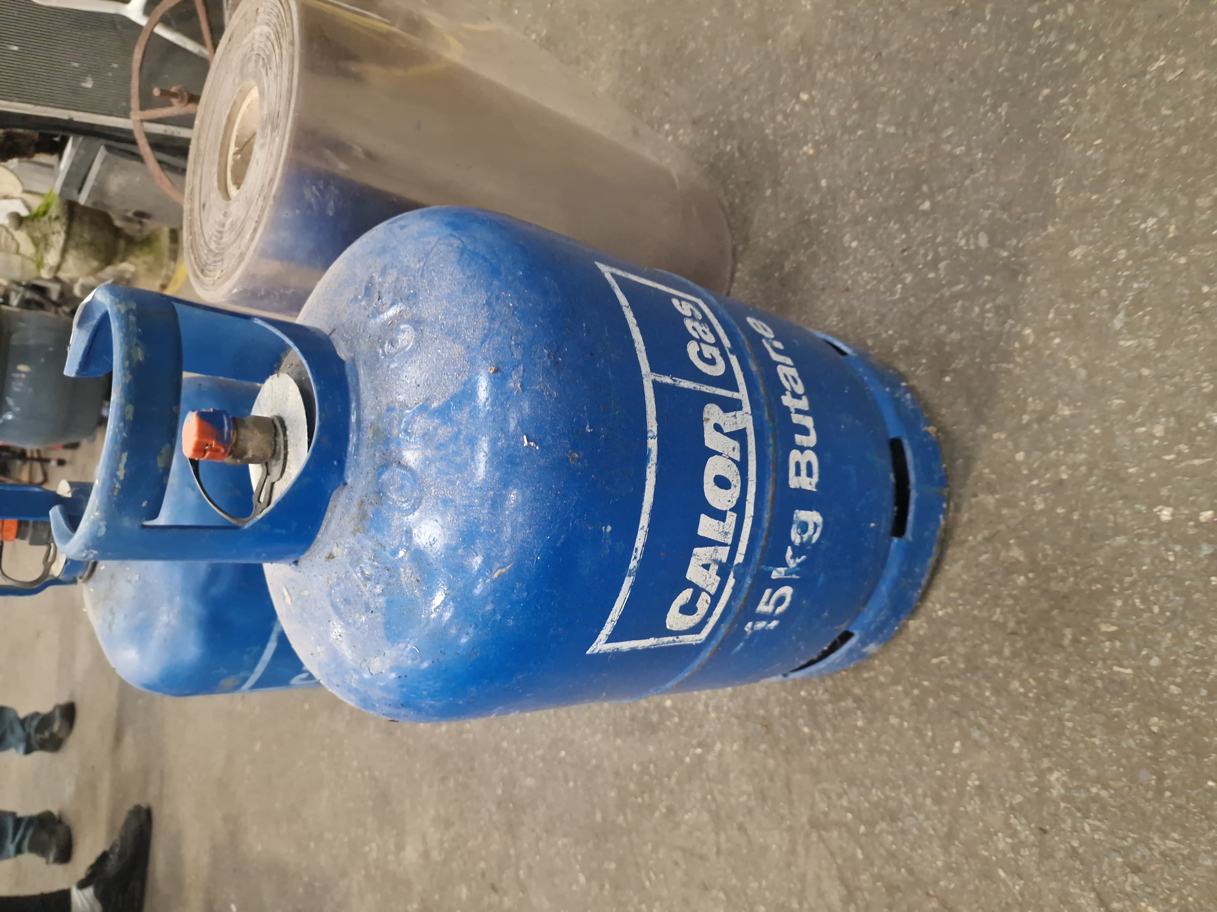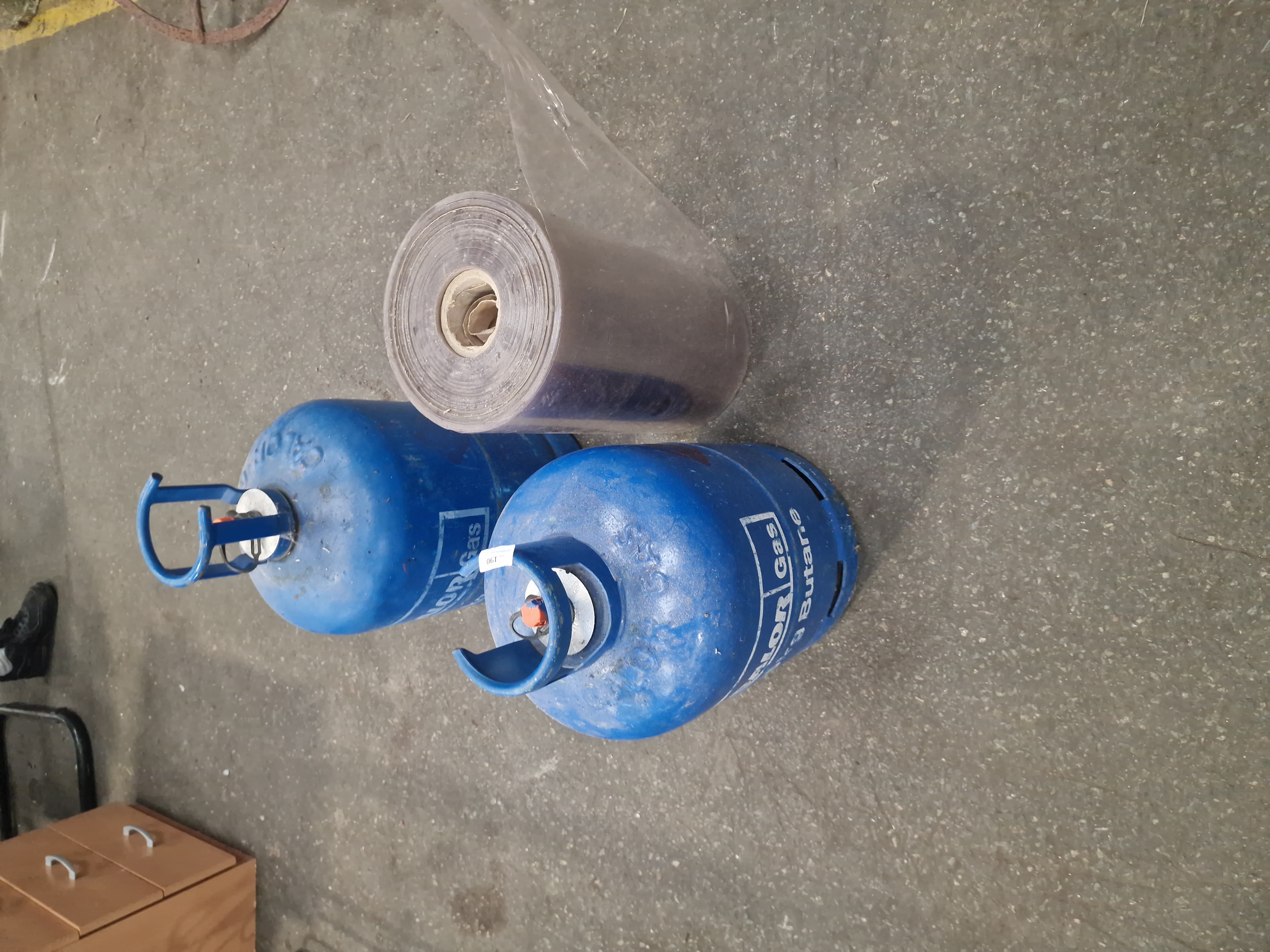 Lot 190: Two Calor Gas 15kg Butane Cylinders and a Roll of Industrial Plastic Sheeting