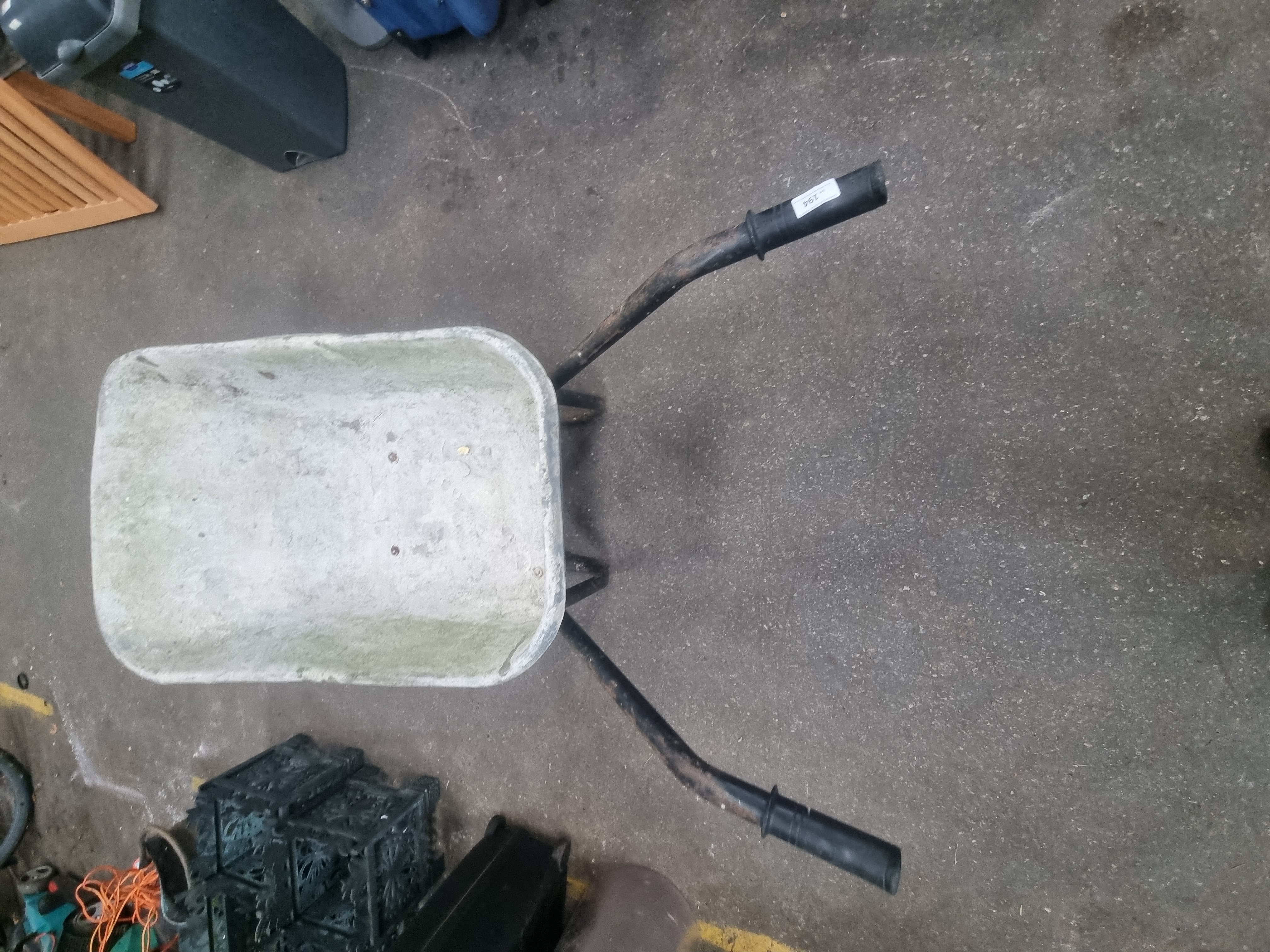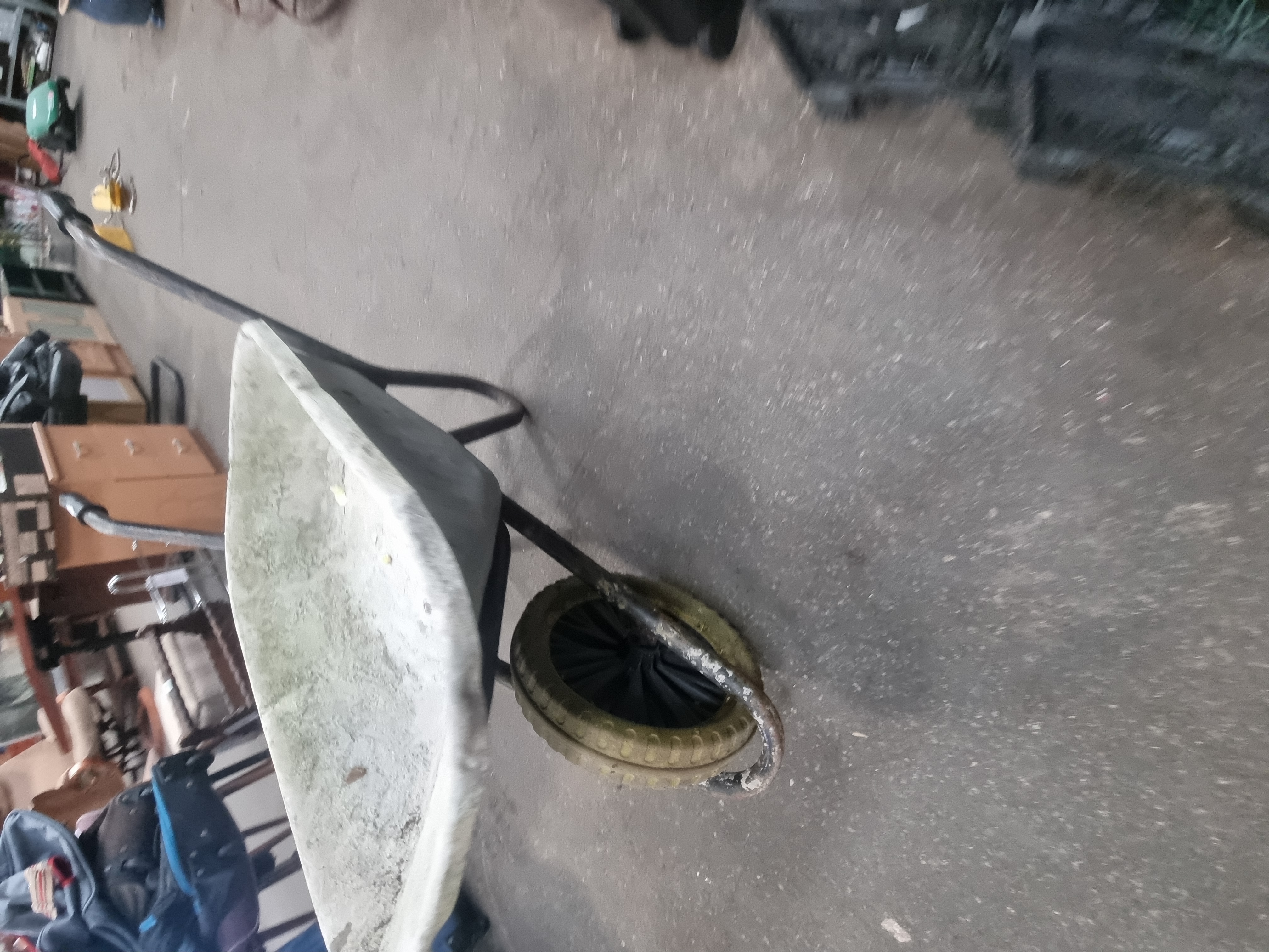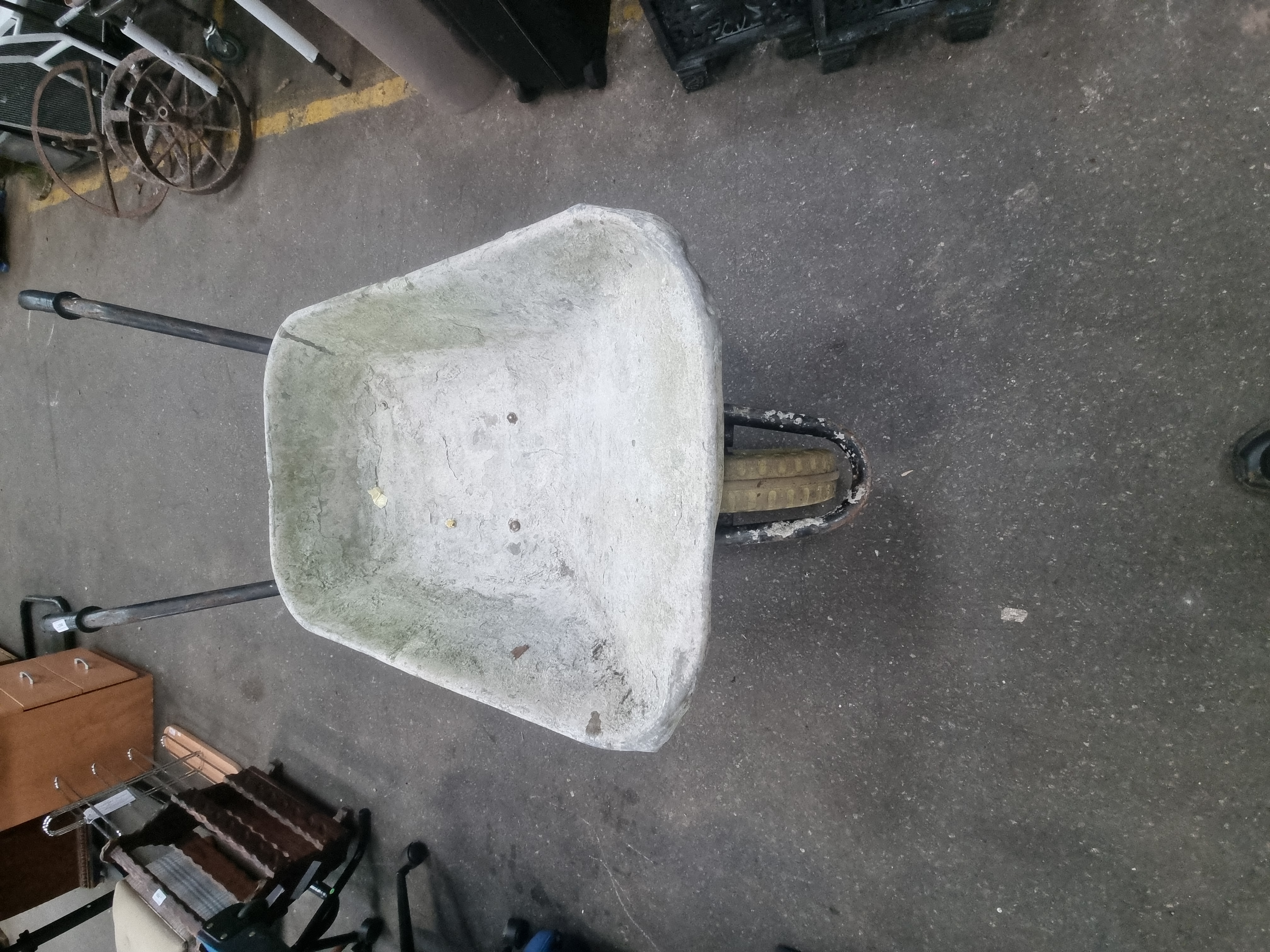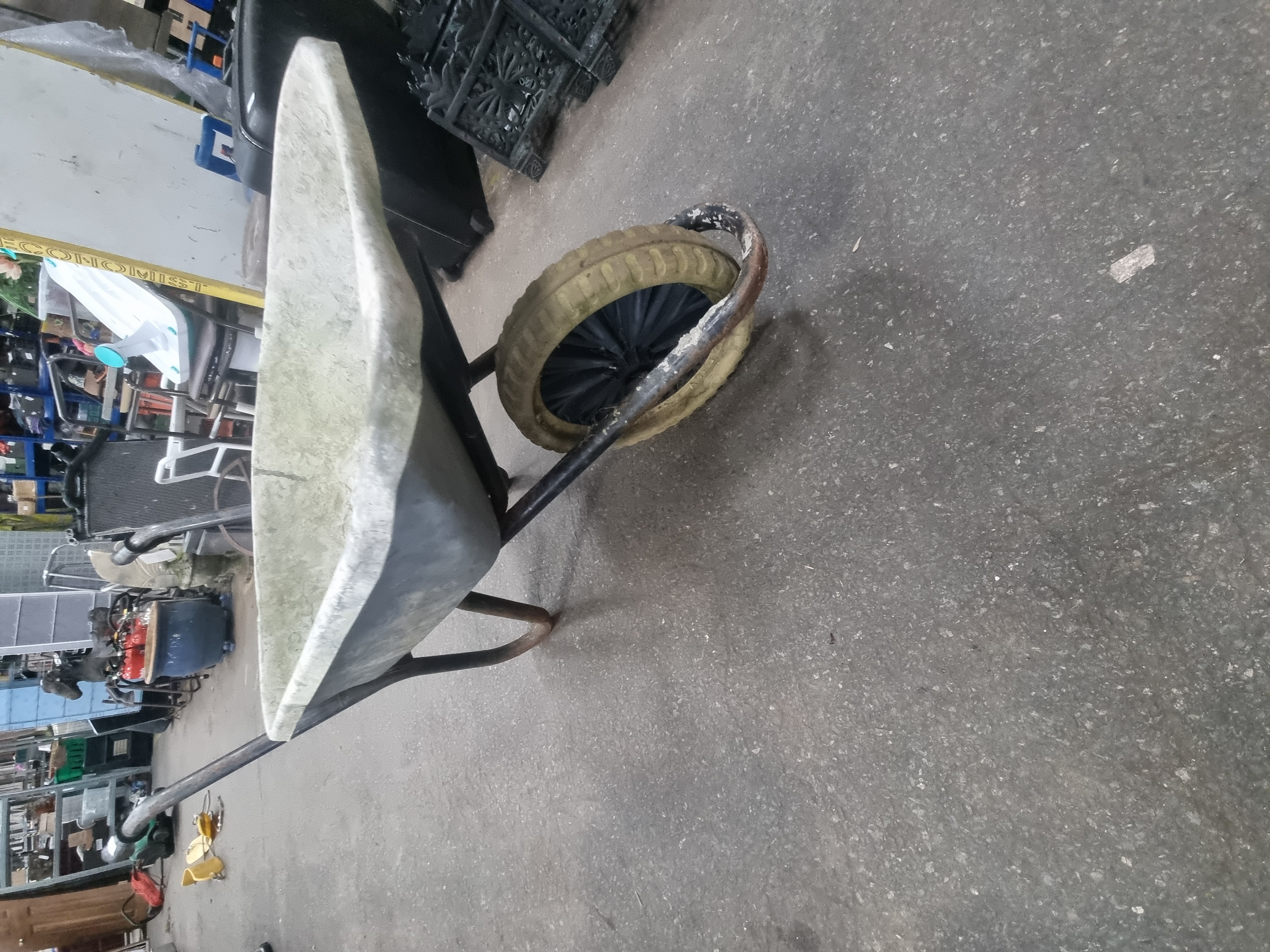 Lot 194: A contemporary single-wheel wheelbarrow with a grey composite tub