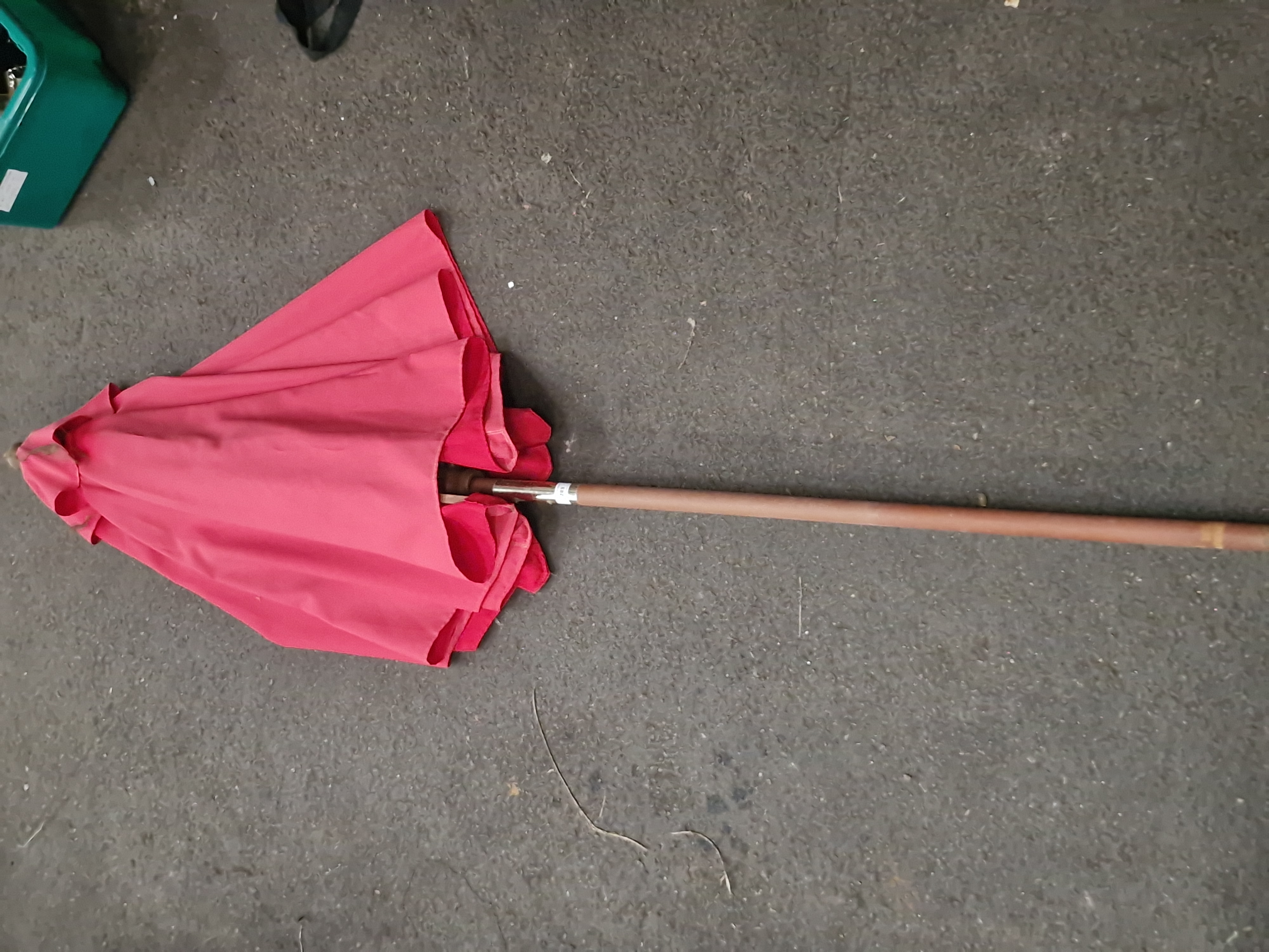 Lot 283: A fuchsia pink garden parasol with wooden pole