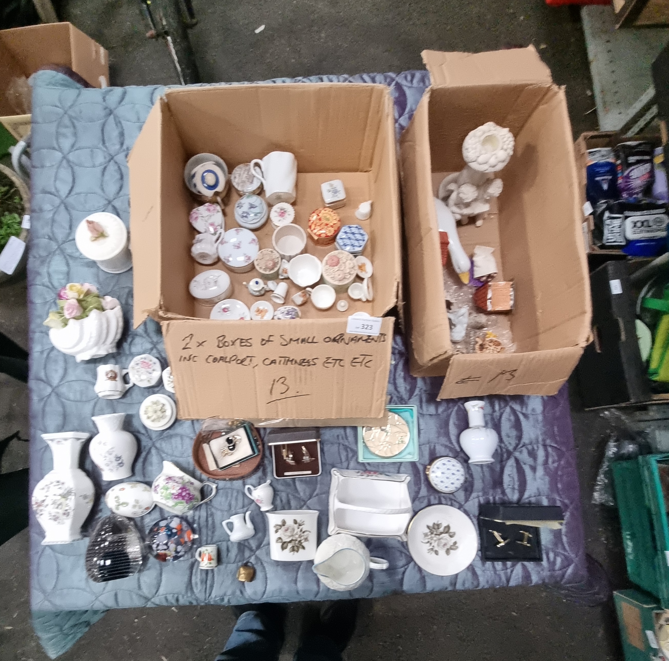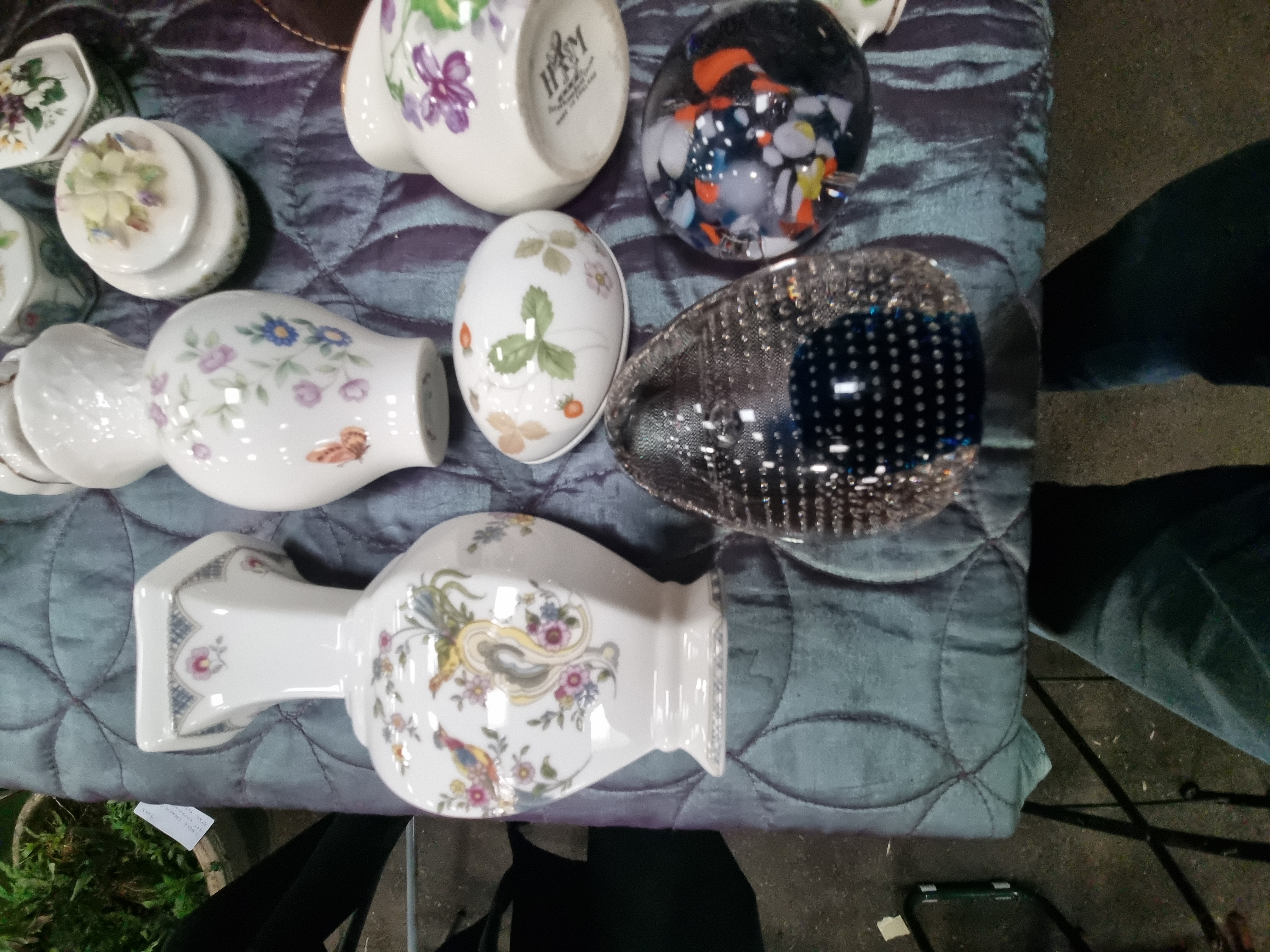 Lot 323: A Collection of Vintage Decorative Ceramic and Glass Ornaments including Coalport, Wedgewood, and more.