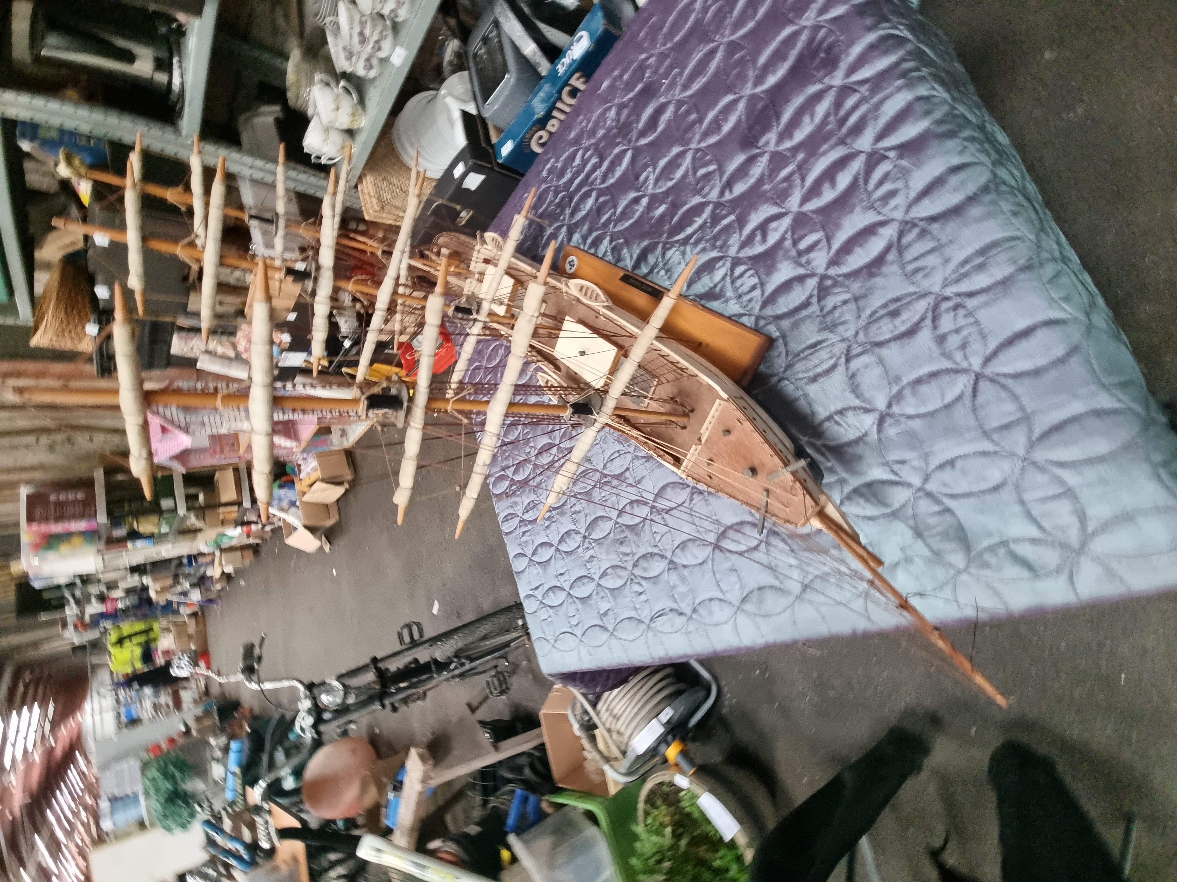 The model appears to be in good overall condition with some light surface dust. The rigging remains largely intact. No significant structural damage or missing components are visible.