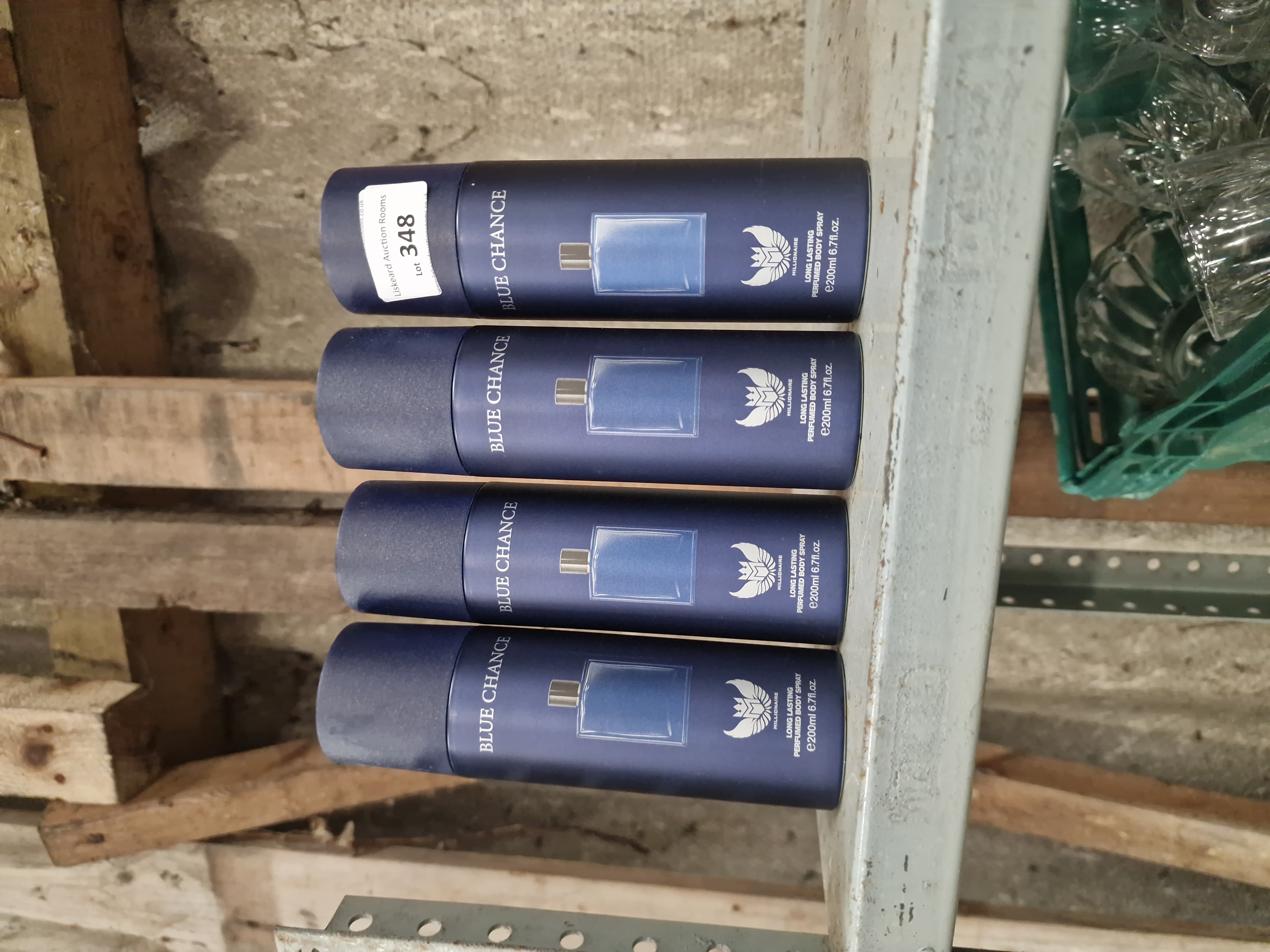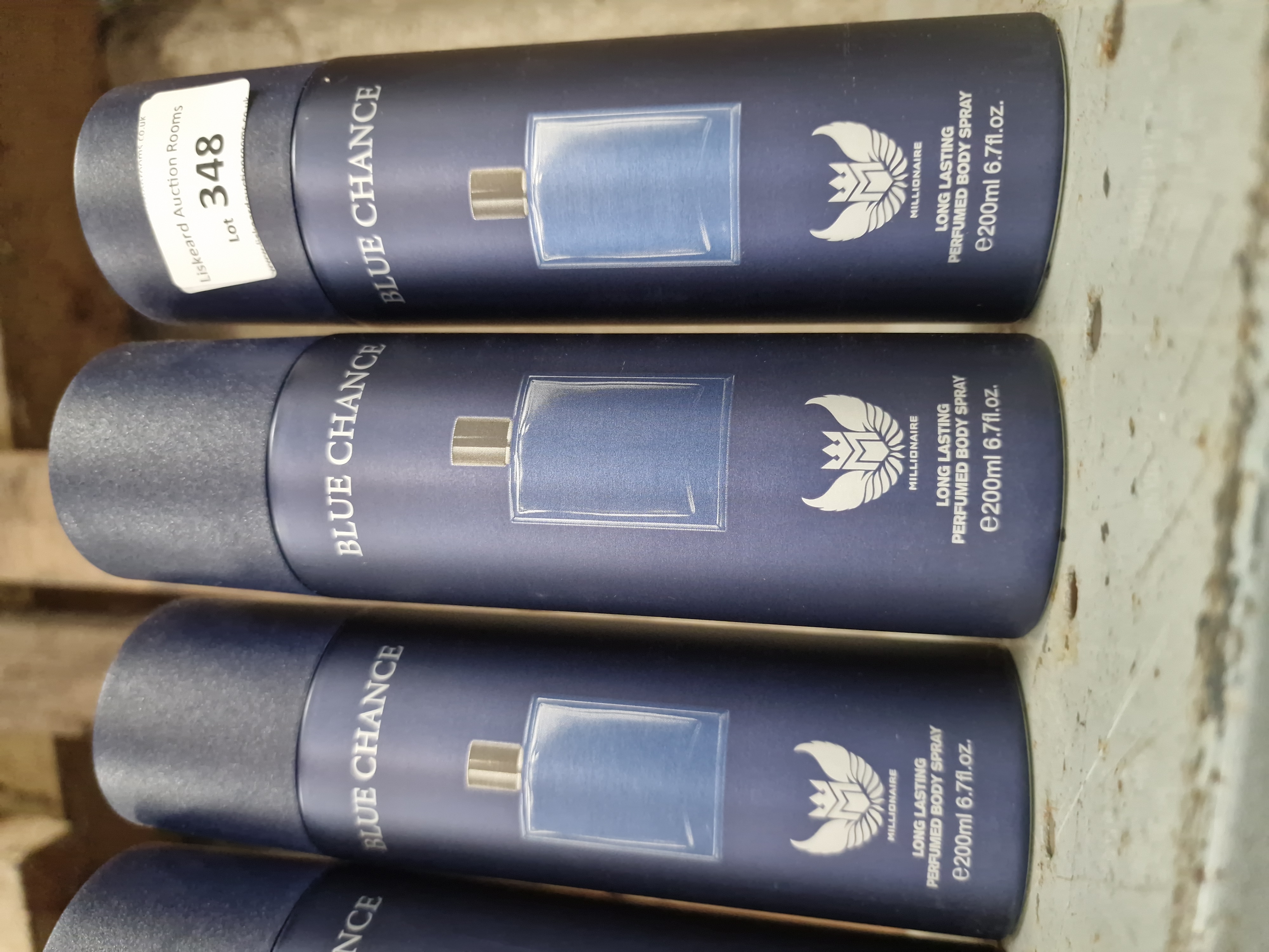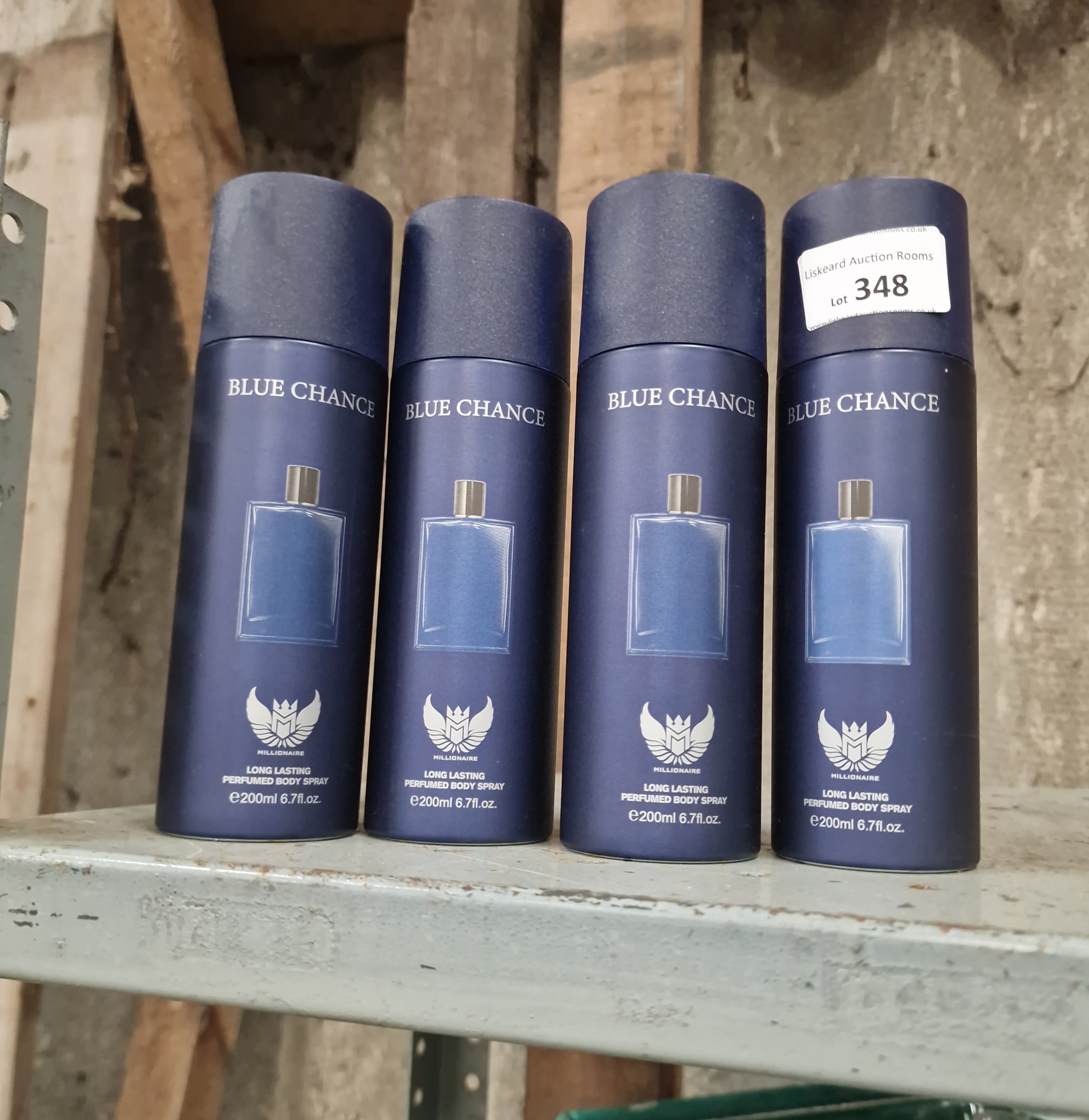 Lot 348: Four Canisters of Millionaire Blue Chance Long Lasting Perfumed Body Spray