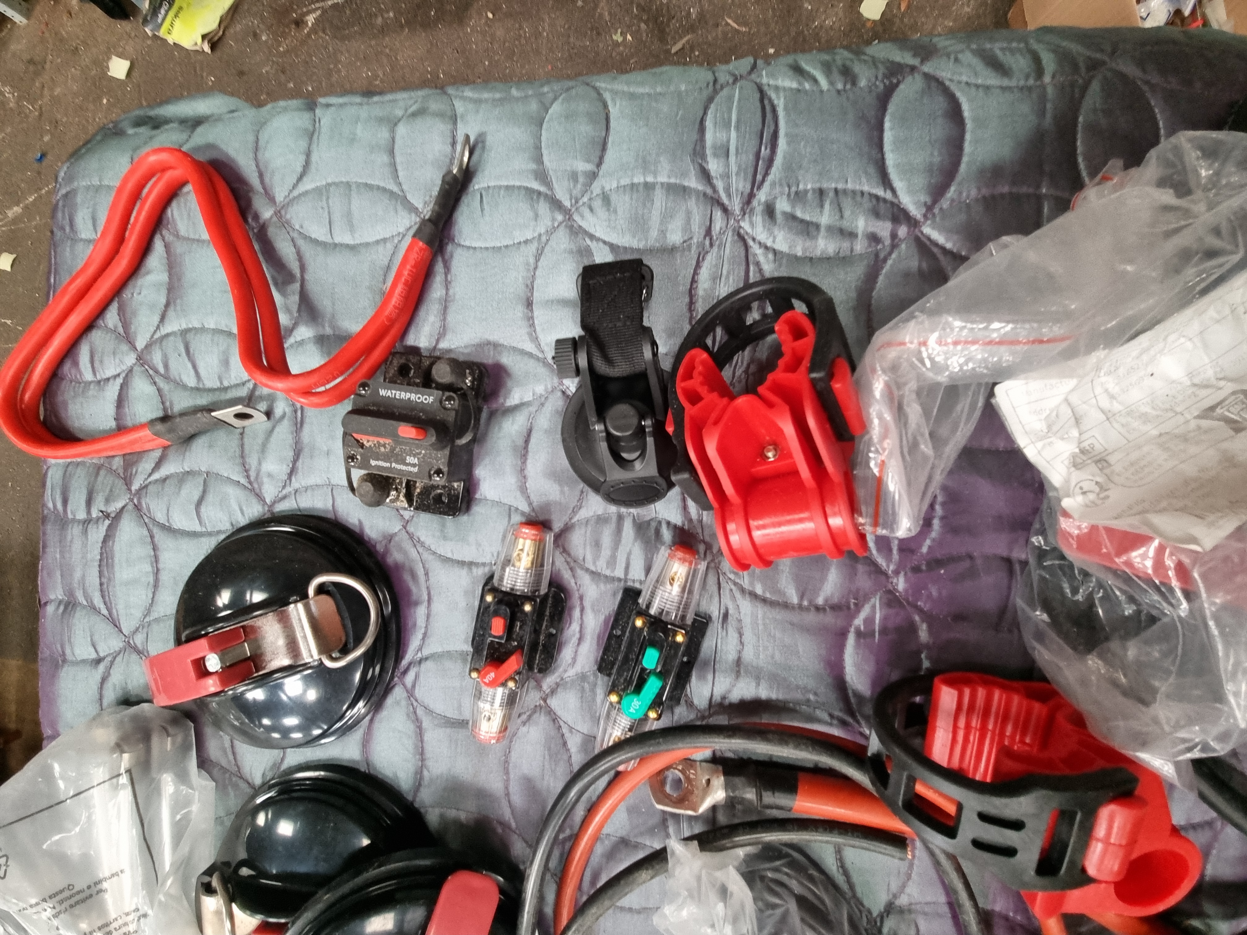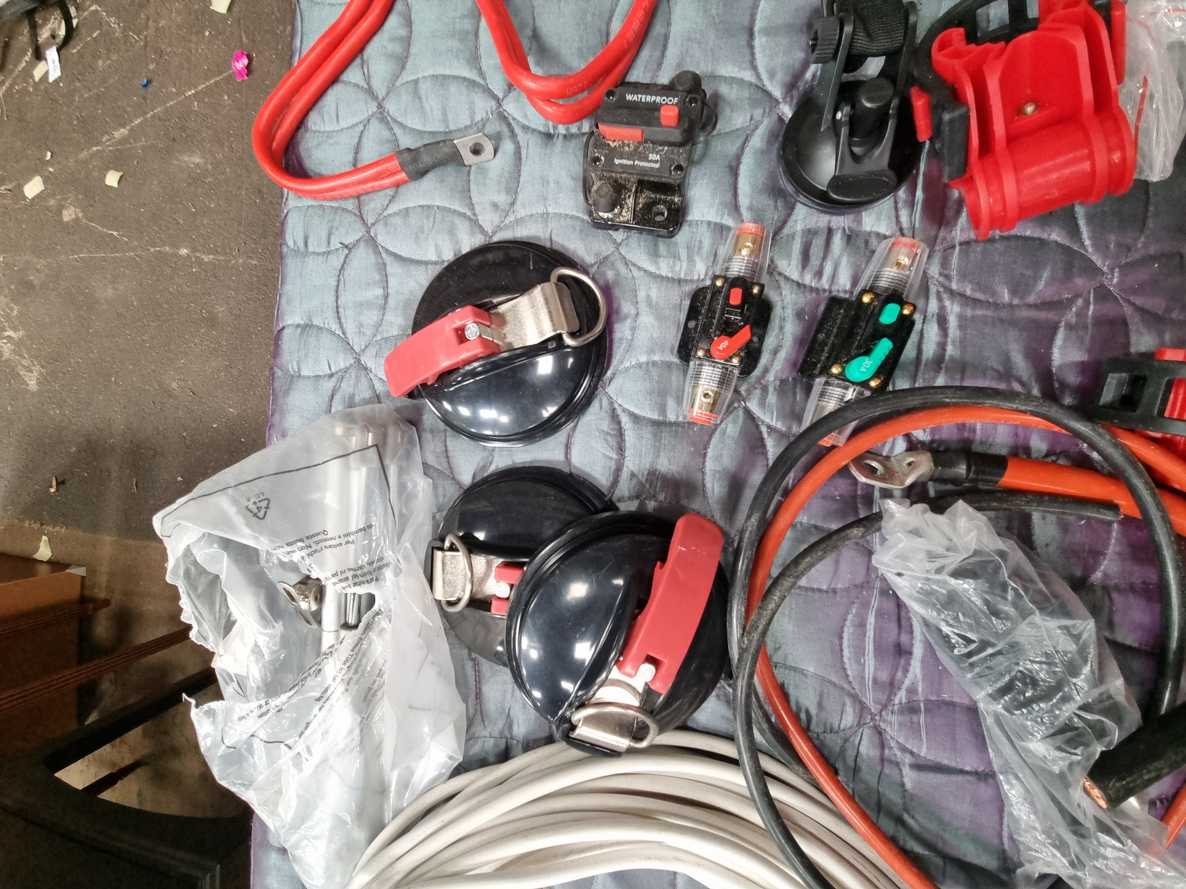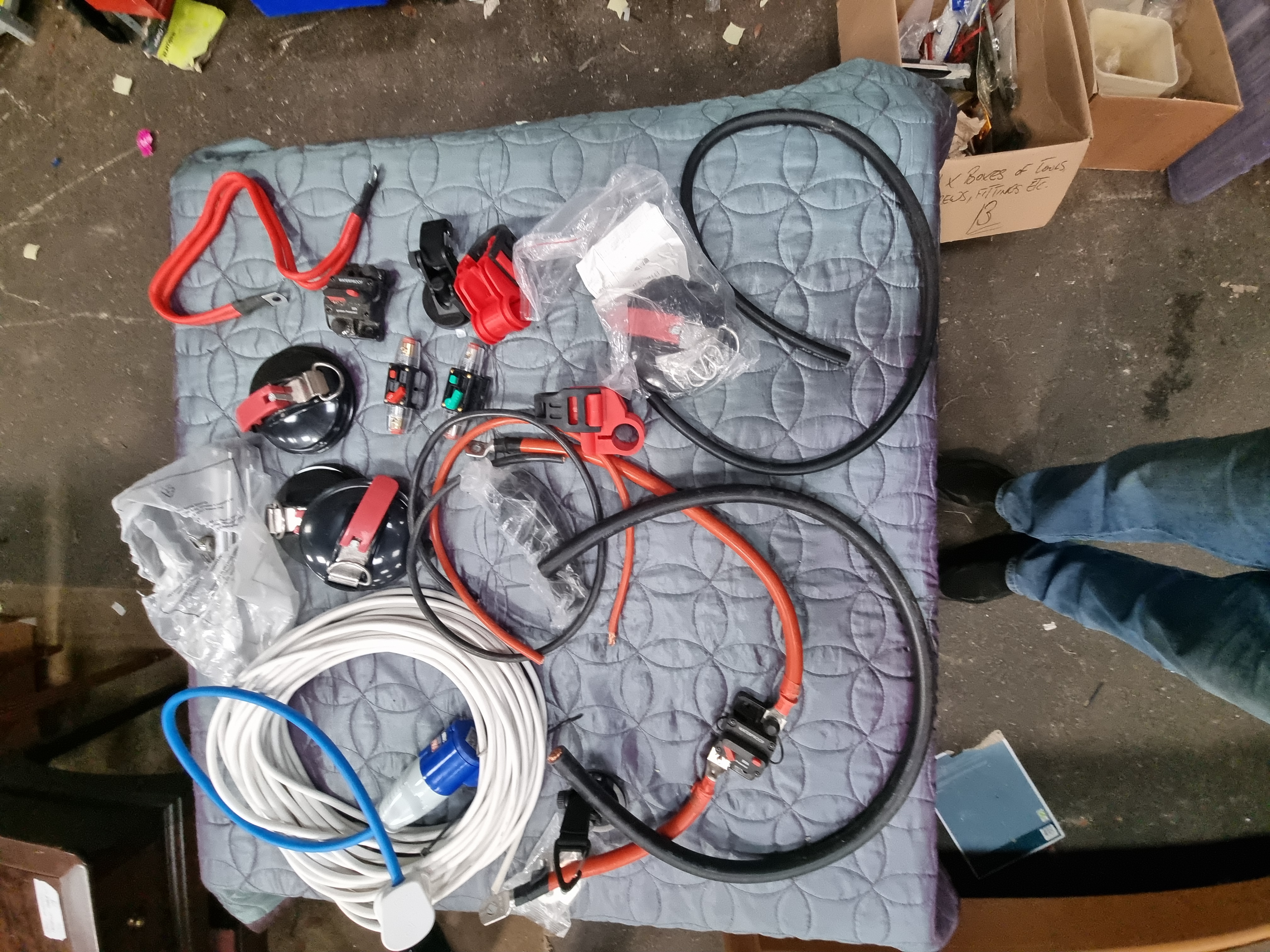 Lot 36: An Assortment of Automotive and Marine Electrical Installation Equipment Including Heavy Duty Power Cables and Circuit Breakers