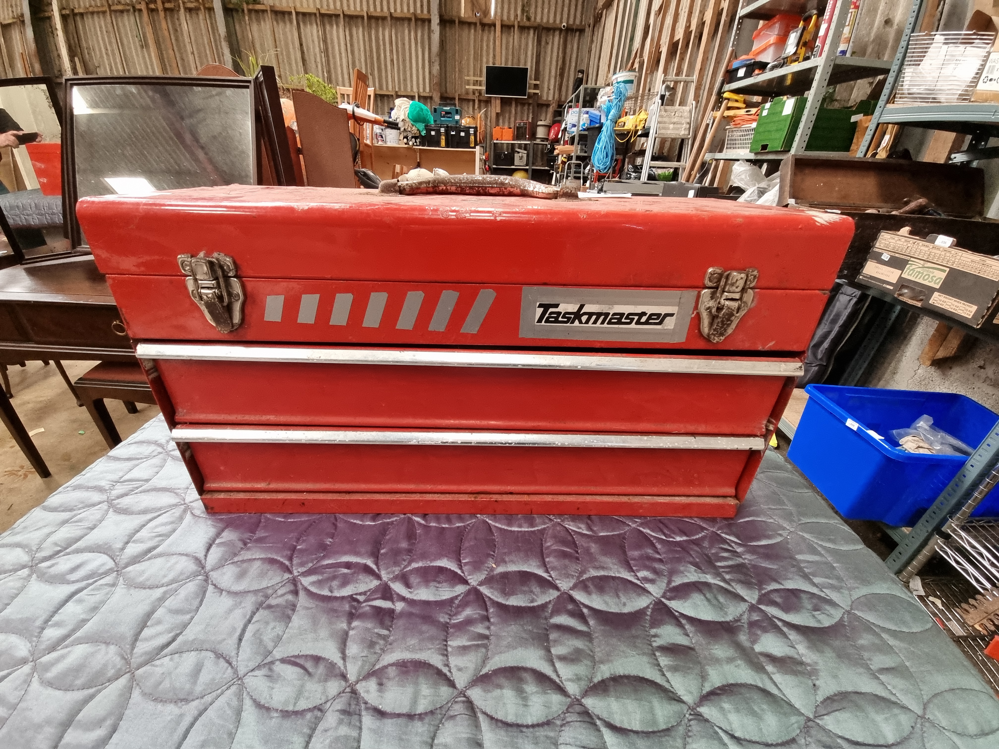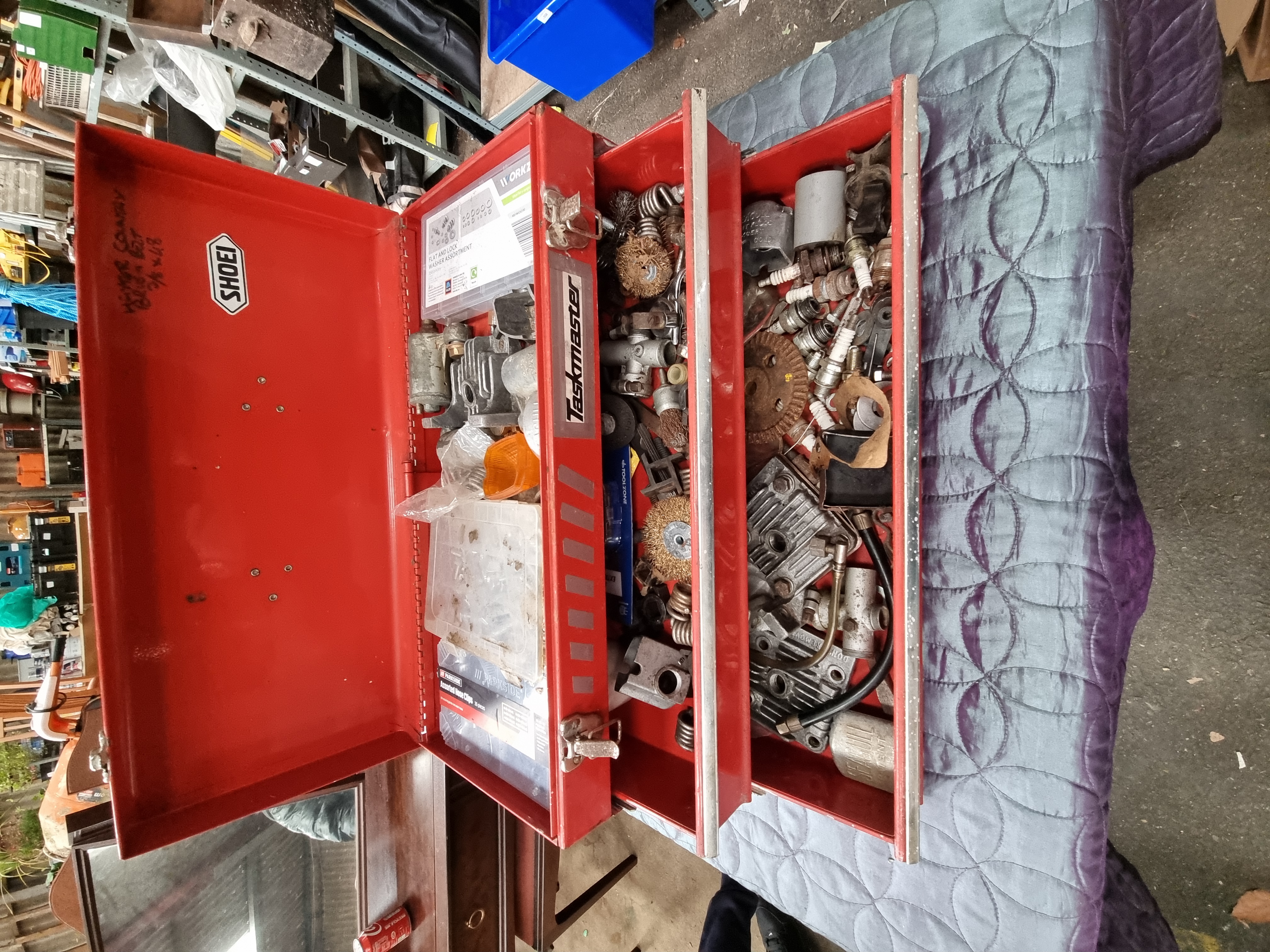 Lot 37: A Taskmaster Portable Metal Toolbox and an Assortment of Seagull Engine Spares