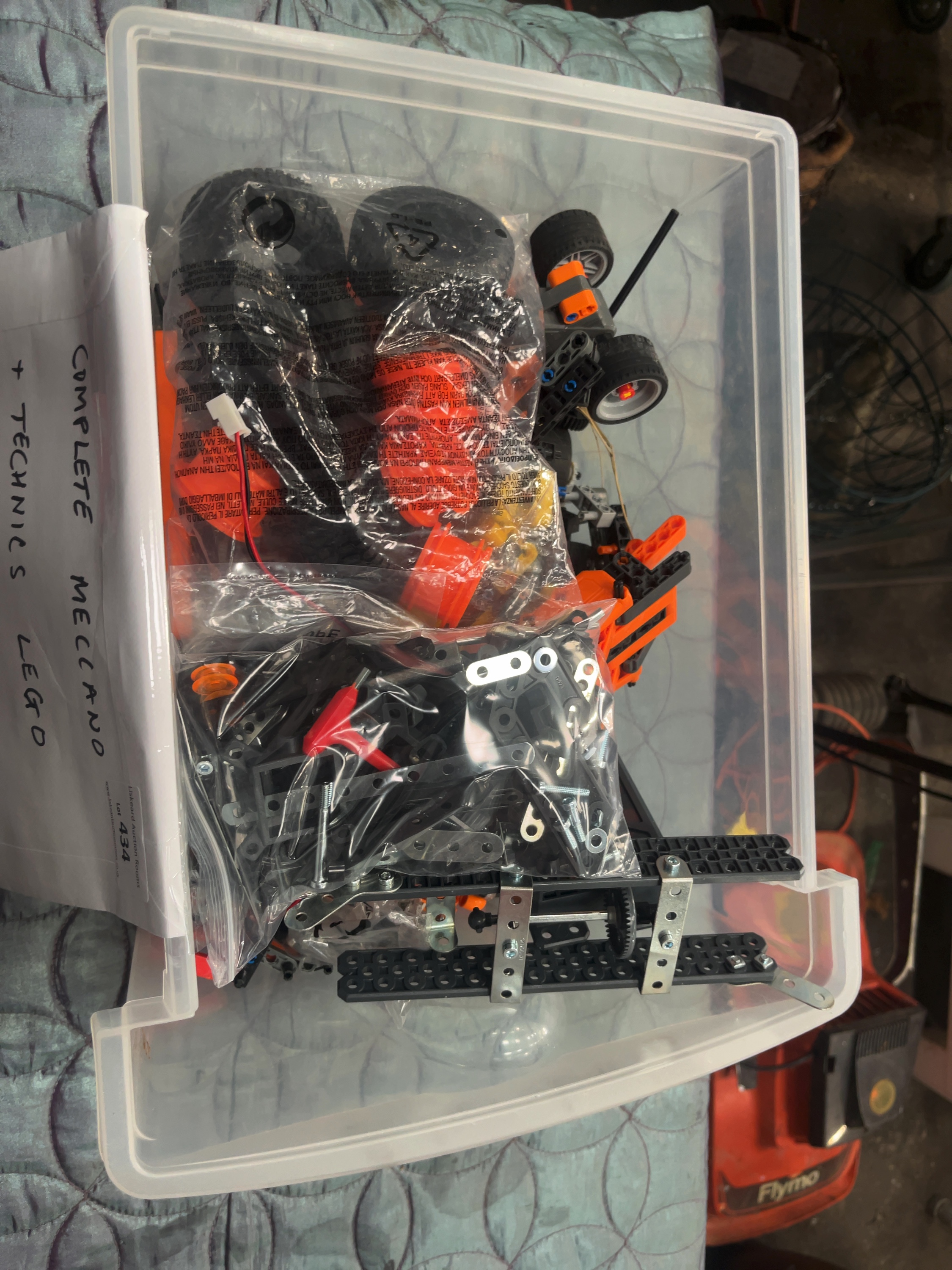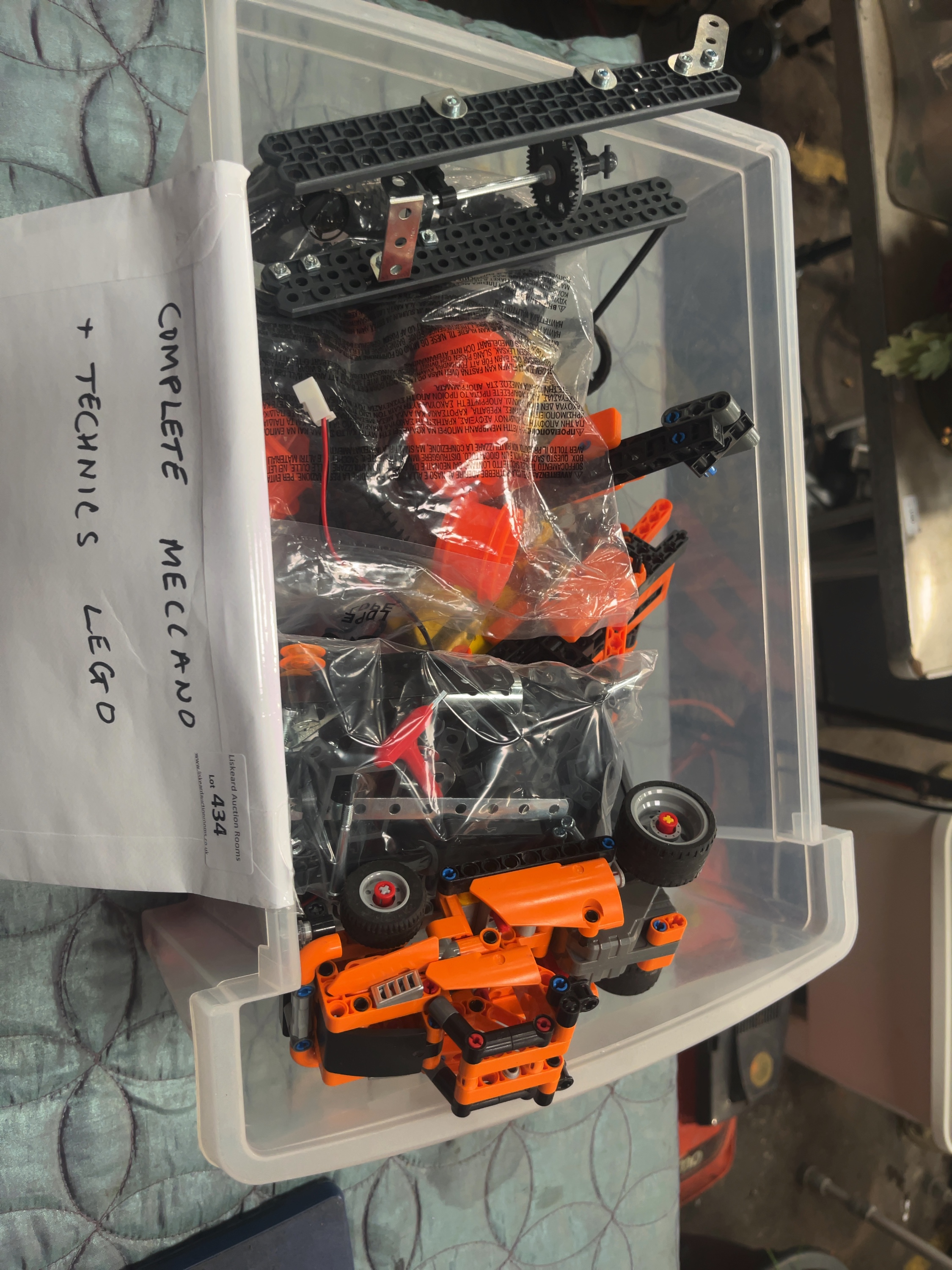 Items are loose, partially assembled, and removed from original retail packaging. A handwritten note on a Liskeard Auction Rooms lot slip (Lot 434) states the sets are complete, however, completeness has not been verified piece-by-piece and is not guaranteed. Mechanical and electrical components are untested. The instruction manual shows signs of handling and creasing.