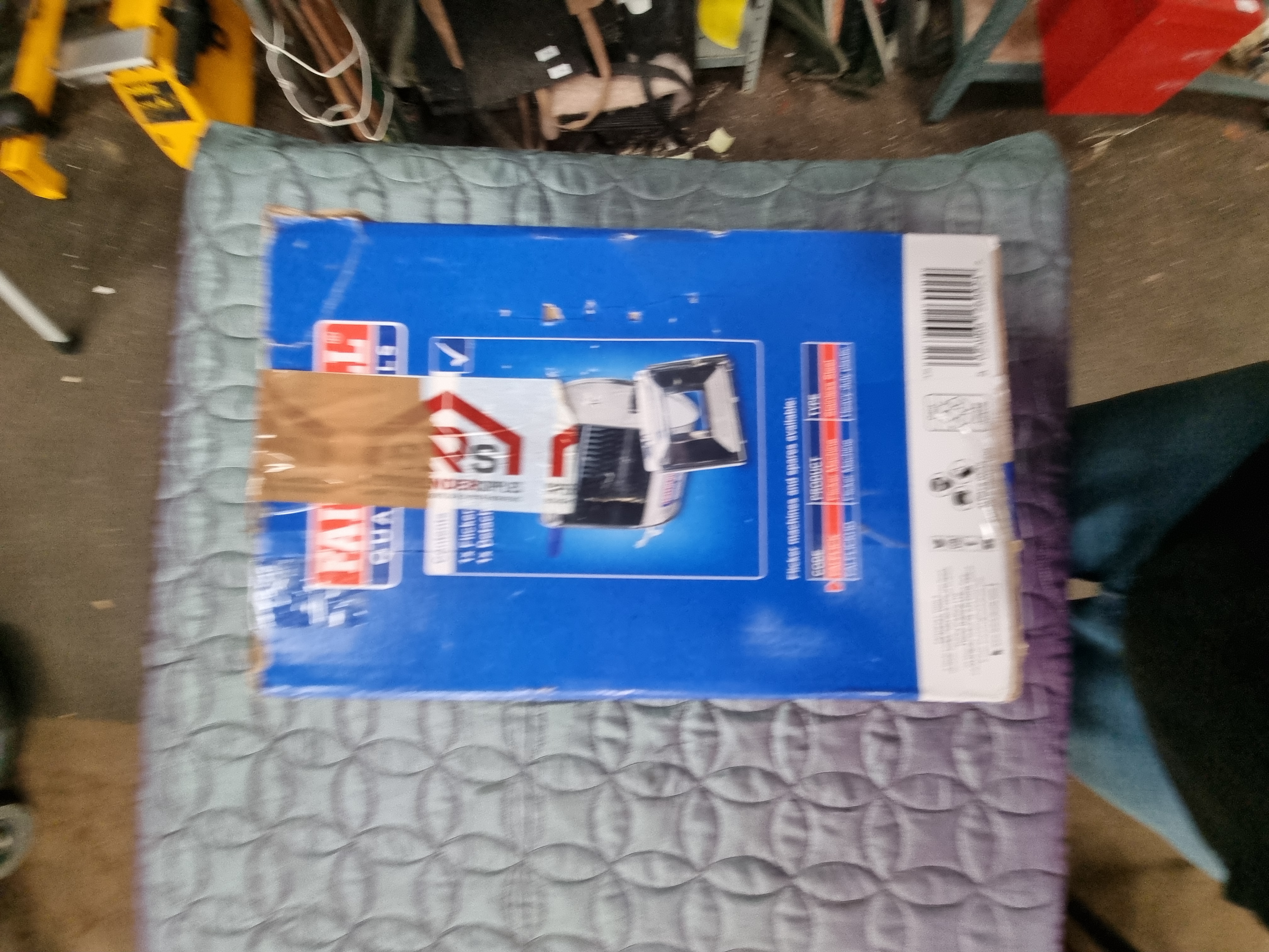 The item is contained within its original retail packaging. The box exhibits significant wear, including crushing, tearing, and the presence of brown adhesive tape. A handwritten number 7290 and an auction lot sticker 041 are present on the exterior. The internal condition, mechanical operation, and completeness of the sprayer have not been verified. Sold as seen in worn original box.