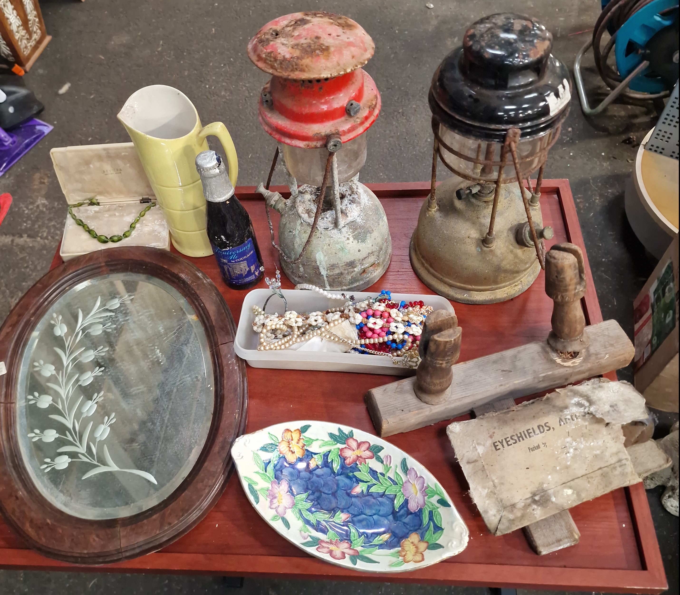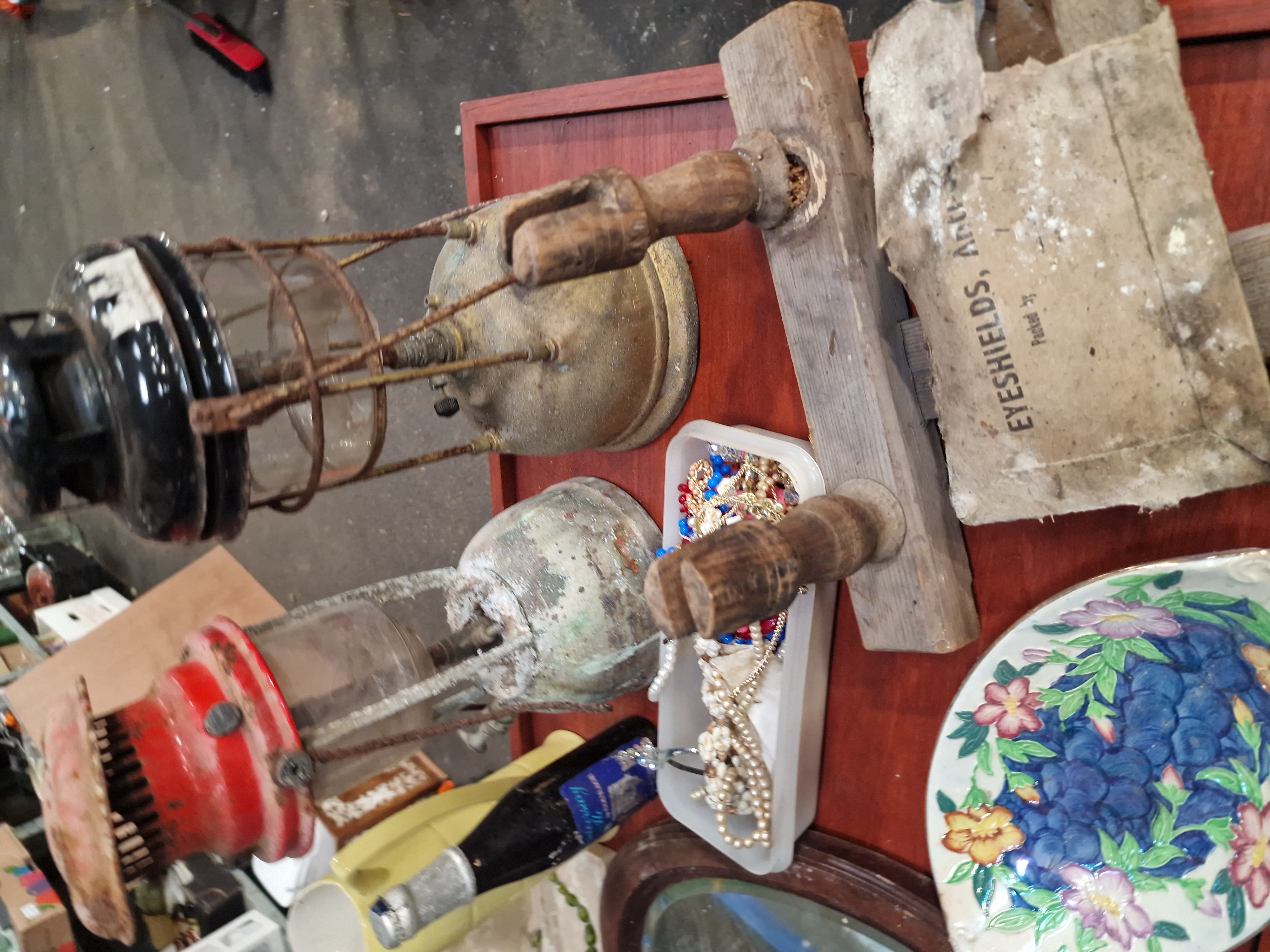 Lot 446: An Assortment of Vintage Lanterns, Wooden Components, and Printed Ephemera
