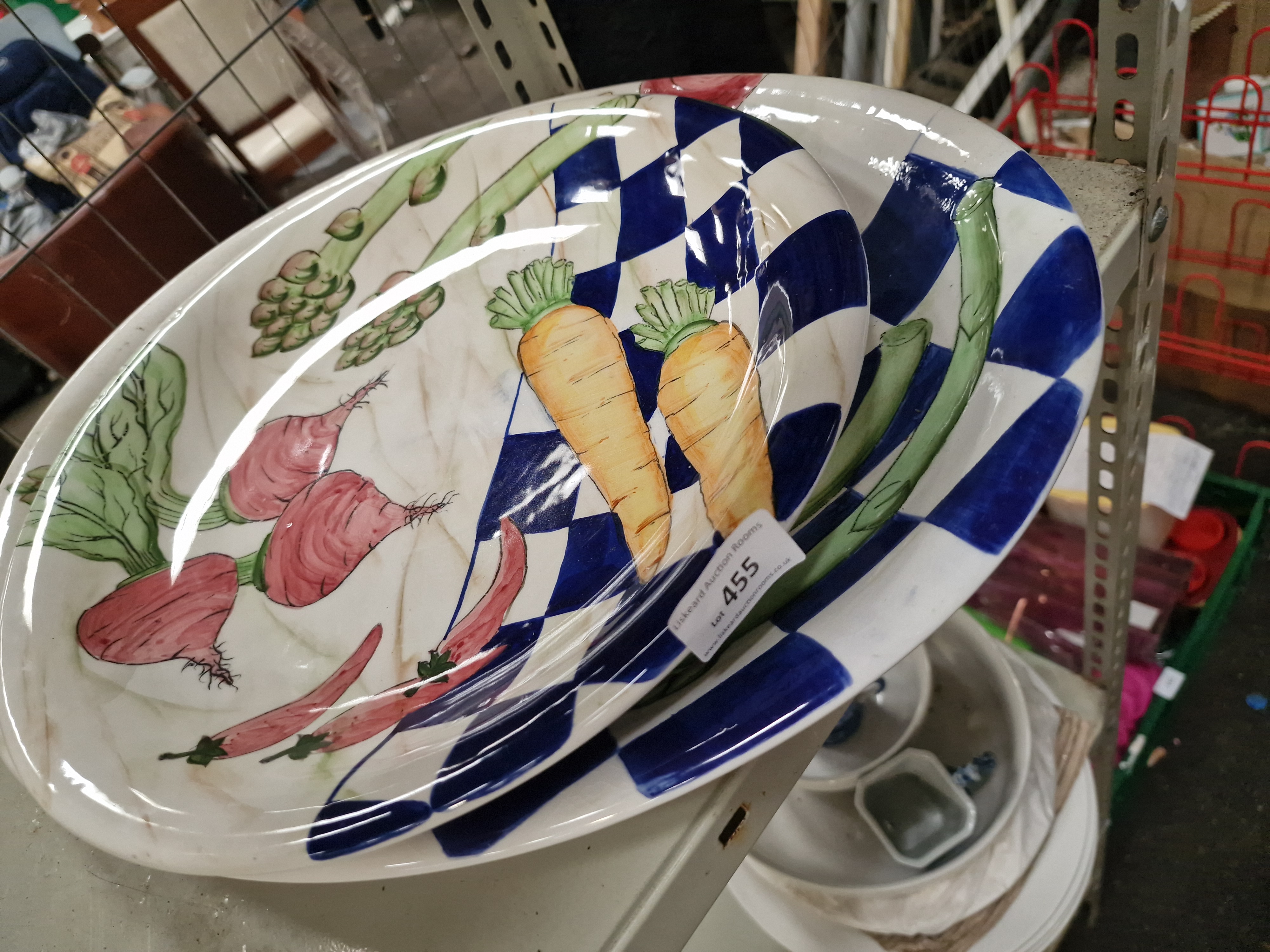 Lot 455: A Pair of Large Hand-Painted Earthenware Serving Platters with Vegetable Motifs