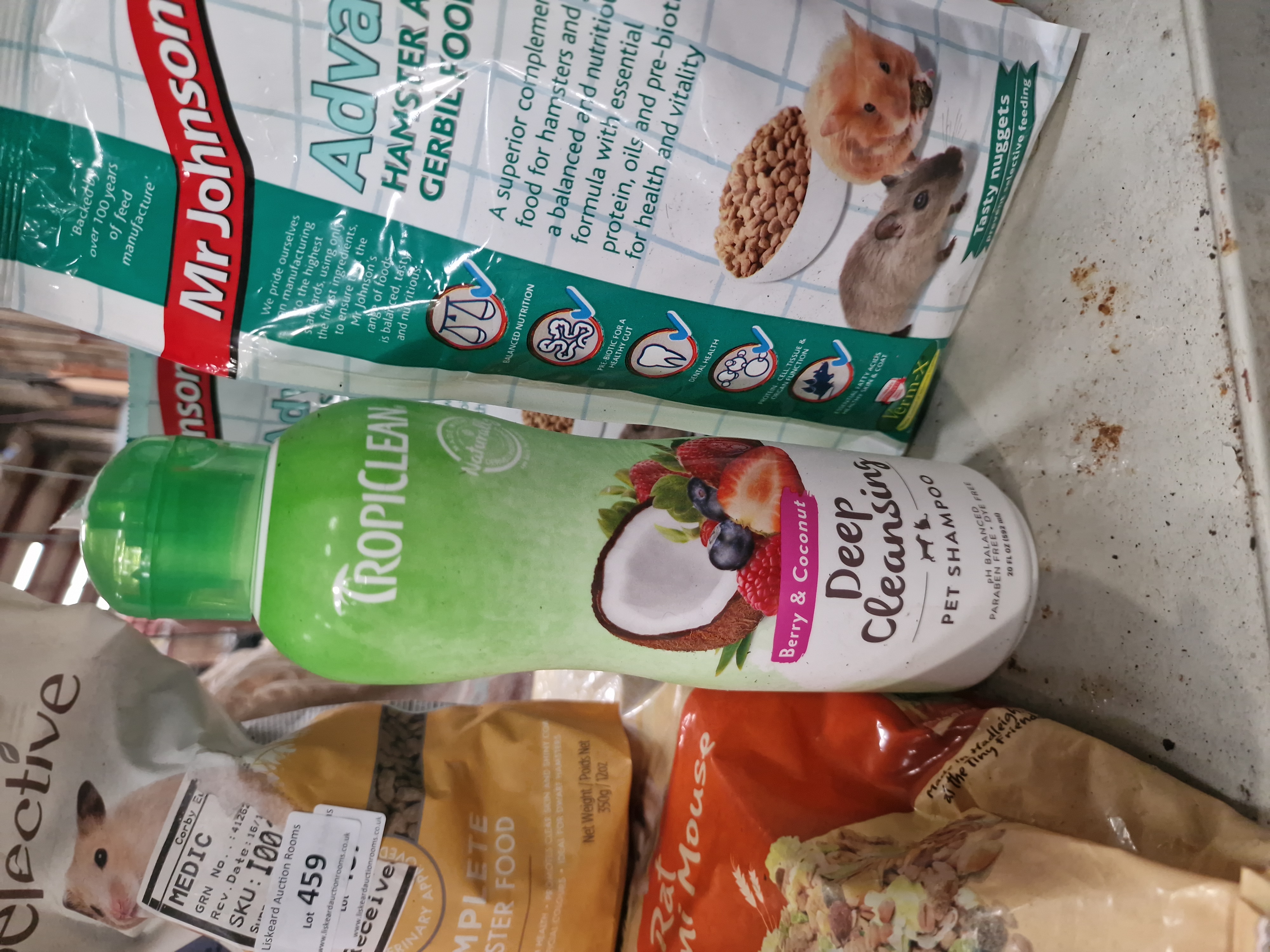 Lot 459: A Collection of Small Animal Pet Food and Grooming Supplies