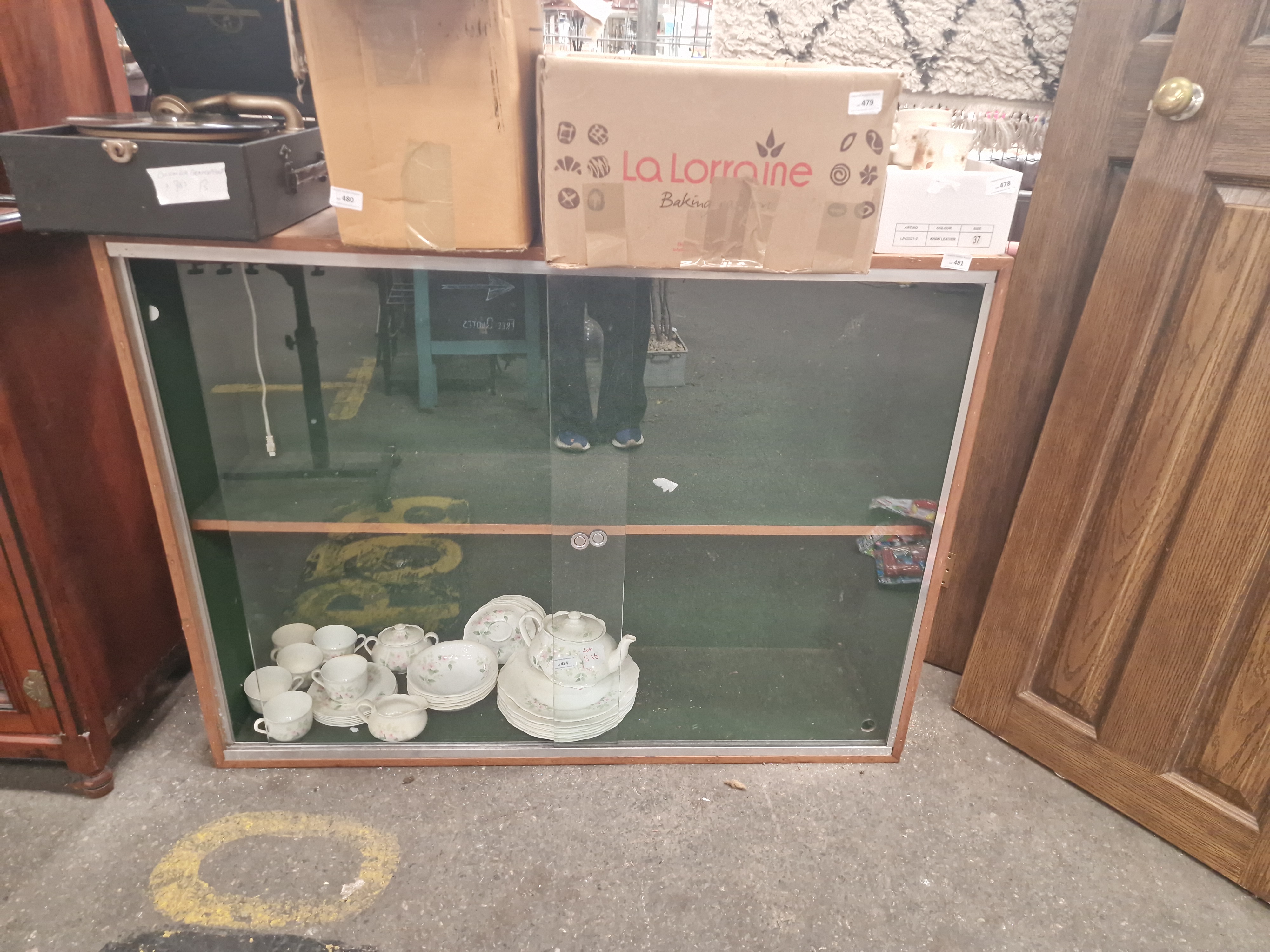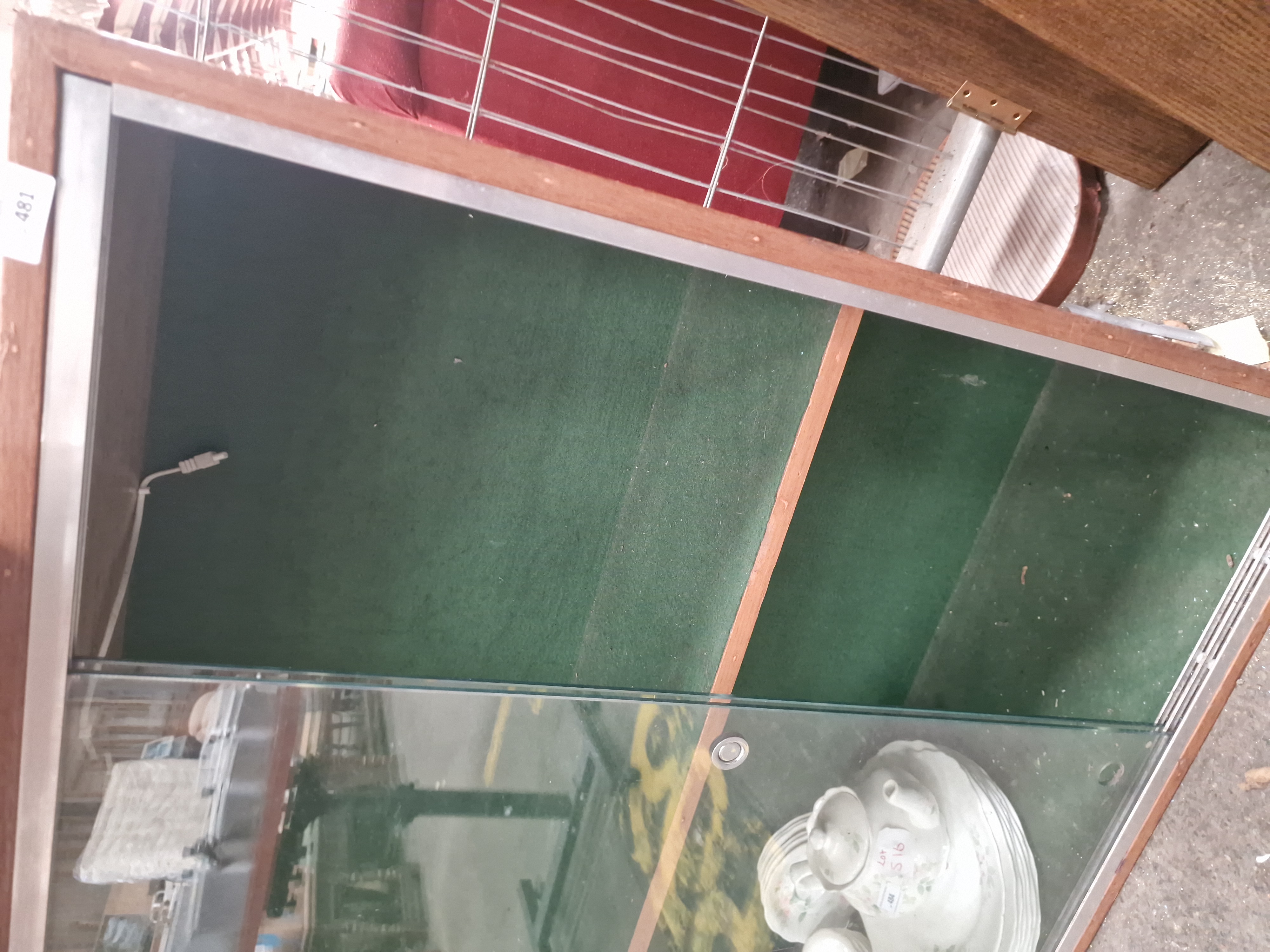 Lot 481: A really lovely glass fronted cabnit with fuzzy green interior