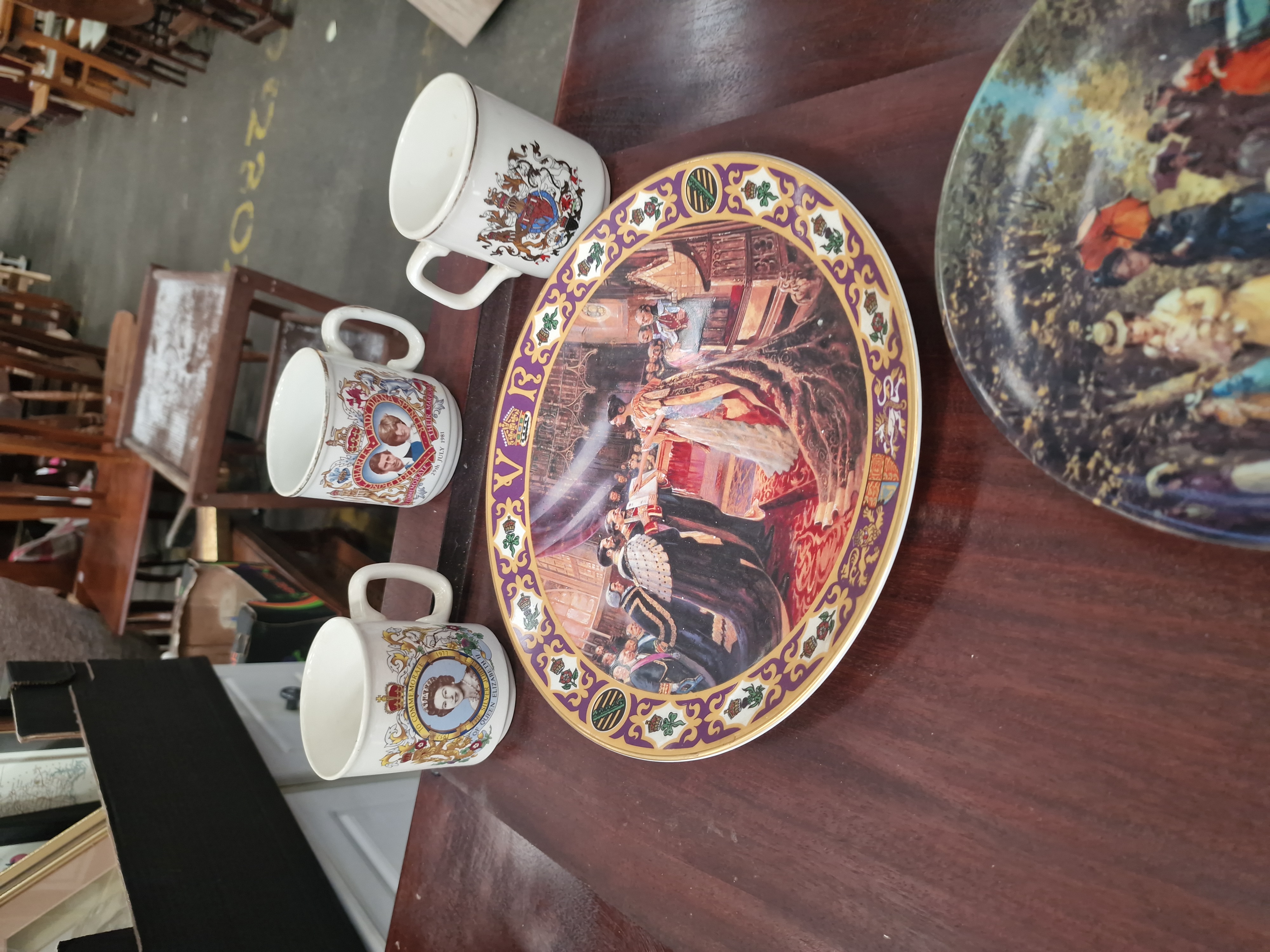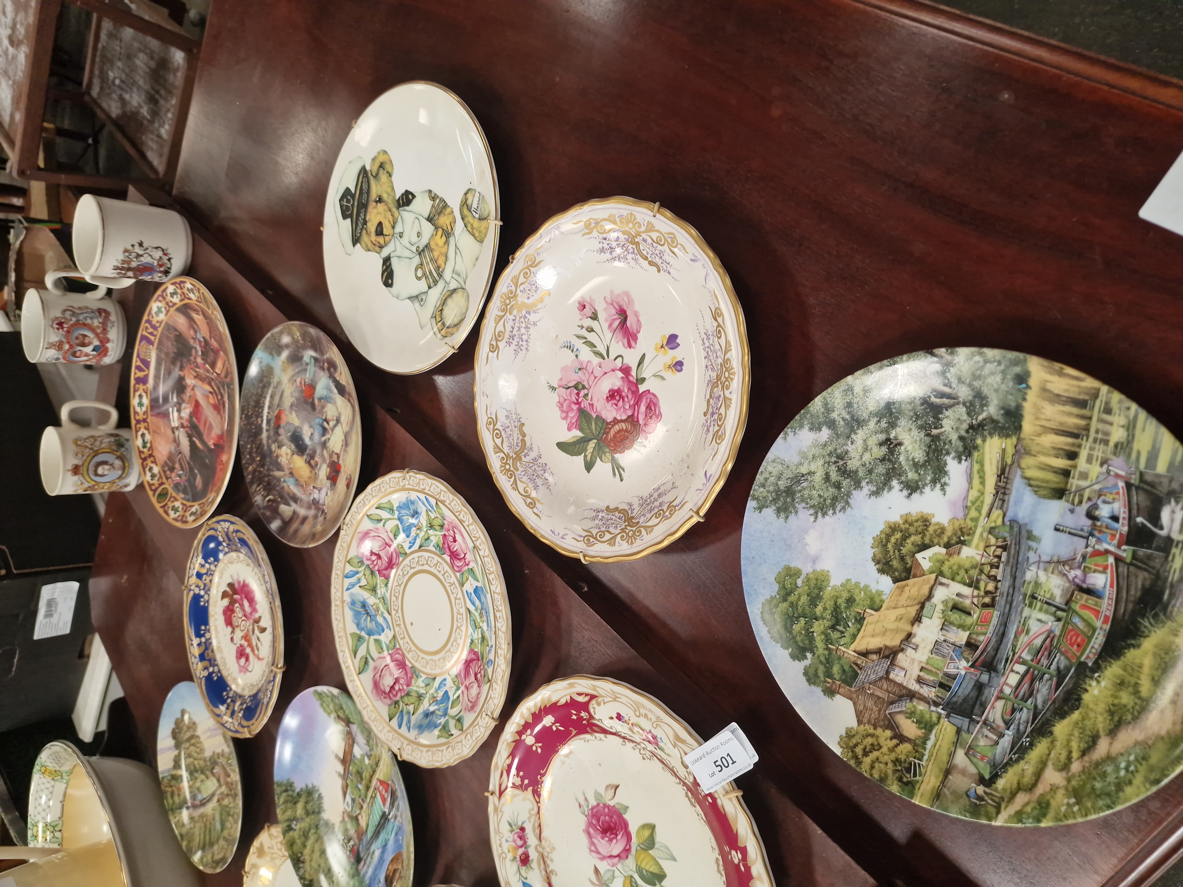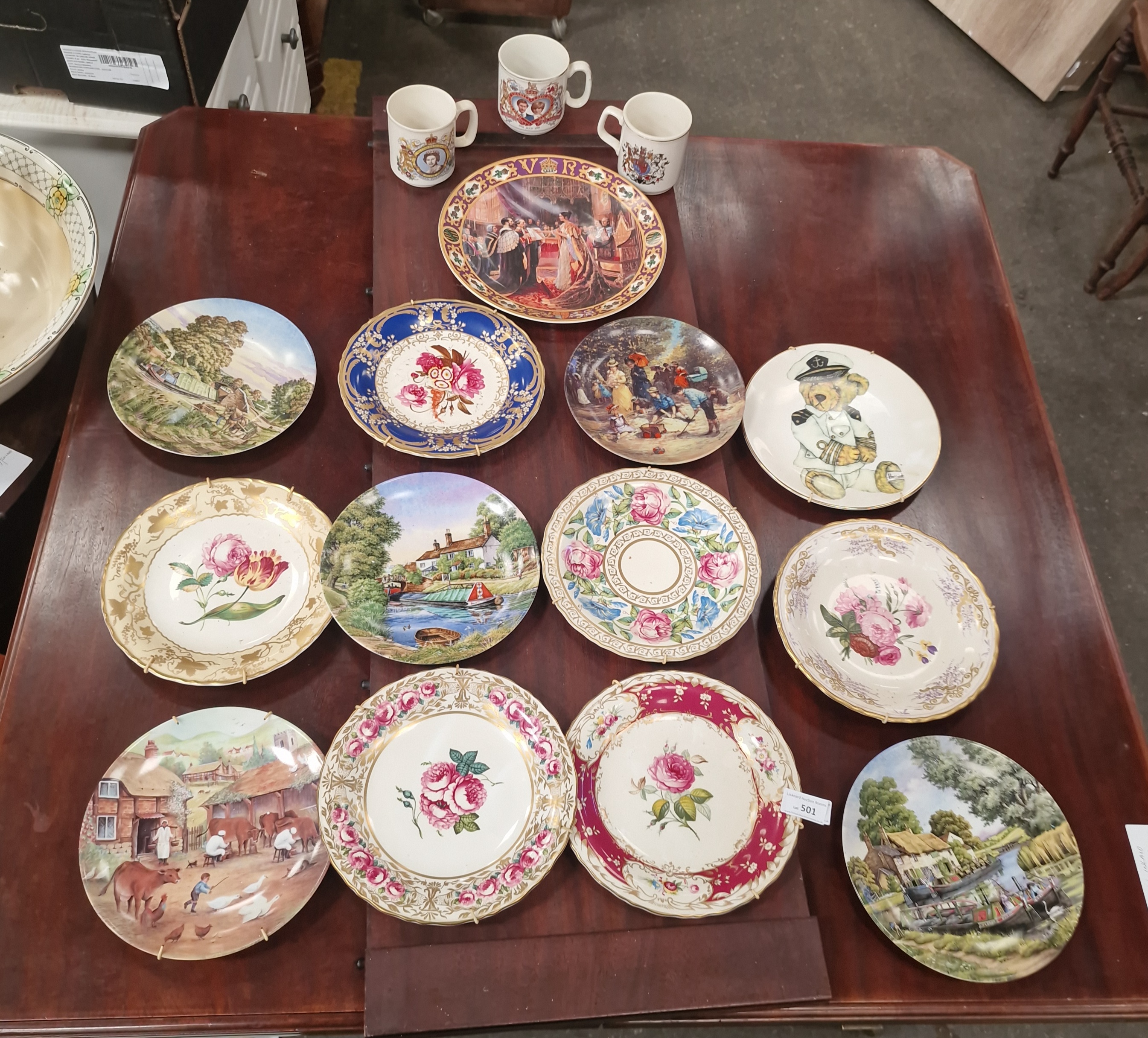Lot 501: A Collection of 13 Decorative Ceramic Cabinet Plates and Three Commemorative Mugs