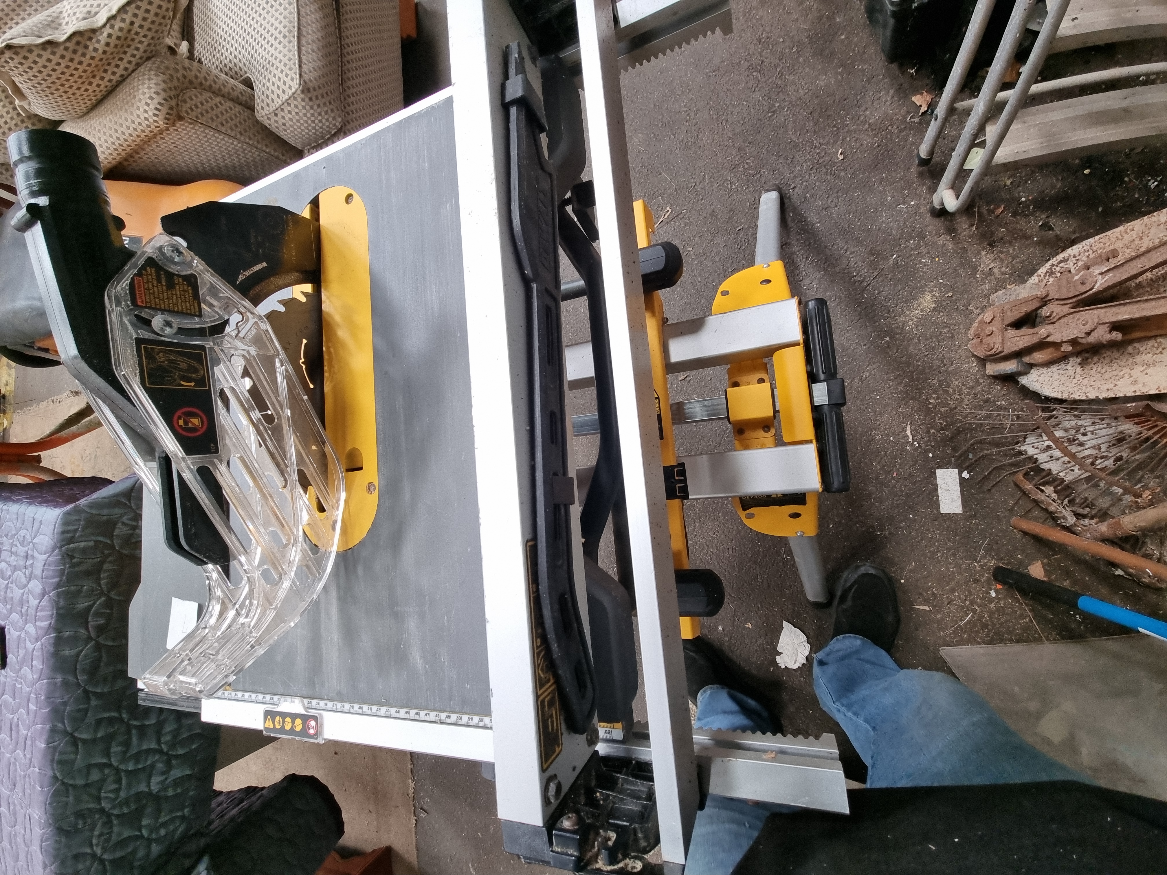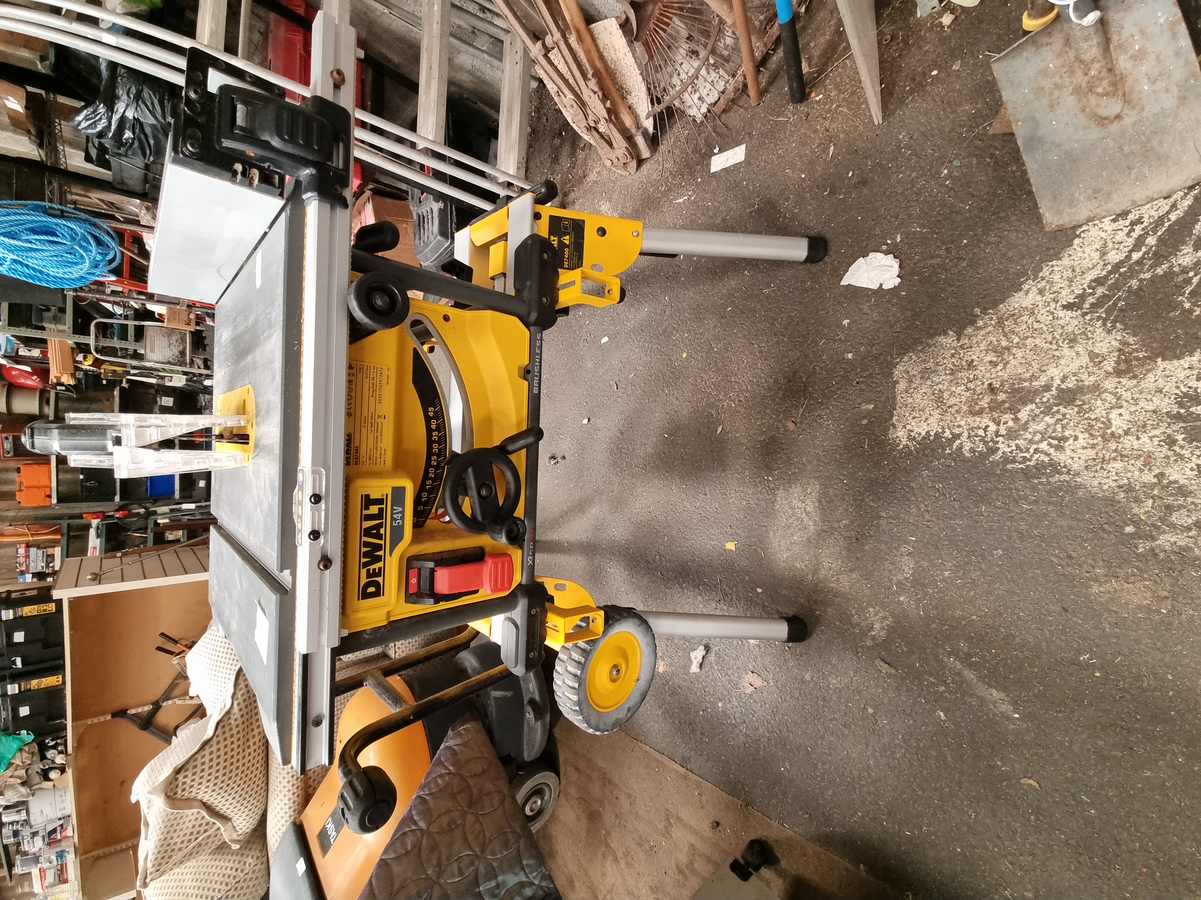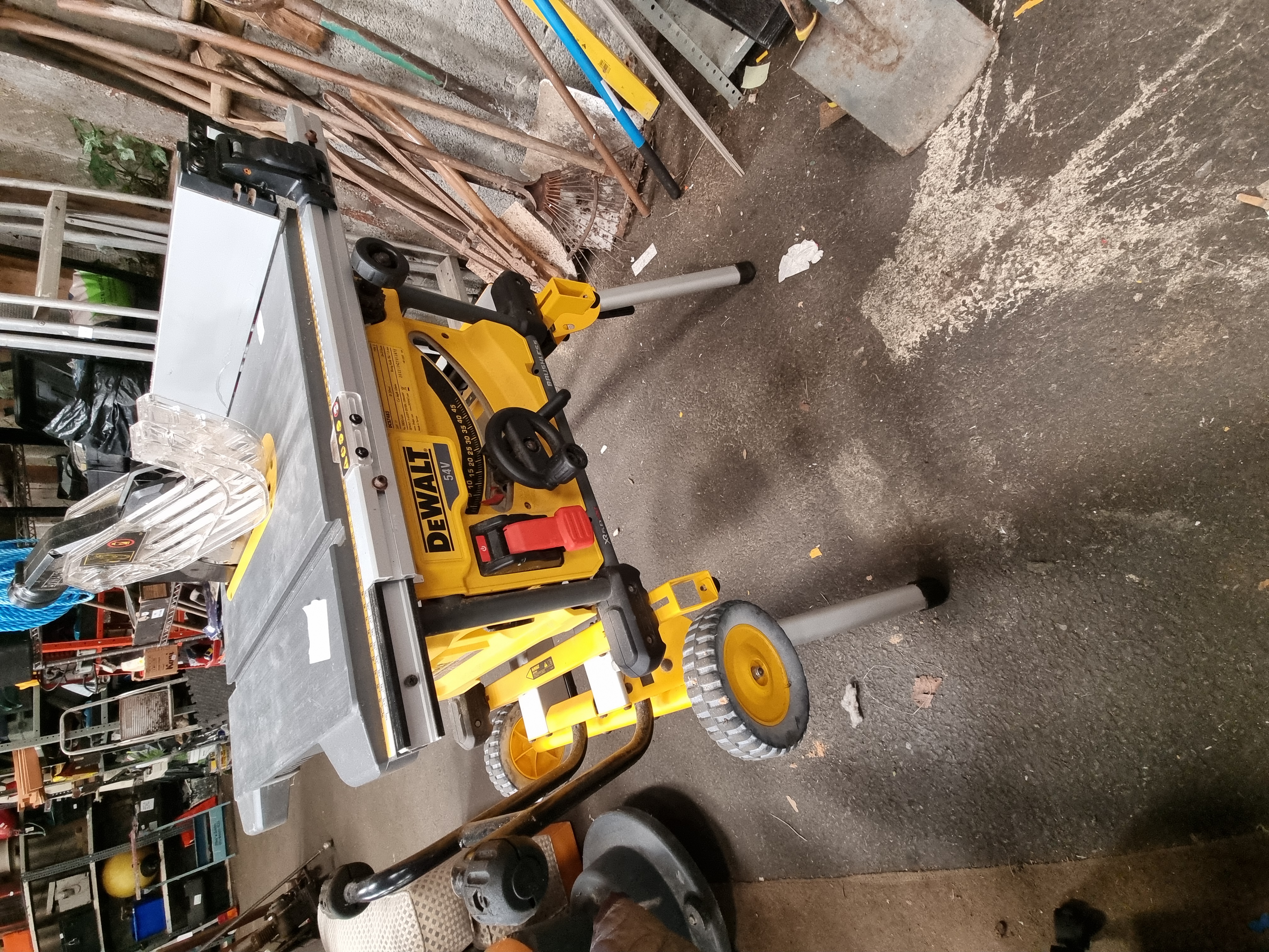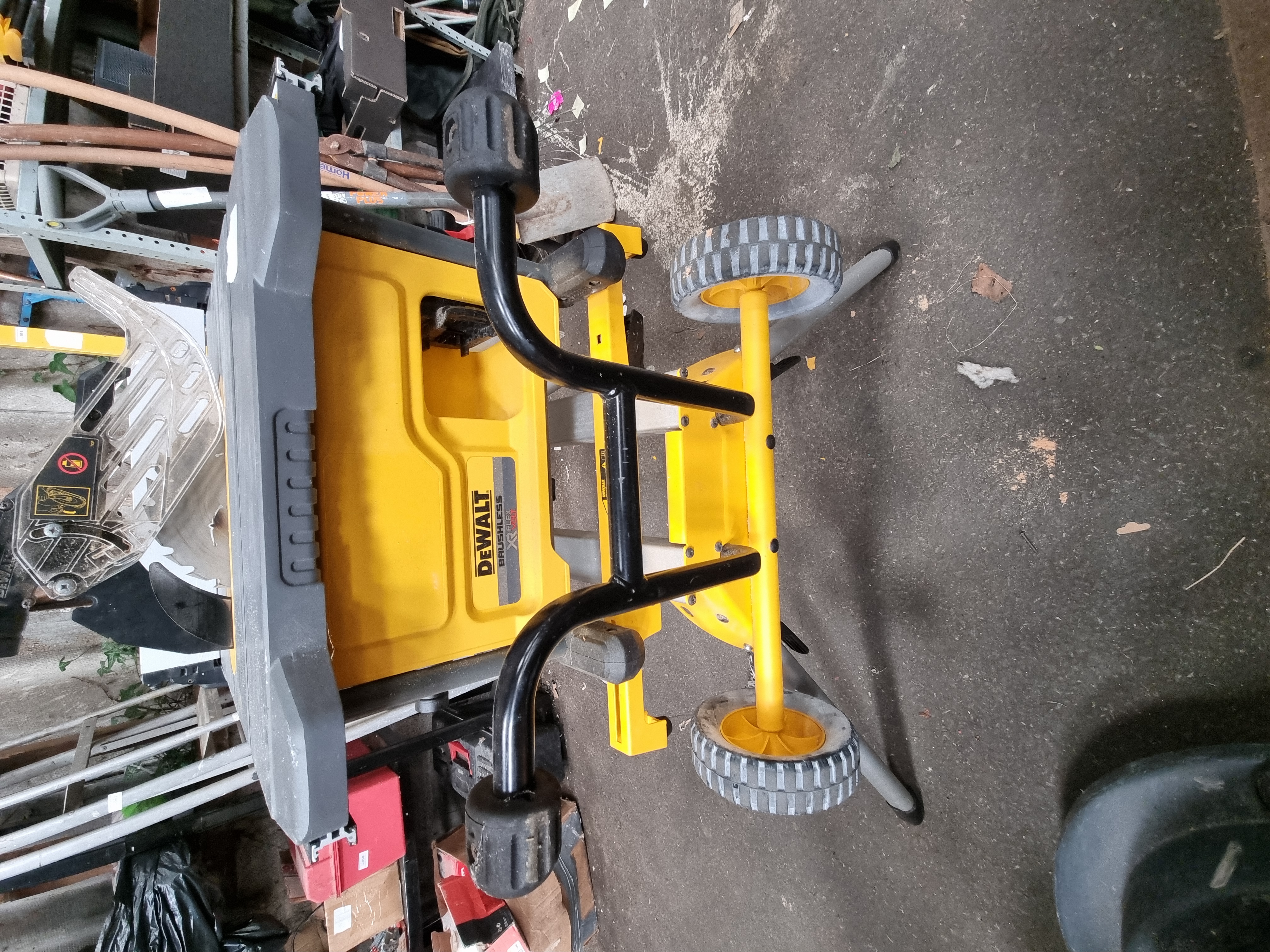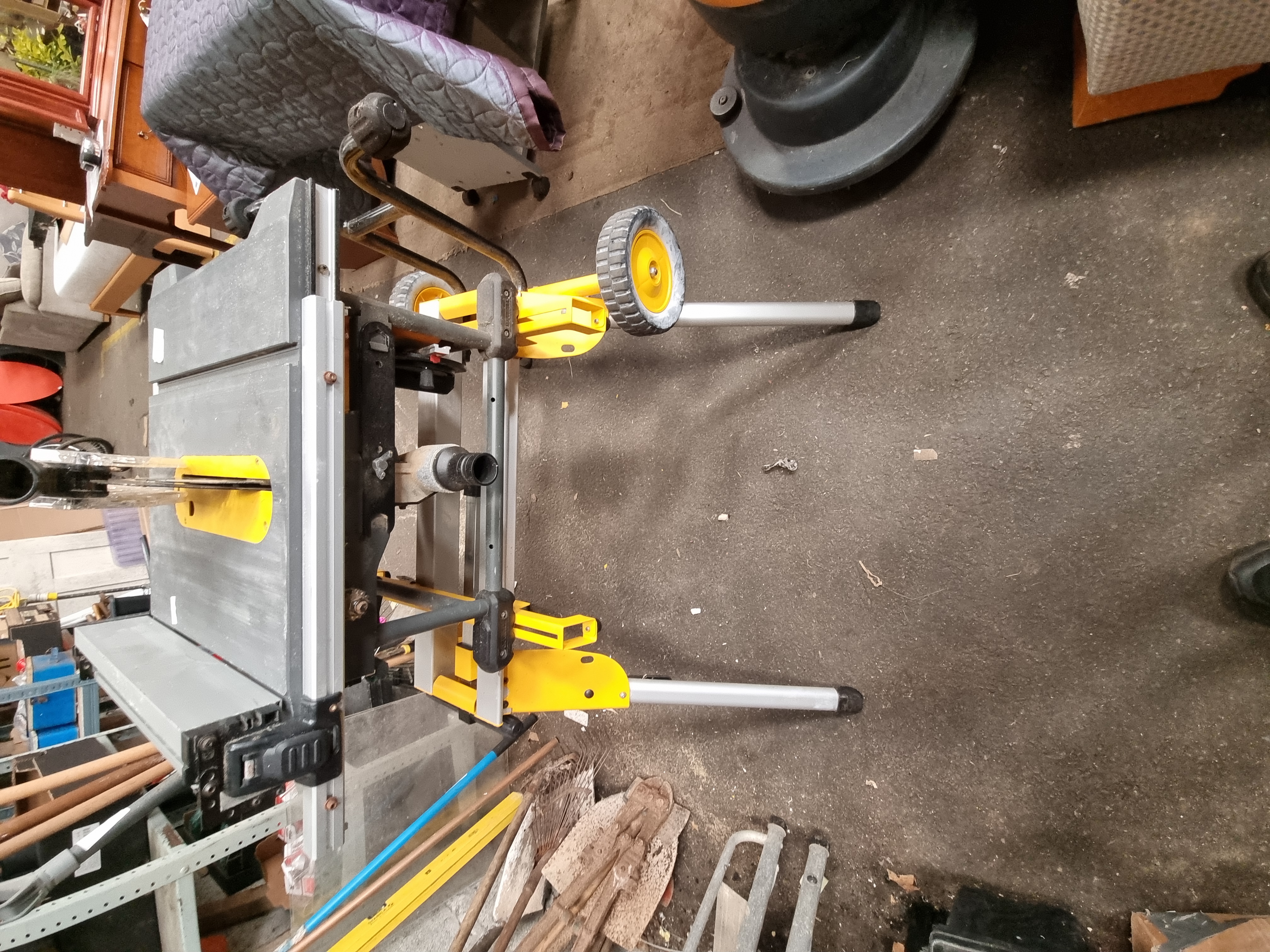 Lot 52: DeWalt DCS7485 Portable Table Saw and Aluminium Rolling Stand DE7400