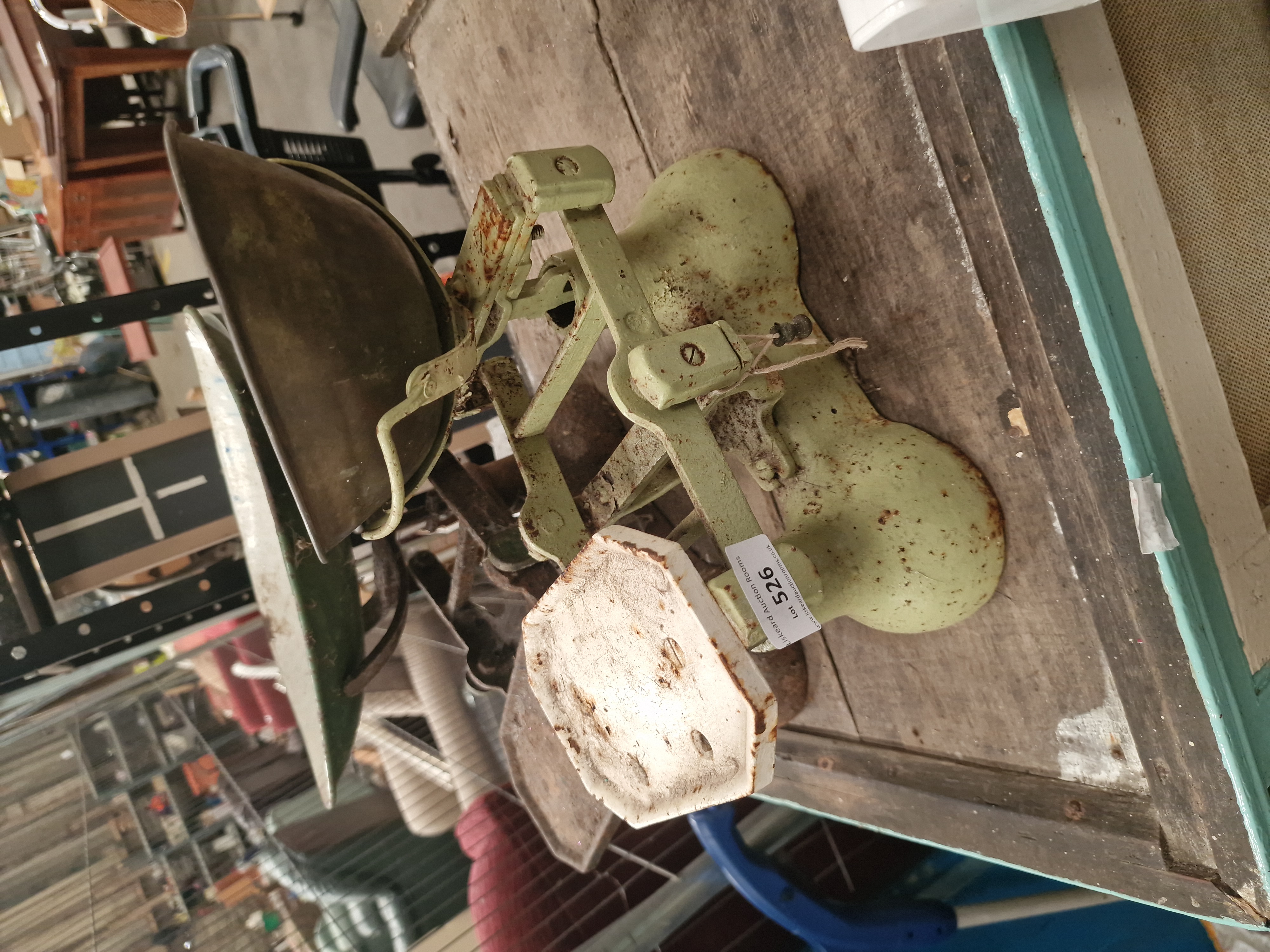 Lot 526: Two vintage cast iron counter-balance kitchen scales and associated weights