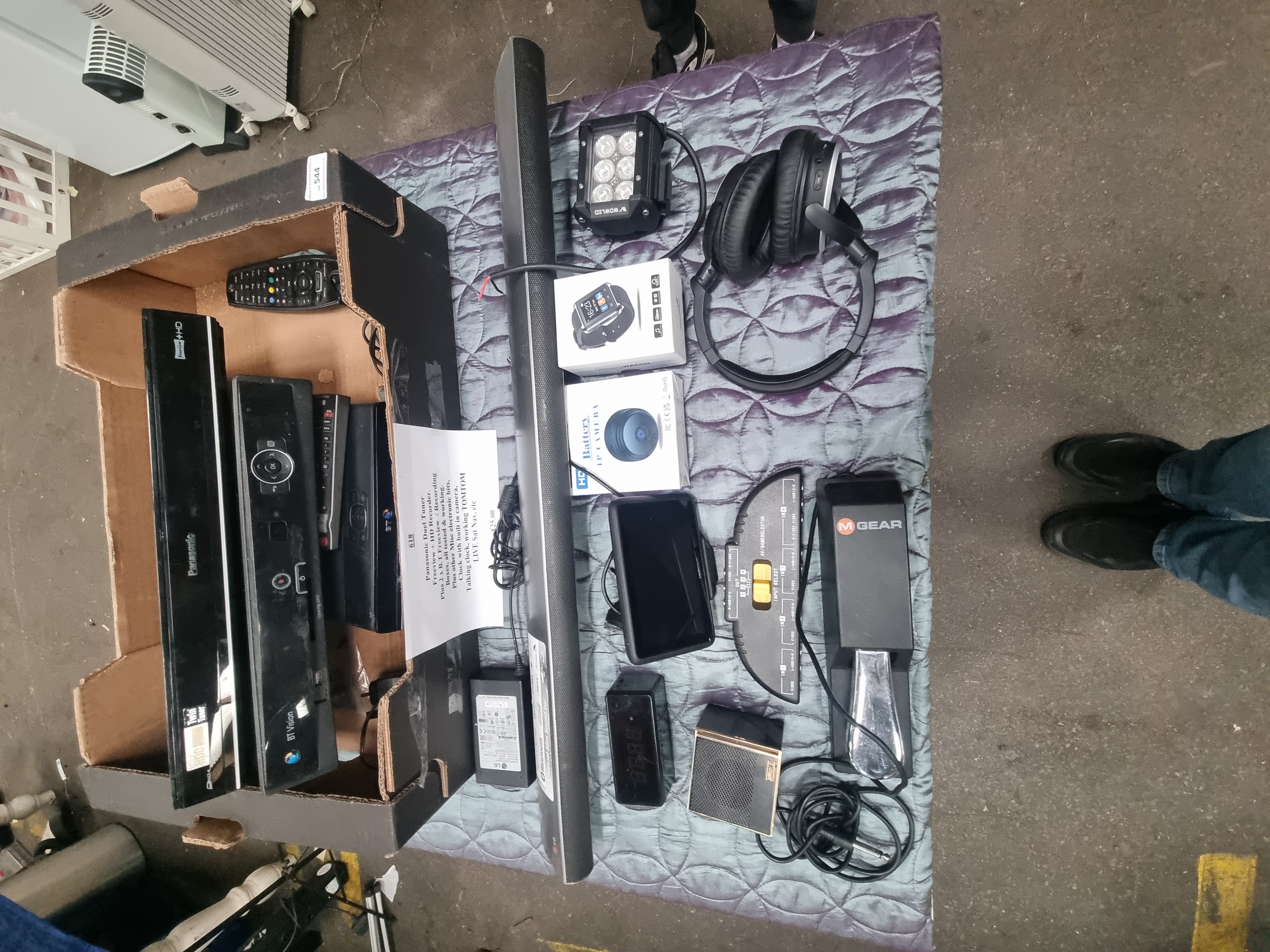 Lot 544: An Assortment of Consumer Electronics and Accessories including Panasonic Freeview+ HD Recorder and LG Soundbar