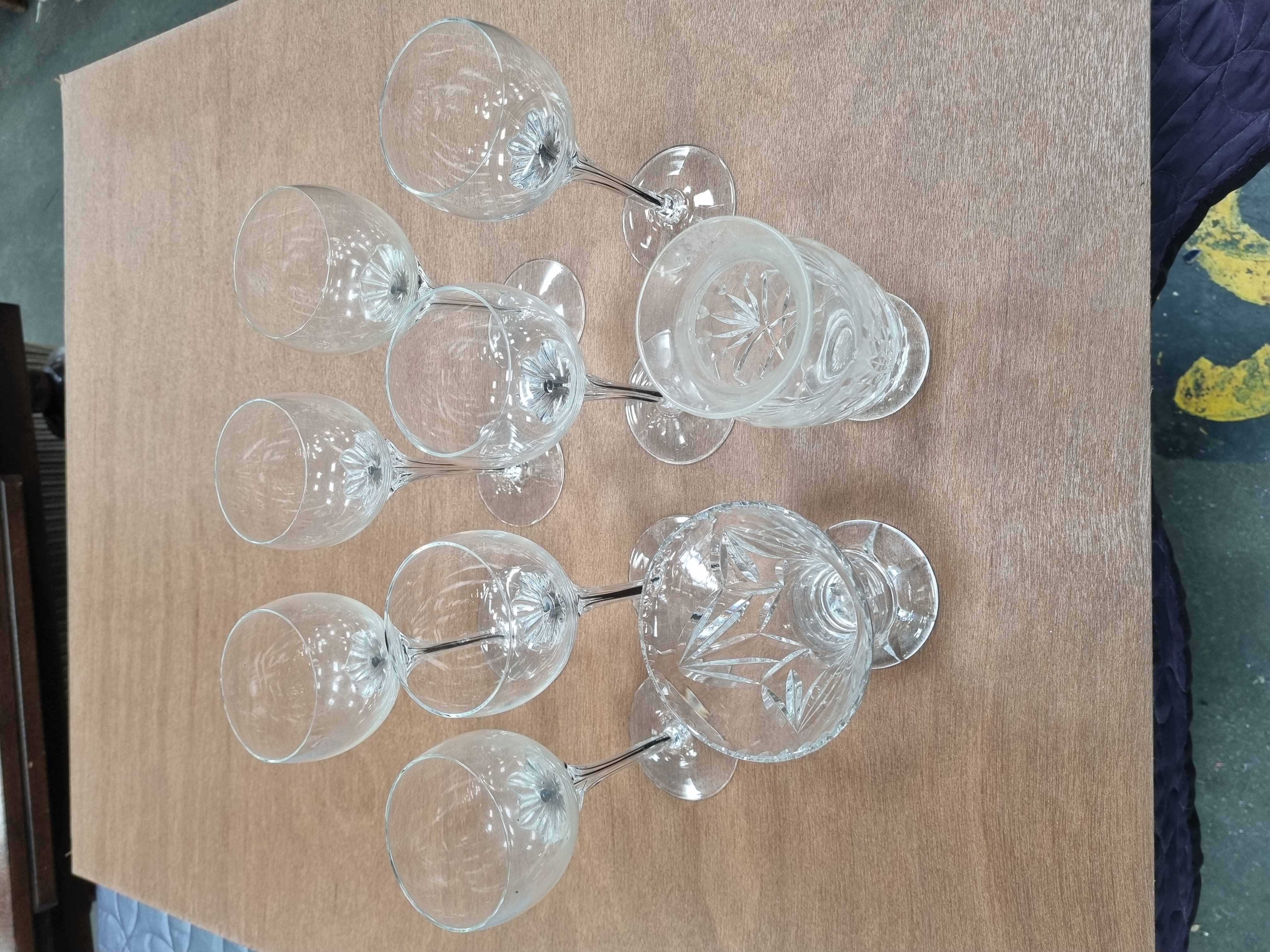 Lot 552: A Collection of Waterford, Edinburgh, and Bohemia Crystal Hock Glasses and Vases