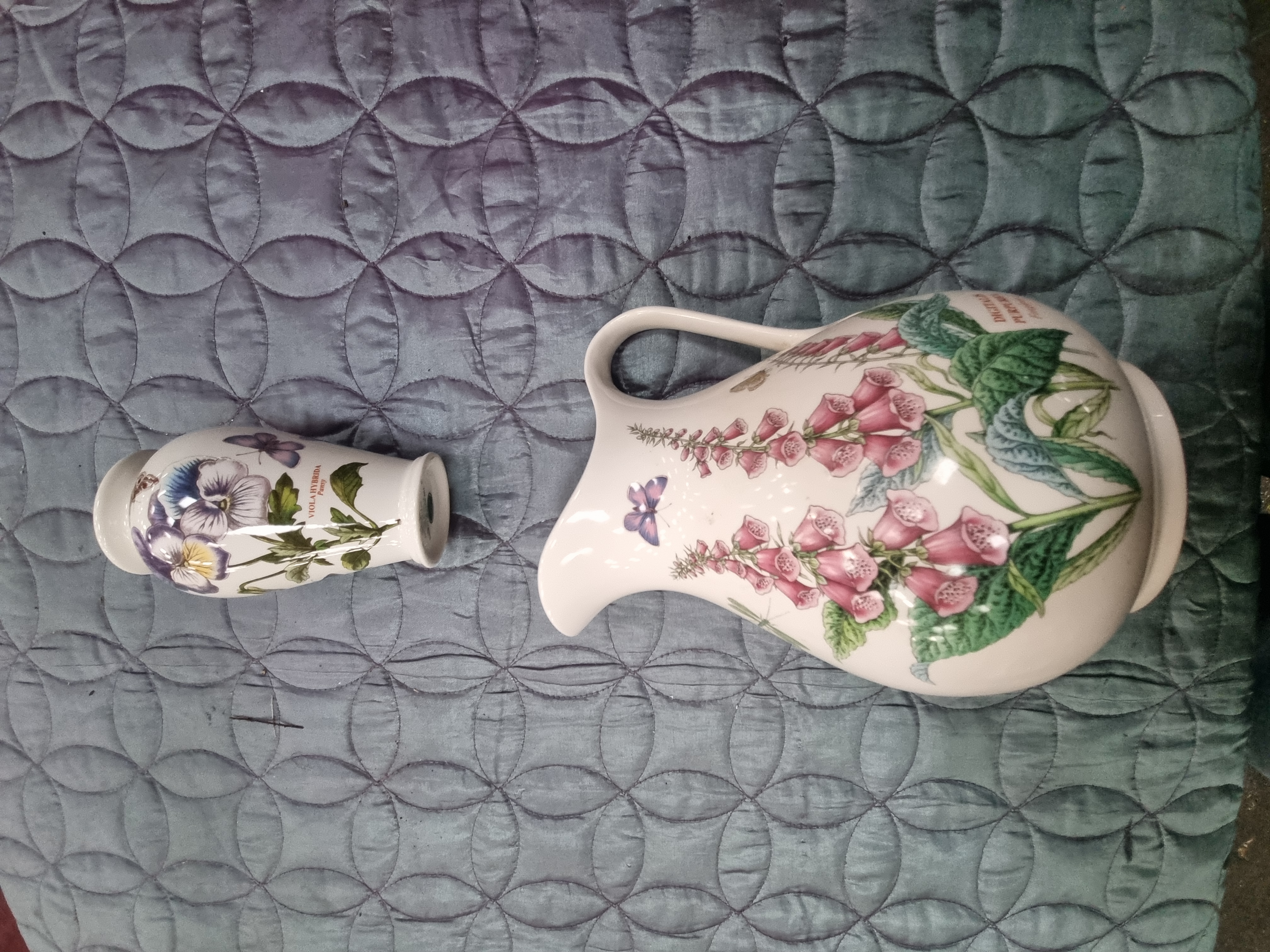 Lot 583: Two Portmeirion Botanic Garden Ceramic Items comprising a Large Pitcher and a Small Vase