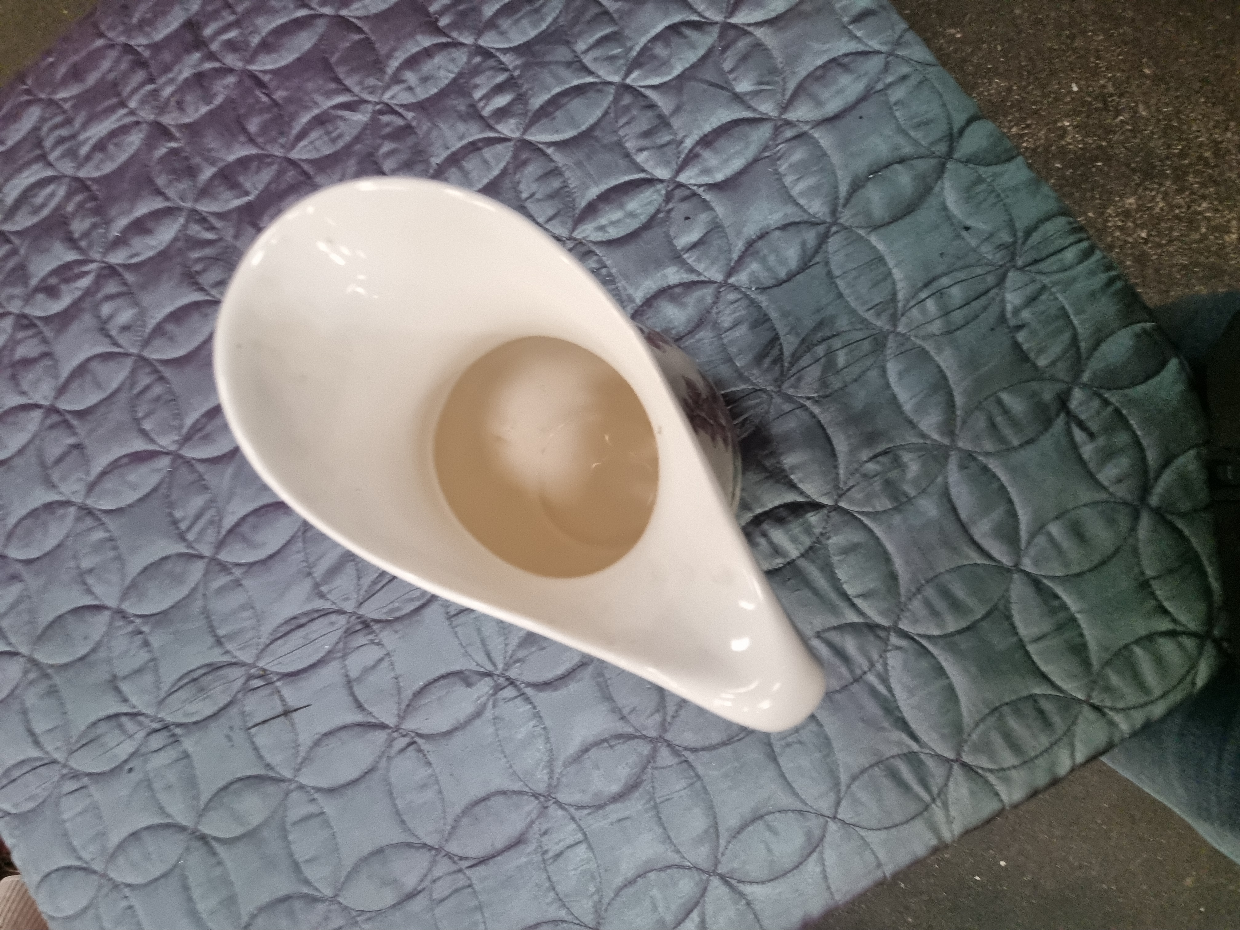 Both items are in excellent overall condition with no visible chips, cracks, or evidence of restoration. There is minor shelf wear to the unglazed foot rim of the large pitcher.