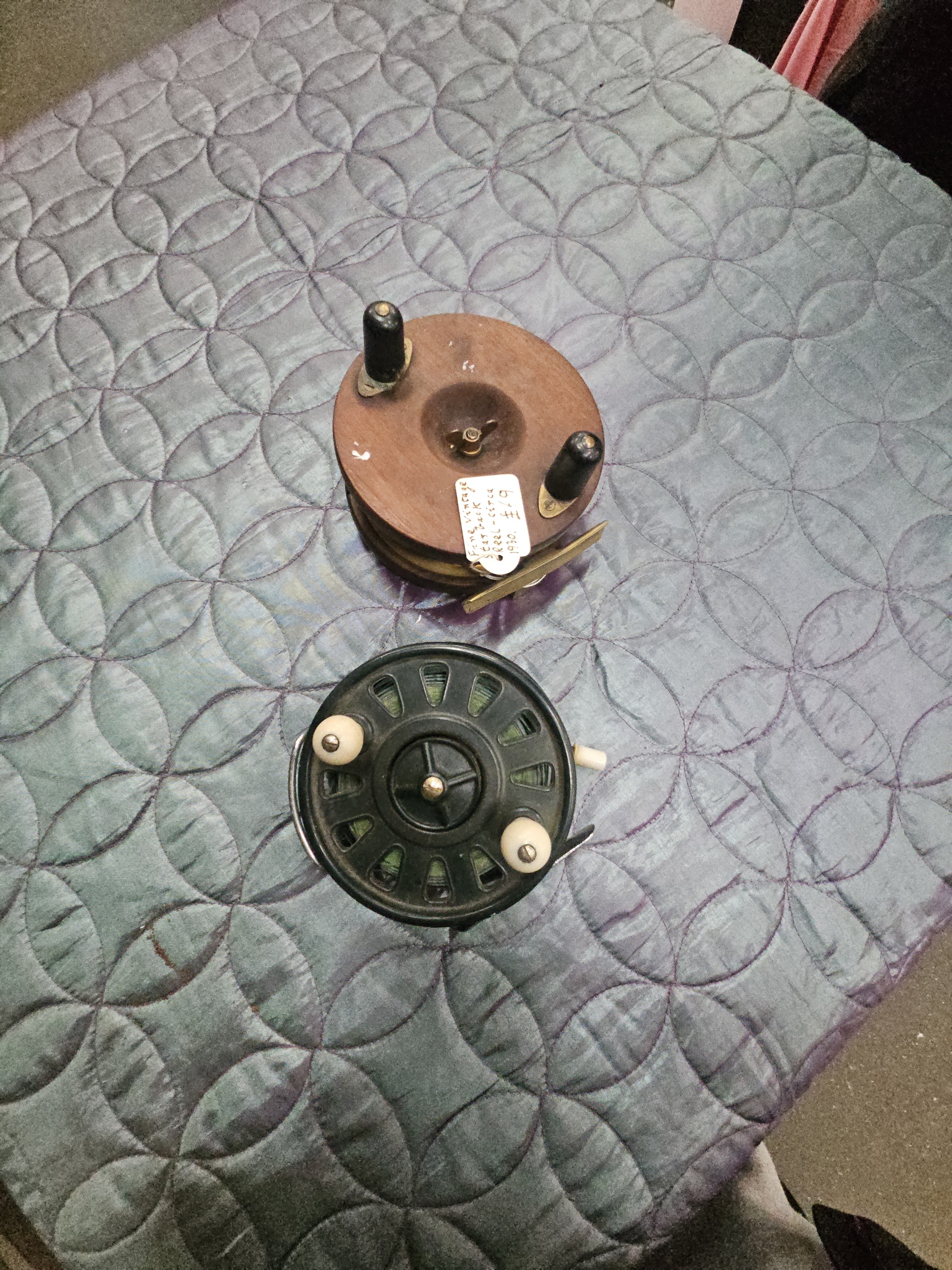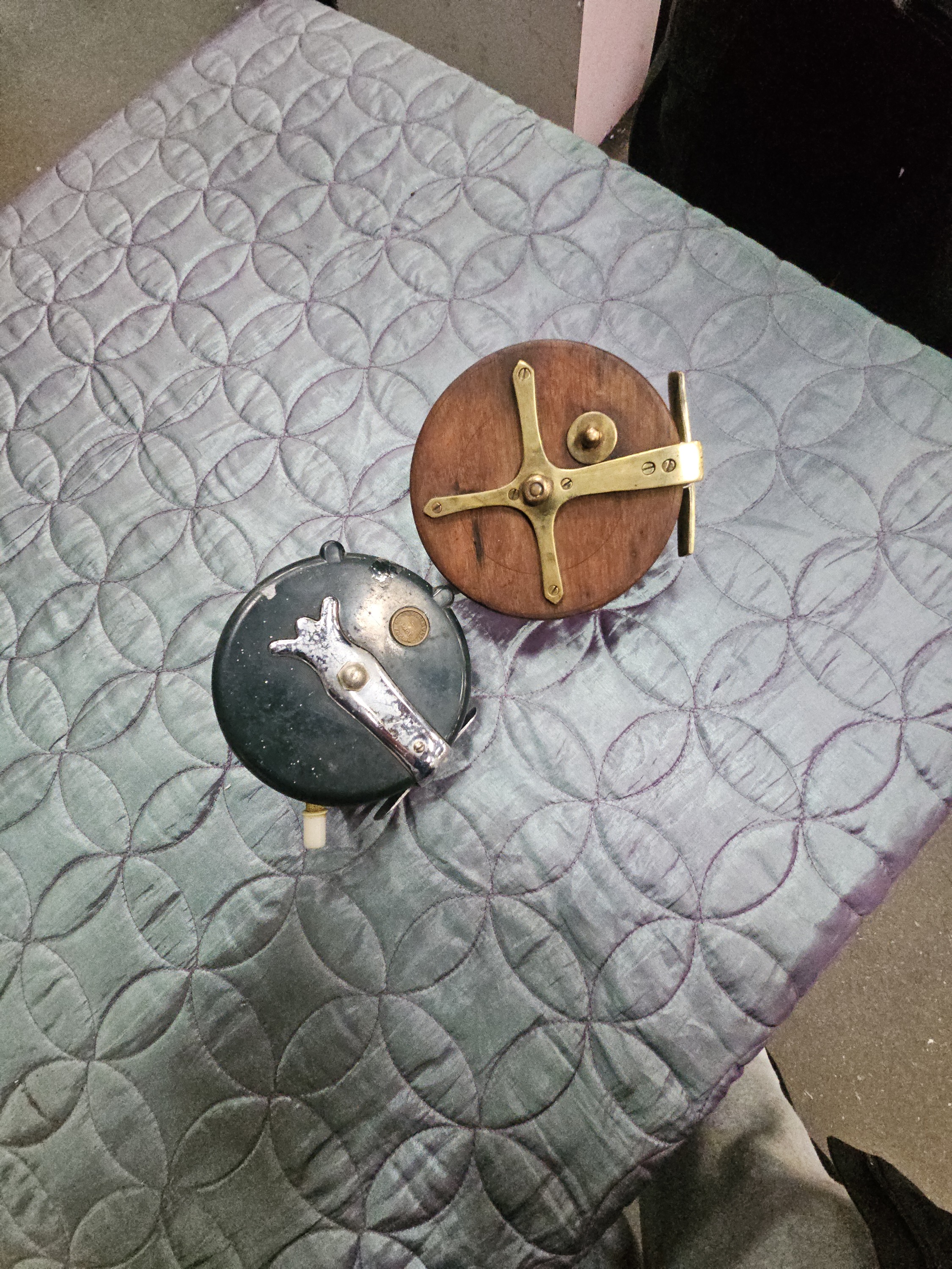 Lot 593: Two Vintage Fishing Reels including a Wooden Starback and an S. Allcock and Co. Ltd. Steelite