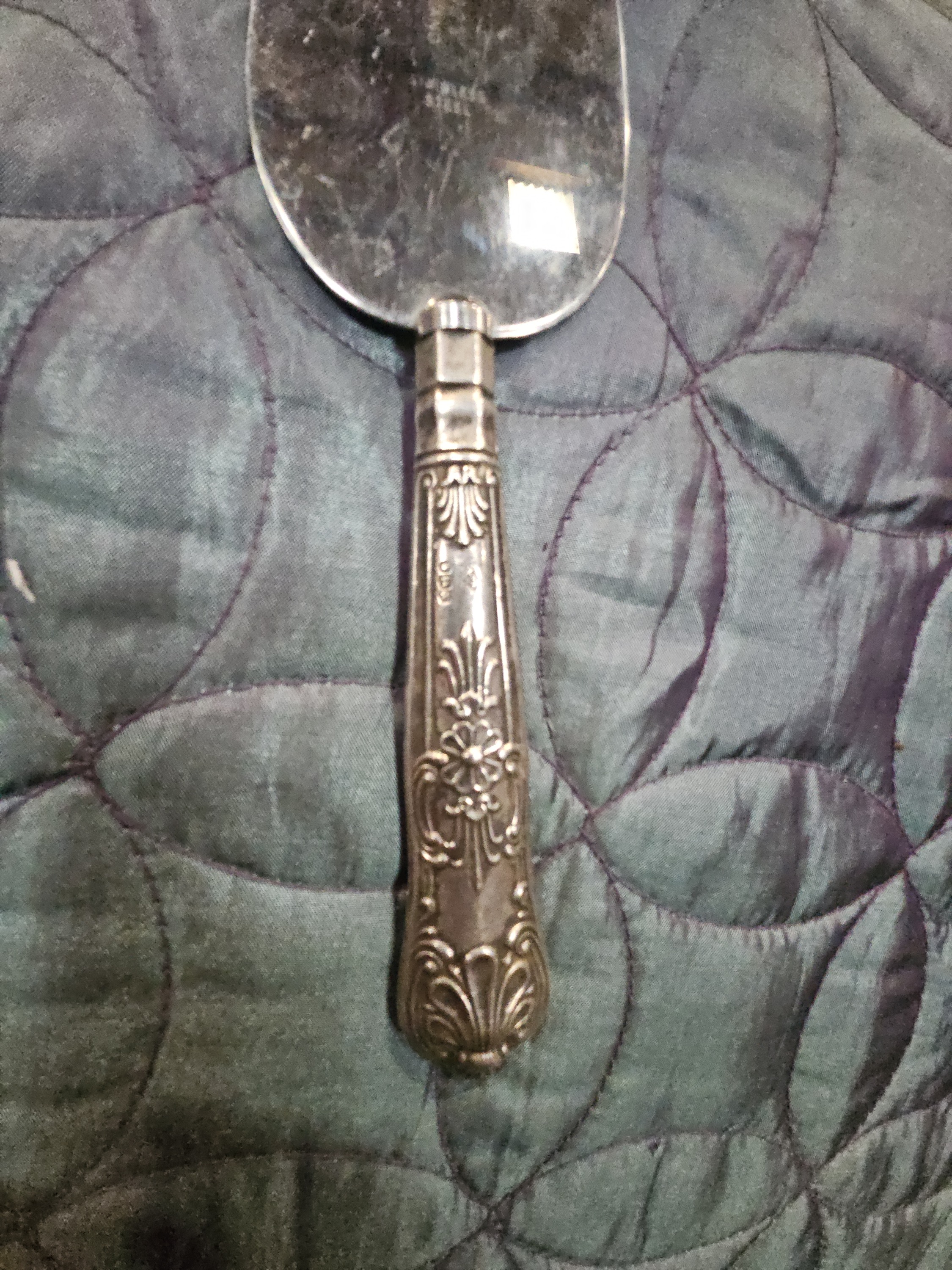 Lot 597: A Mid-20th Century Sterling Silver Handled Cake Server, Viners Ltd, Sheffield
