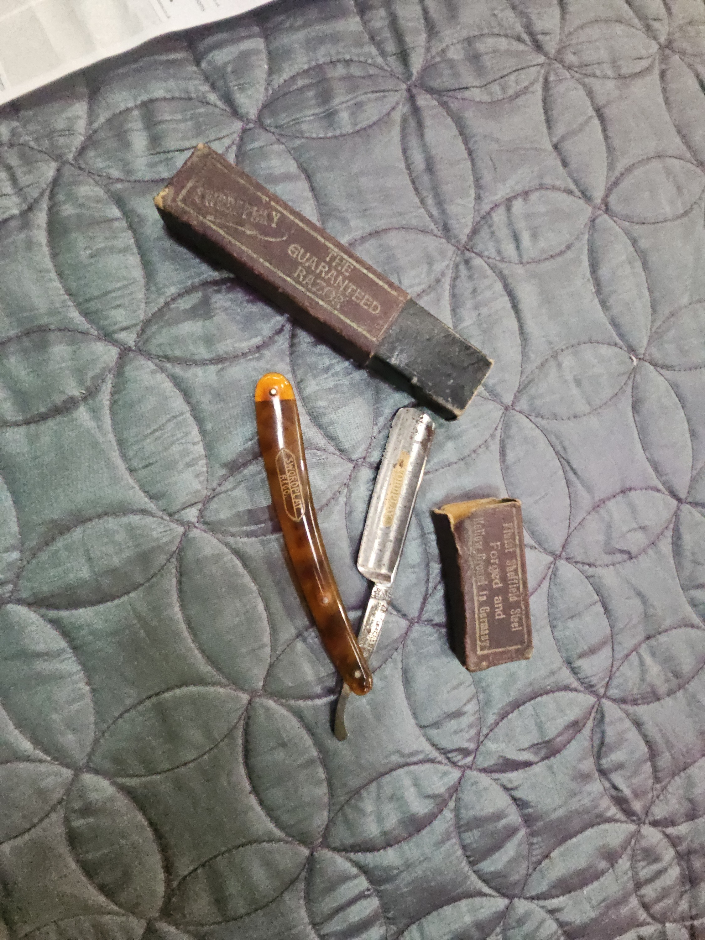 Lot 602: Swordplay Sheffield Steel Hollow Ground Straight Razor with Original Box