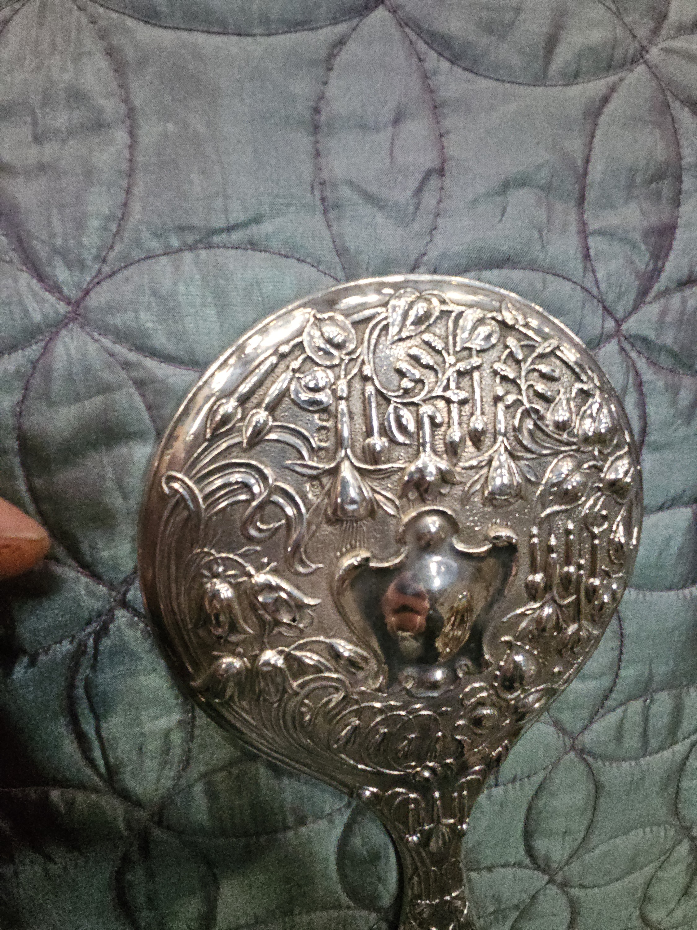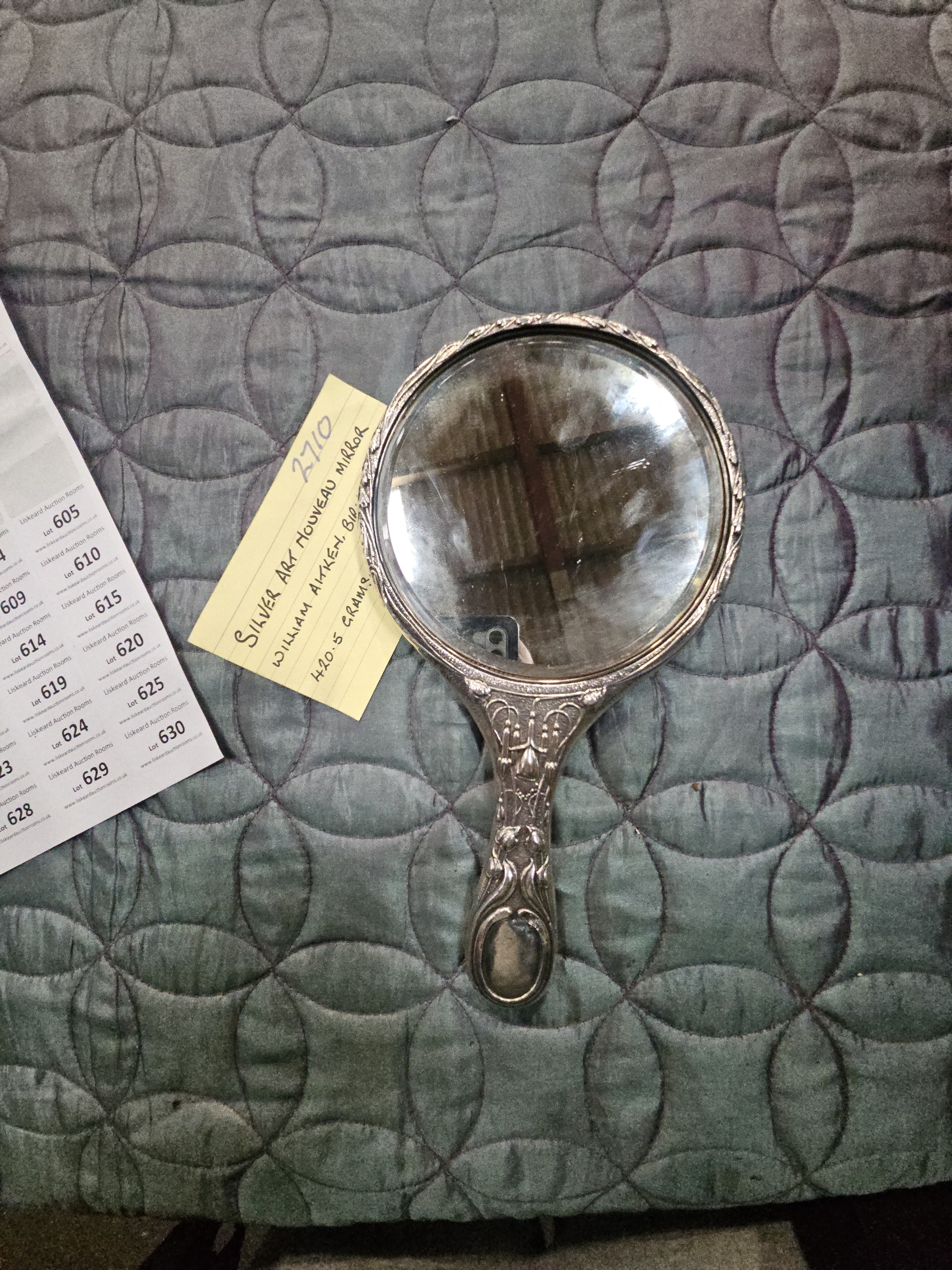 Lot 604: An Art Nouveau Silver Hand Mirror by William Aitken