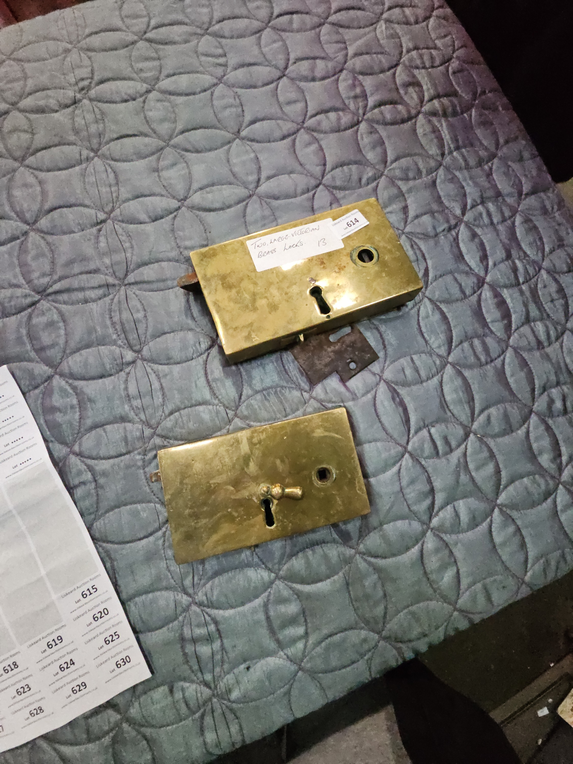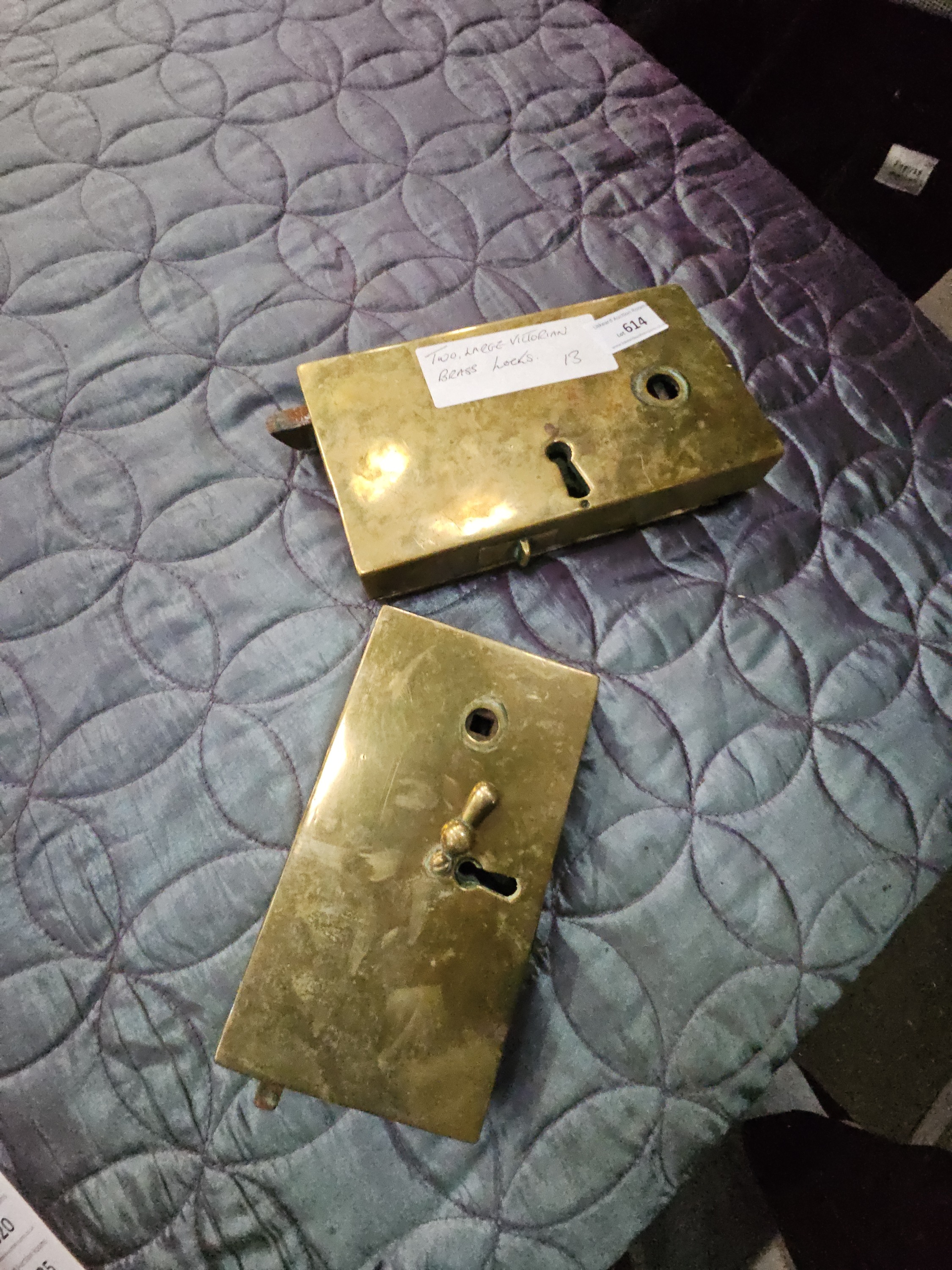 Lot 614: A Pair of Large Victorian Brass-Cased Rim Locks