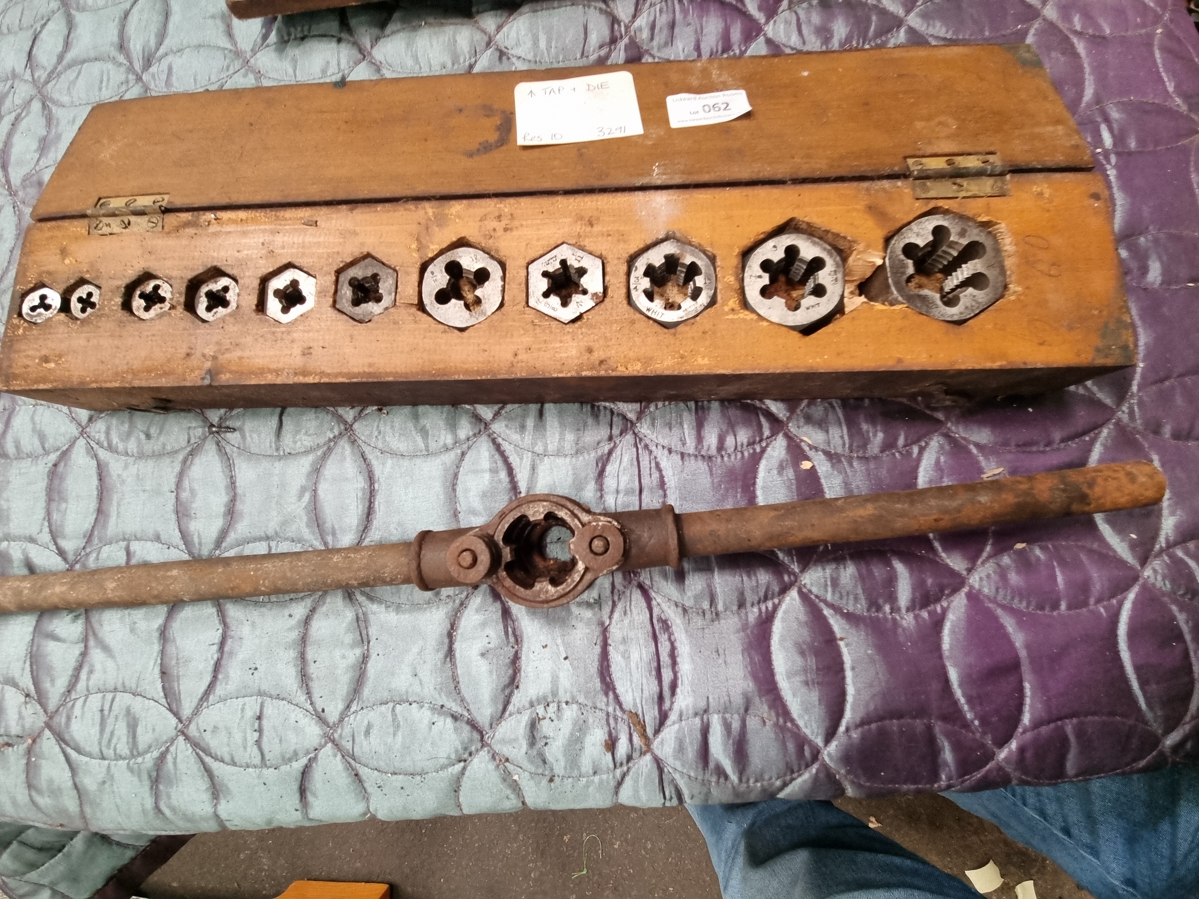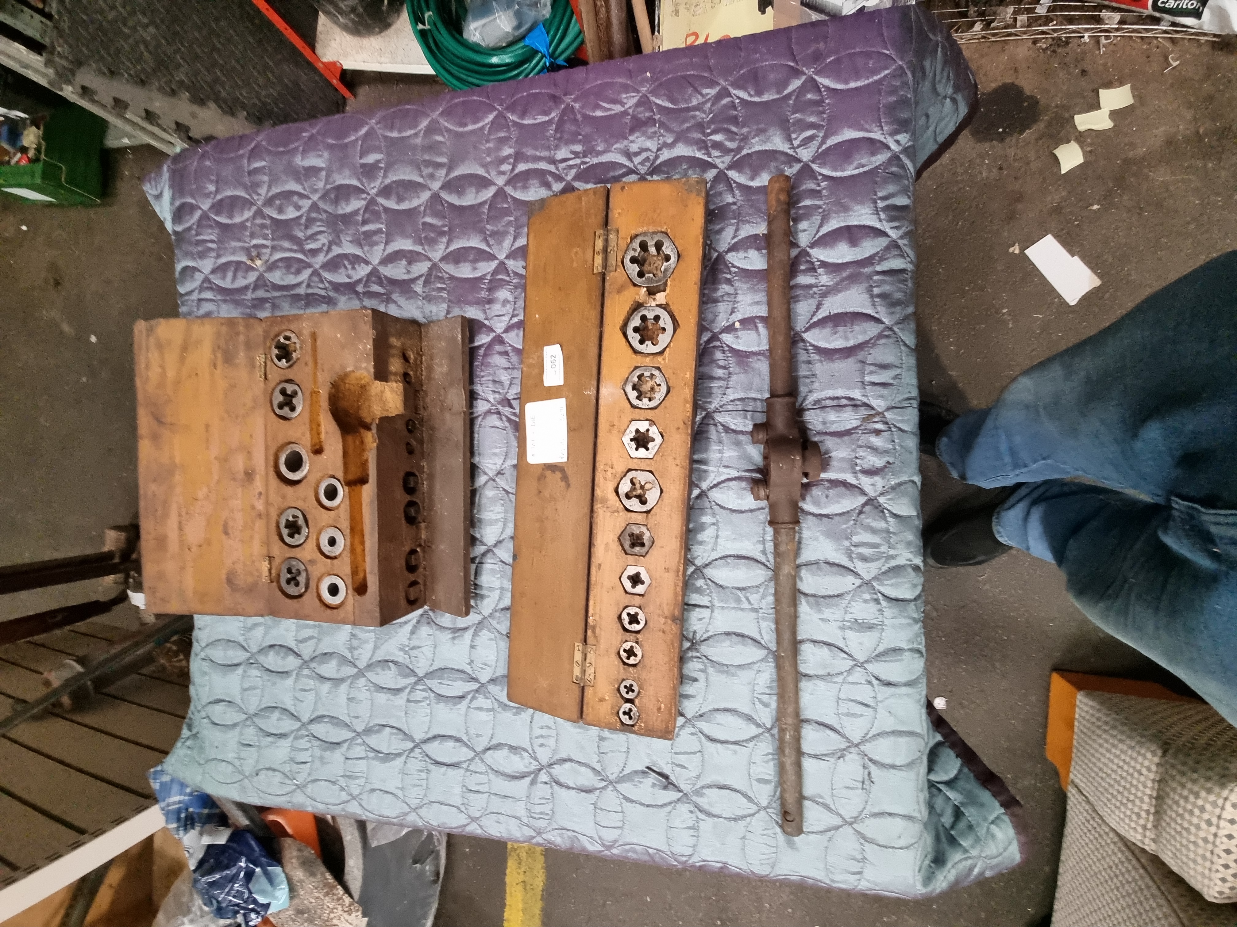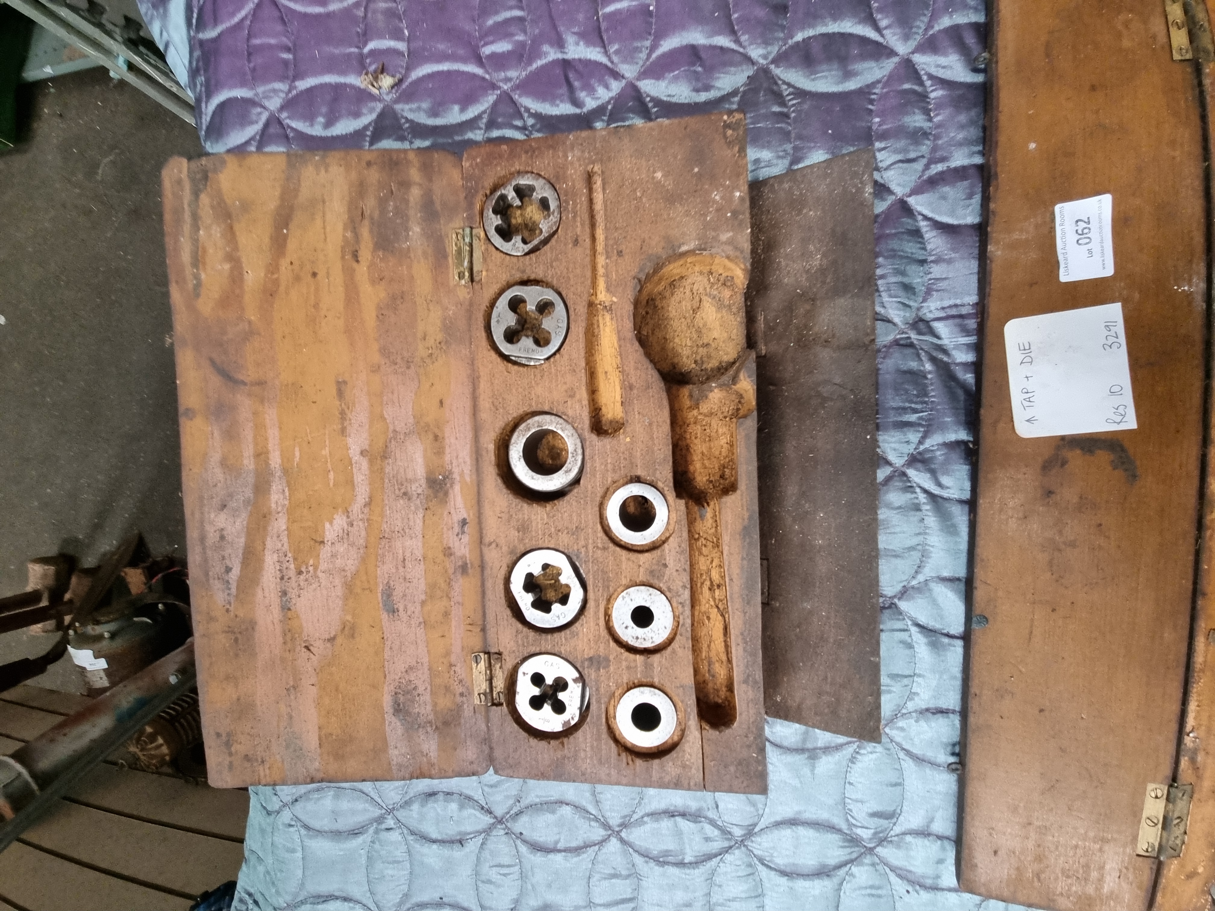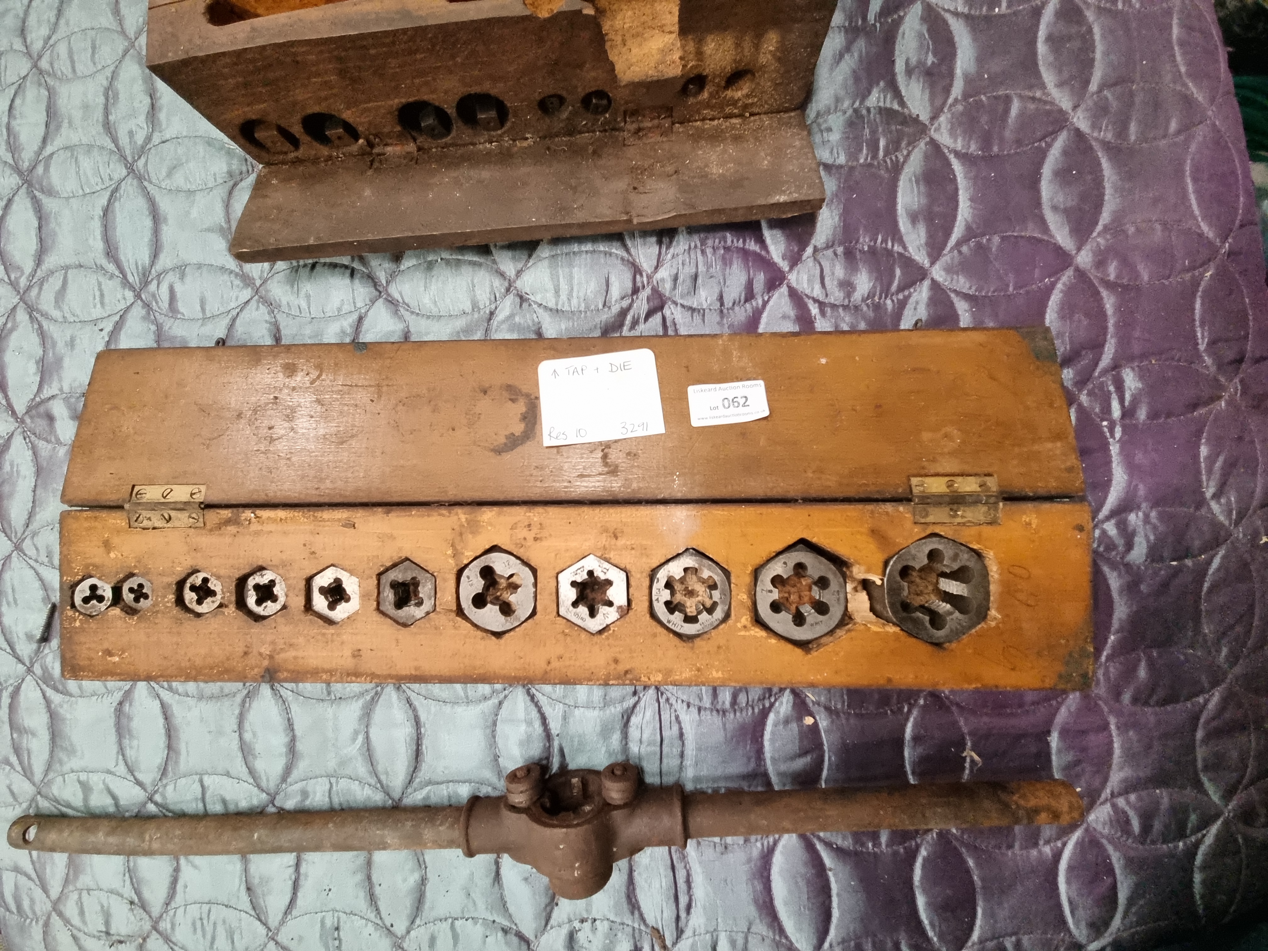 Lot 62: Two Vintage British Tap and Die Sets in Wooden Cases with Large Wrench