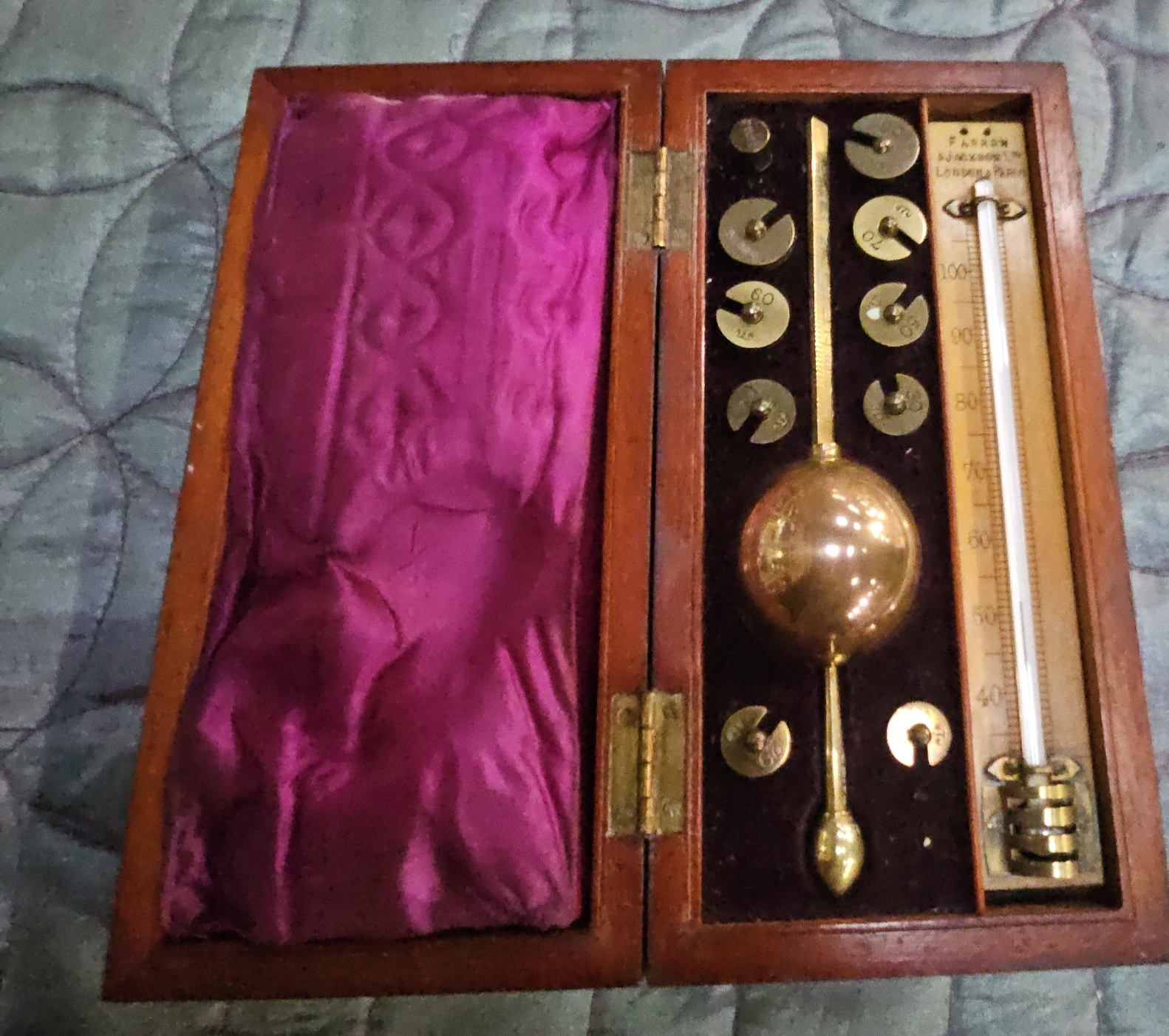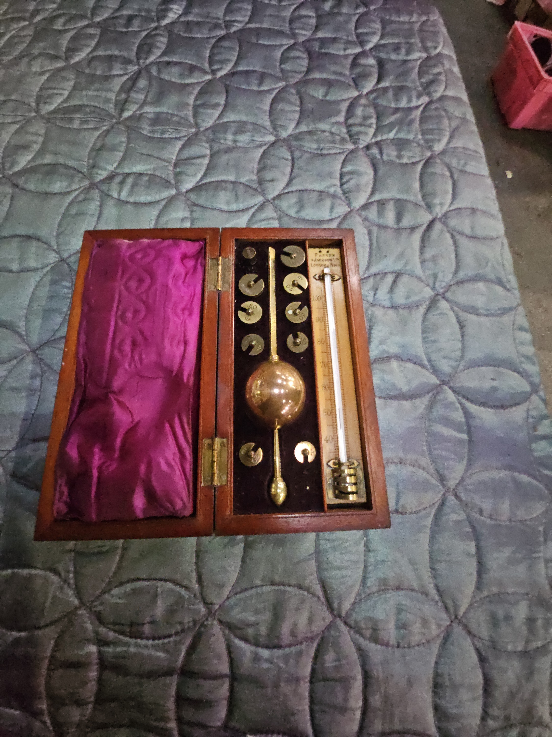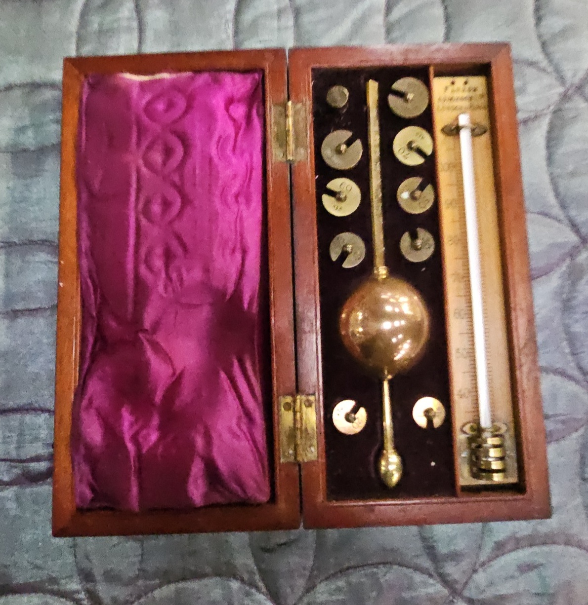 Lot 641: A Cased Brass Sikes Hydrometer Set by Farrow and Jackson Limited