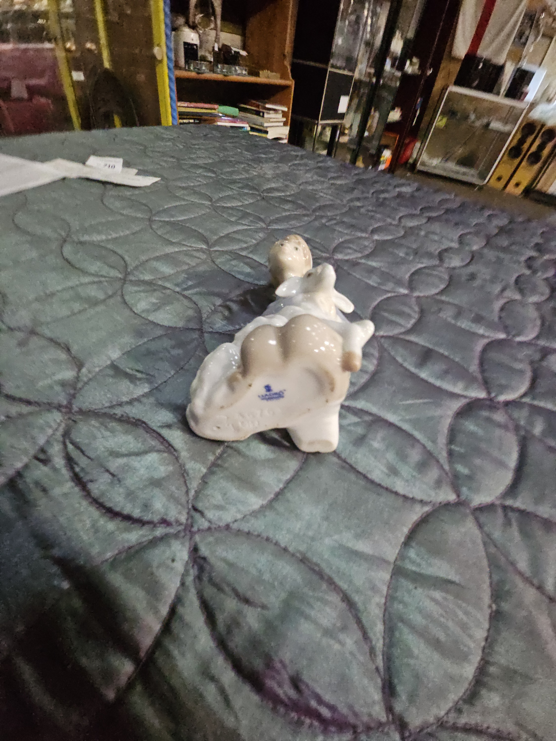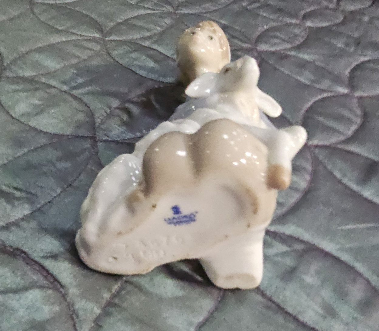 The figurine is in good overall condition. There are no visible chips, cracks, or signs of professional repair. The glaze remains bright and clear.