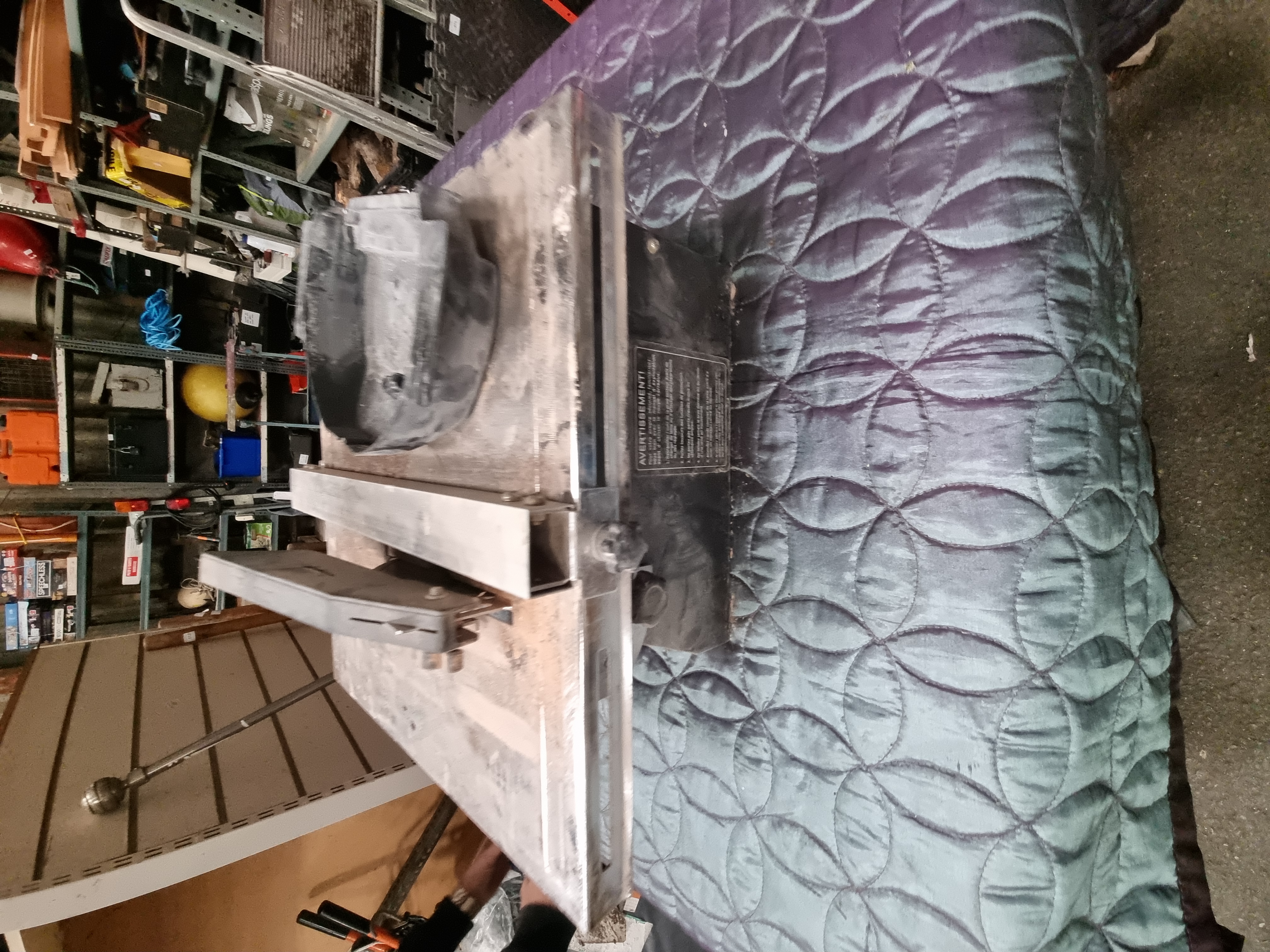 The item is in a used condition with visible signs of wear consistent with workshop use. There is significant surface oxidation and staining across the metal work surface. General workshop dust and debris are present throughout the body and components. The unit is sold as untested for electrical safety or functional working order.