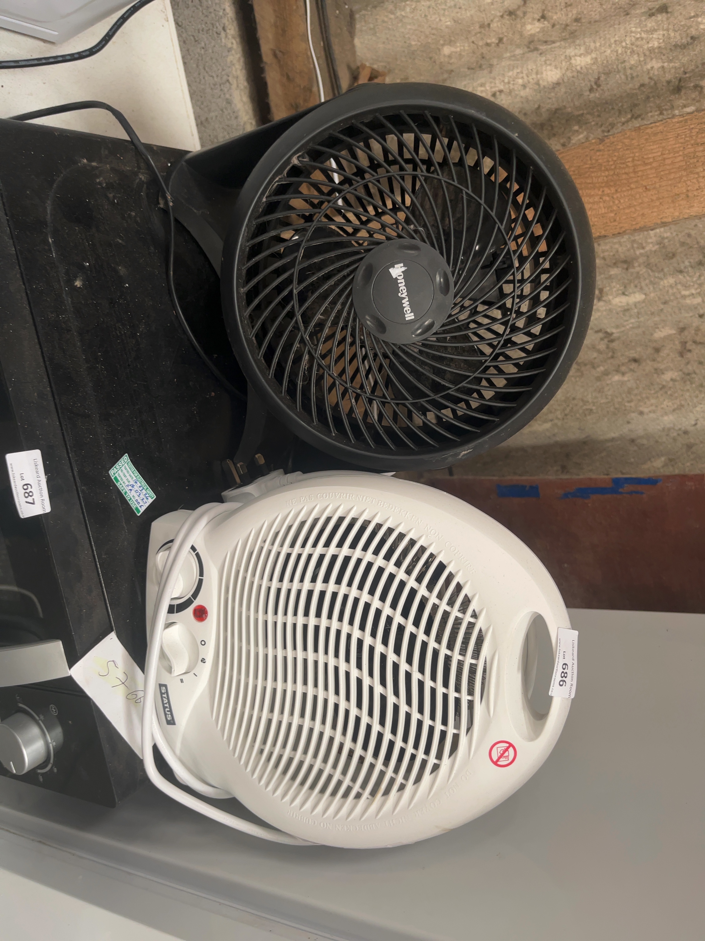 Lot 686: Two domestic electrical appliances comprising a Honeywell HT900E cooling fan and a Status FN1P-2000W fan heater