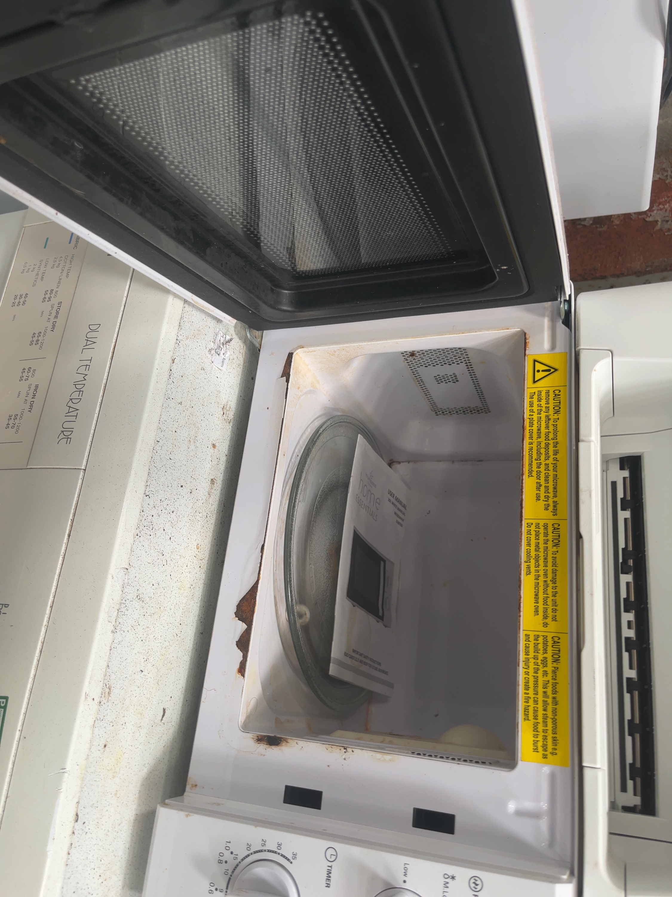 The exterior displays minor cosmetic wear consistent with age and use. The interior cavity shows significant corrosion and heavy rust concentrated on the left side of the inner frame where the door meets the housing. Internal surfaces show staining and food residue. The unit is sold as untested; power-on status and functional performance have not been verified.