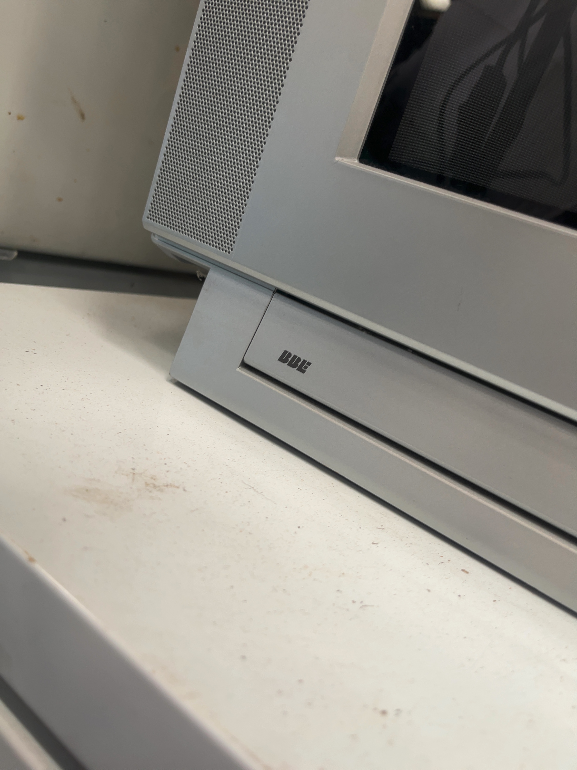 The television is in good cosmetic condition. The screen is free from significant scratches or damage. The exterior casing shows light surface wear, minor scuffs, and dust accumulation consistent with age and previous use. No remote control or additional accessories are present. The unit is untested for electrical functionality.