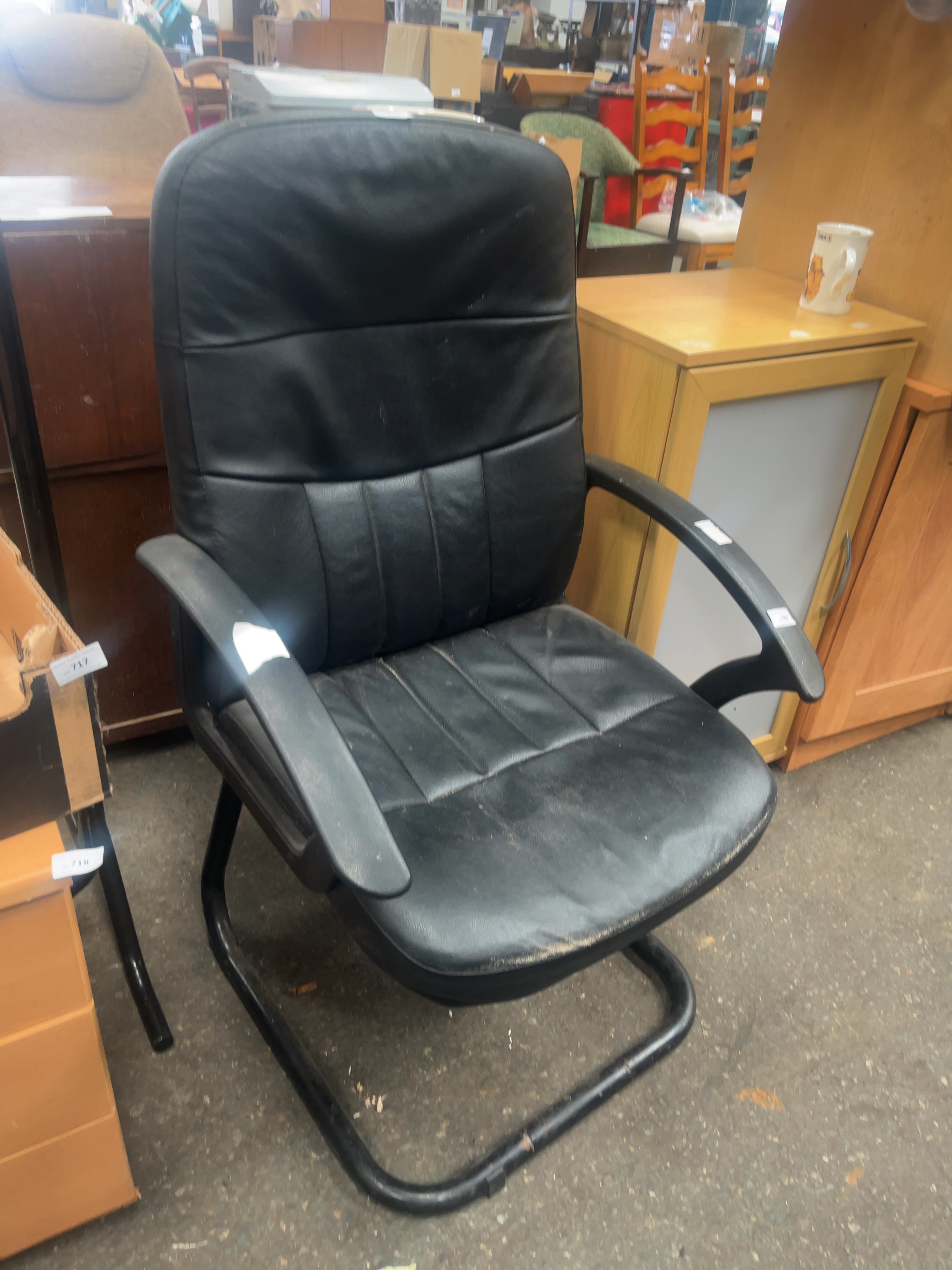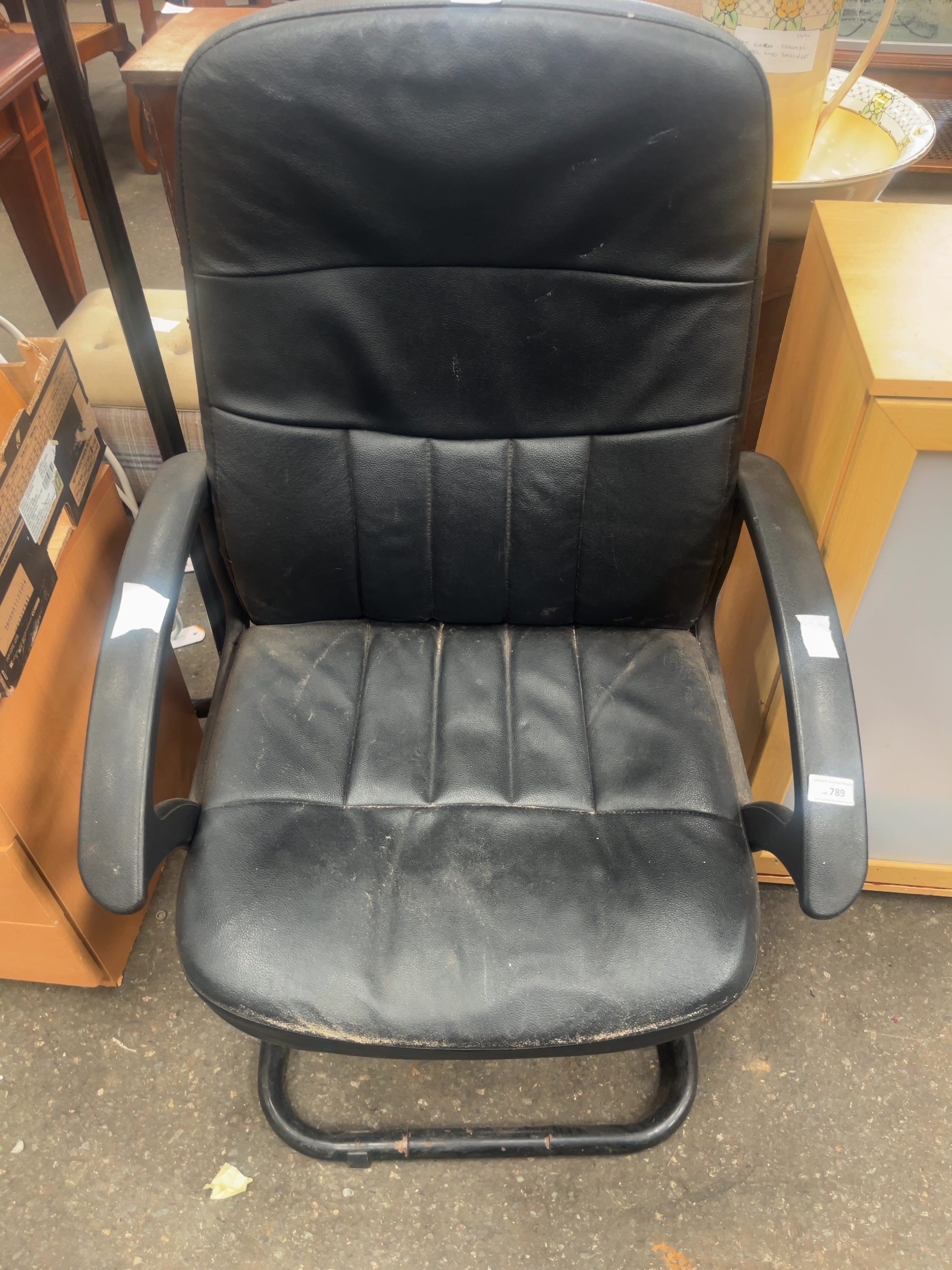 Lot 716: A contemporary black faux-leather cantilever visitor chair attributed to Boss