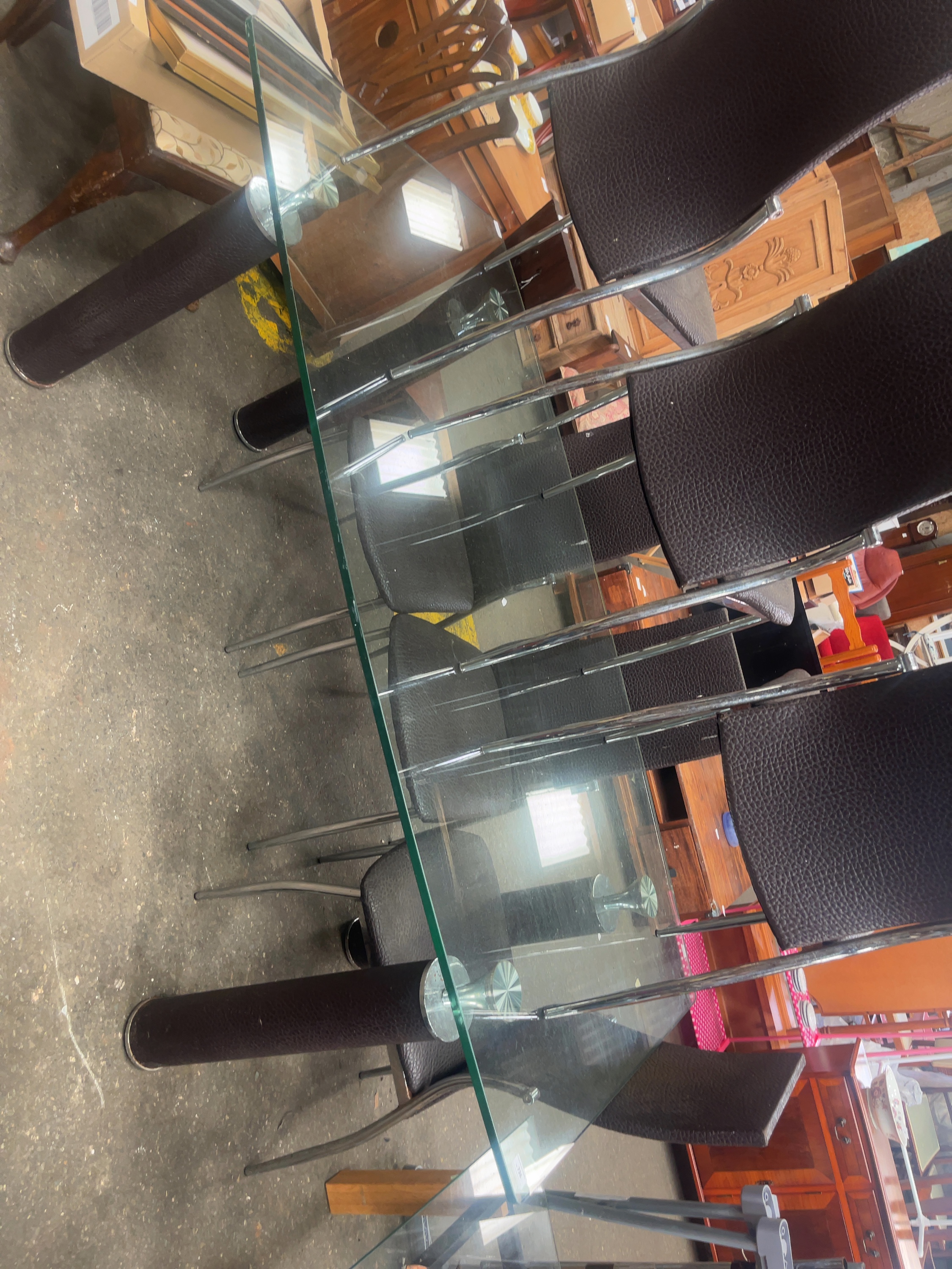 Lot 726: A contemporary glass-topped dining table and a set of six matching high-back chairs