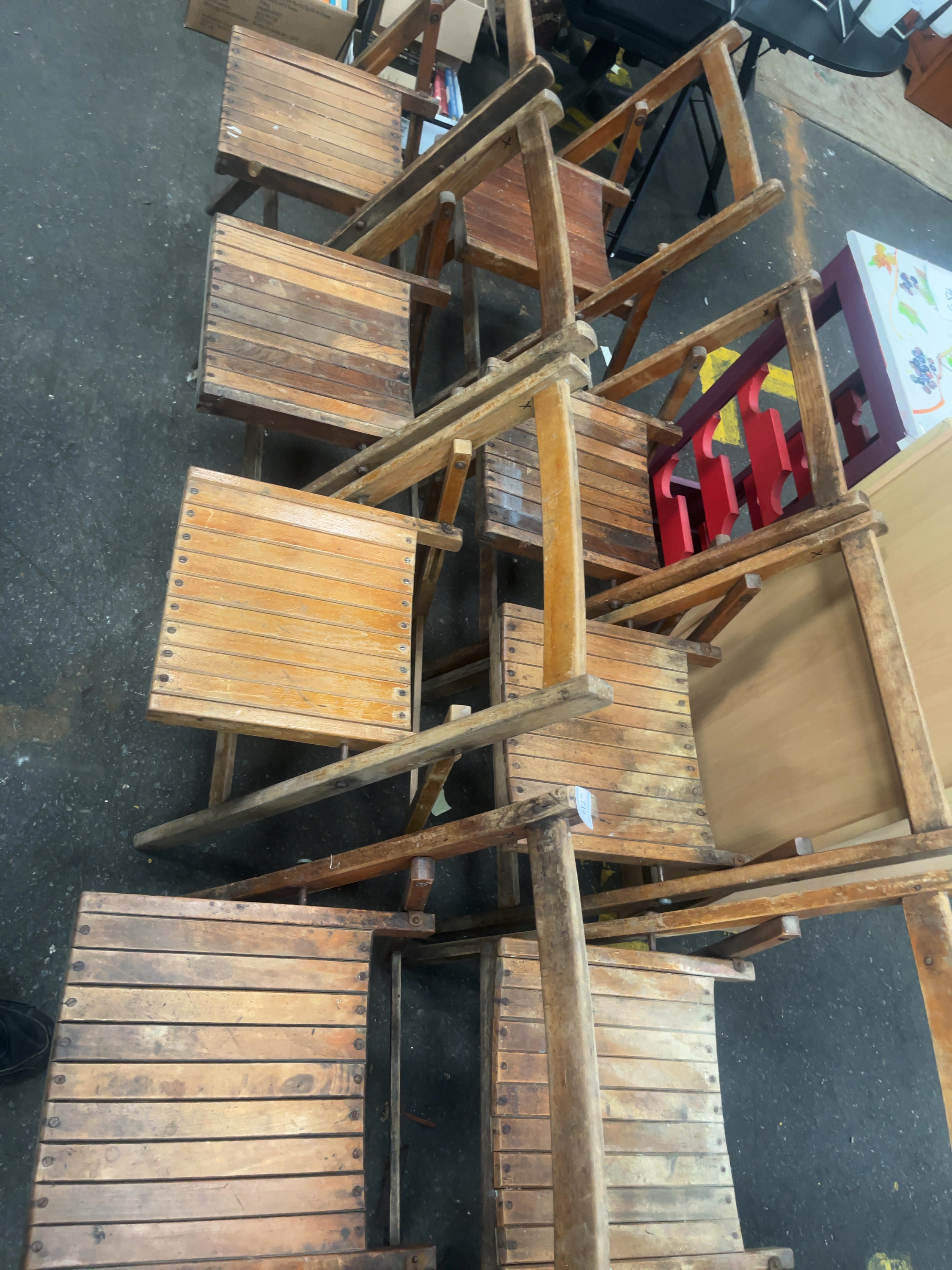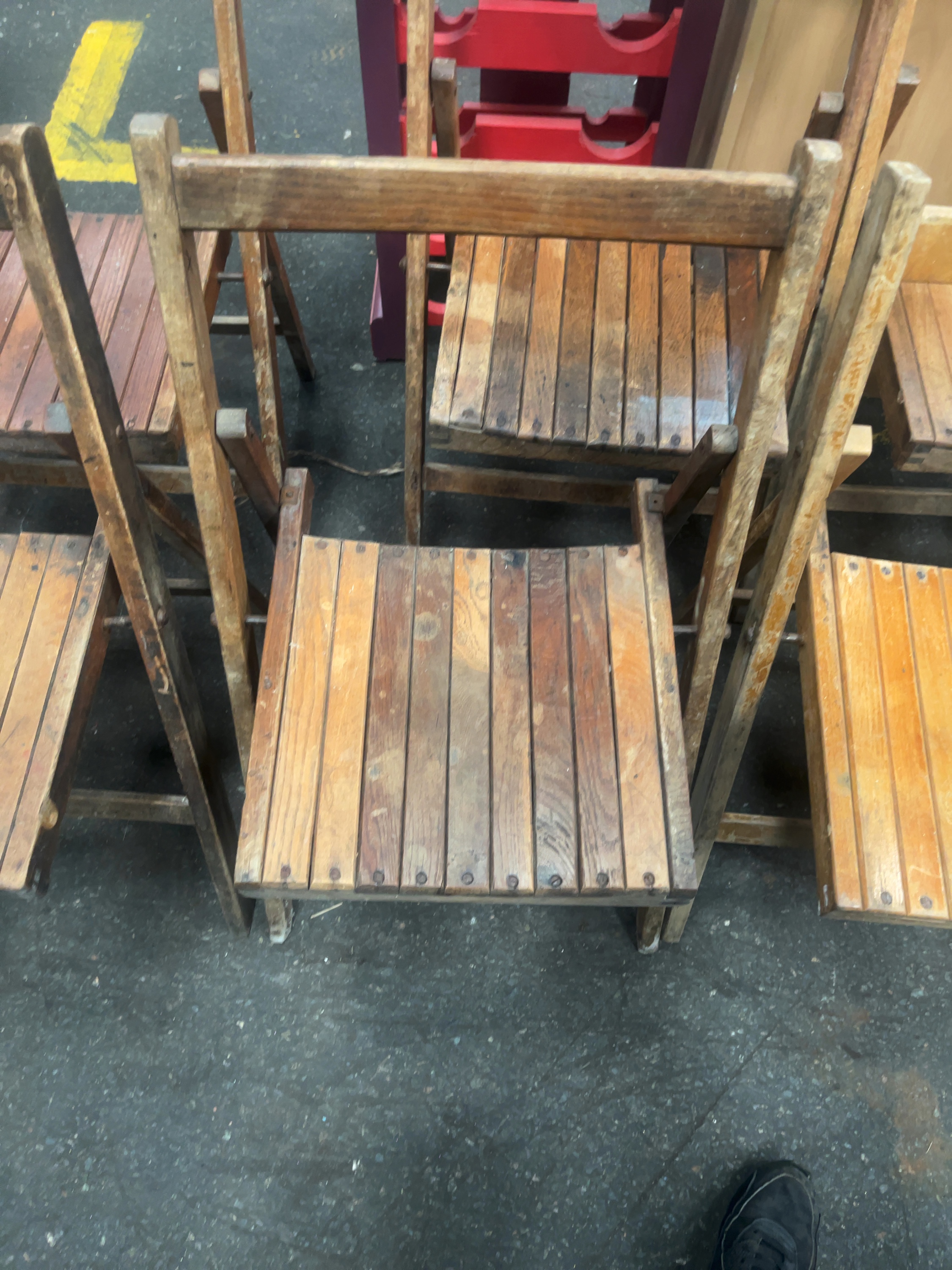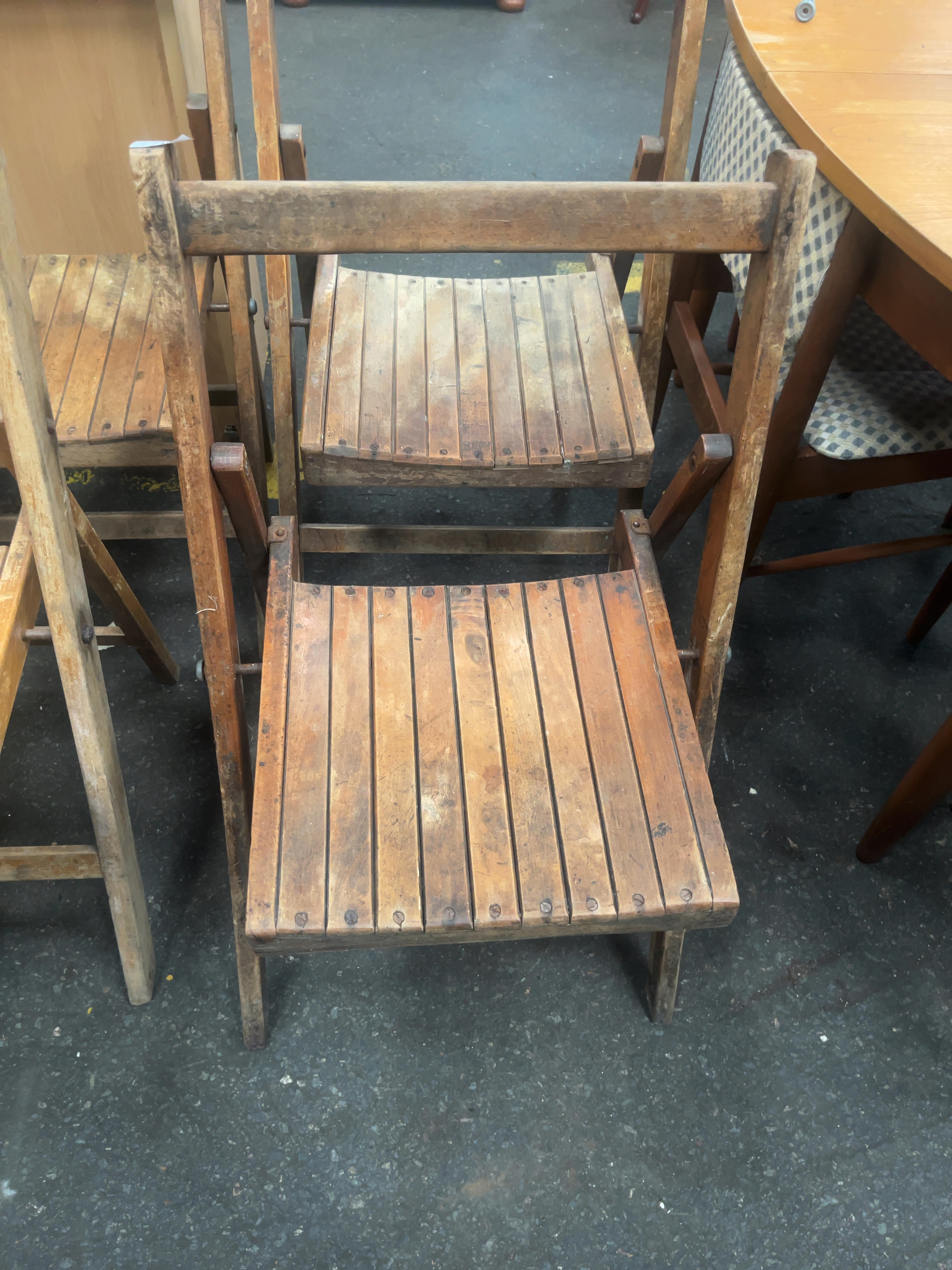 Lot 739: A Set of Eight Mid-20th Century Slatted Wooden Folding Chairs