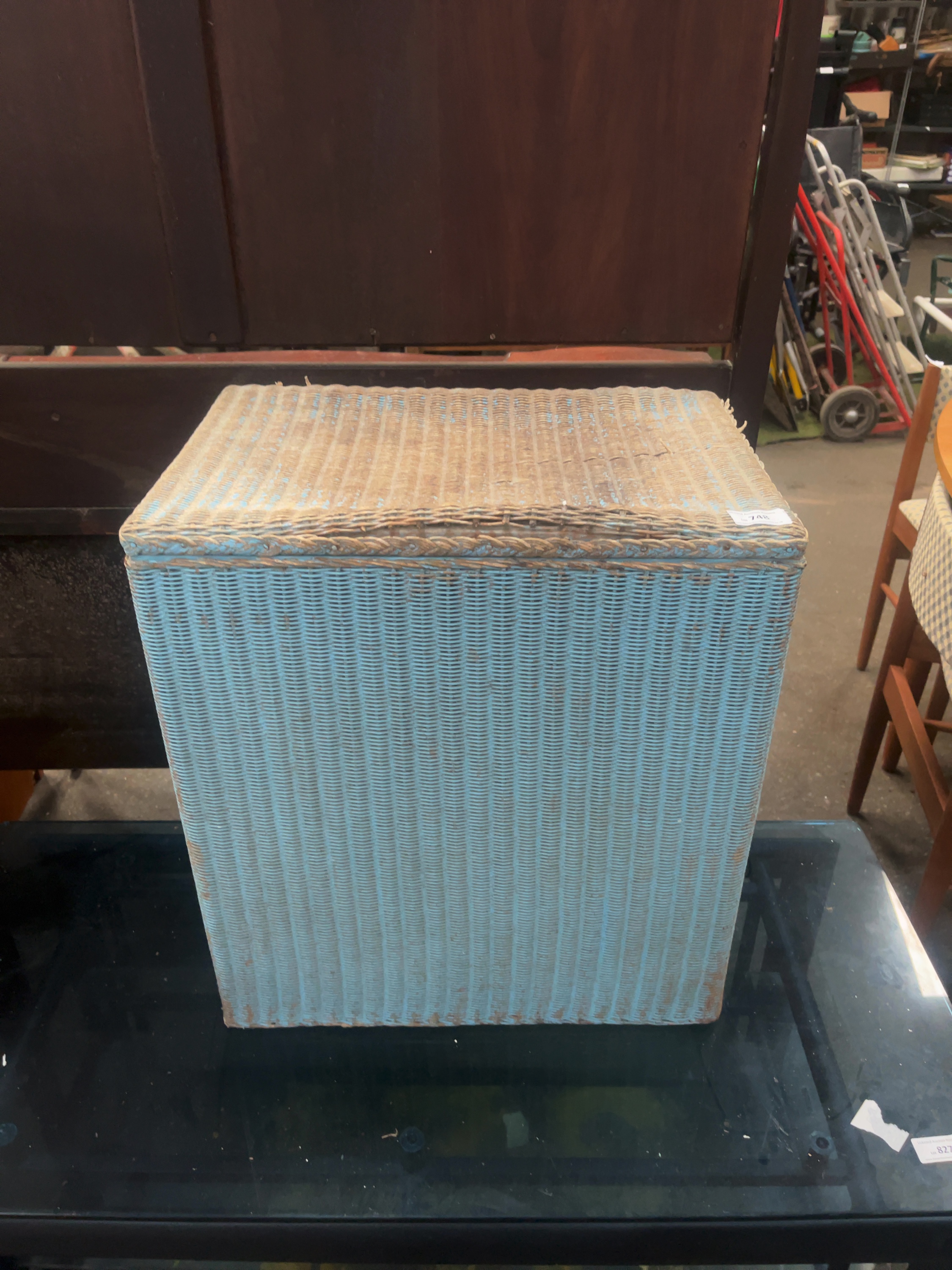 Lot 748: A mid-20th-century Lloyd Loom lidded laundry hamper by W. Lusty and Sons