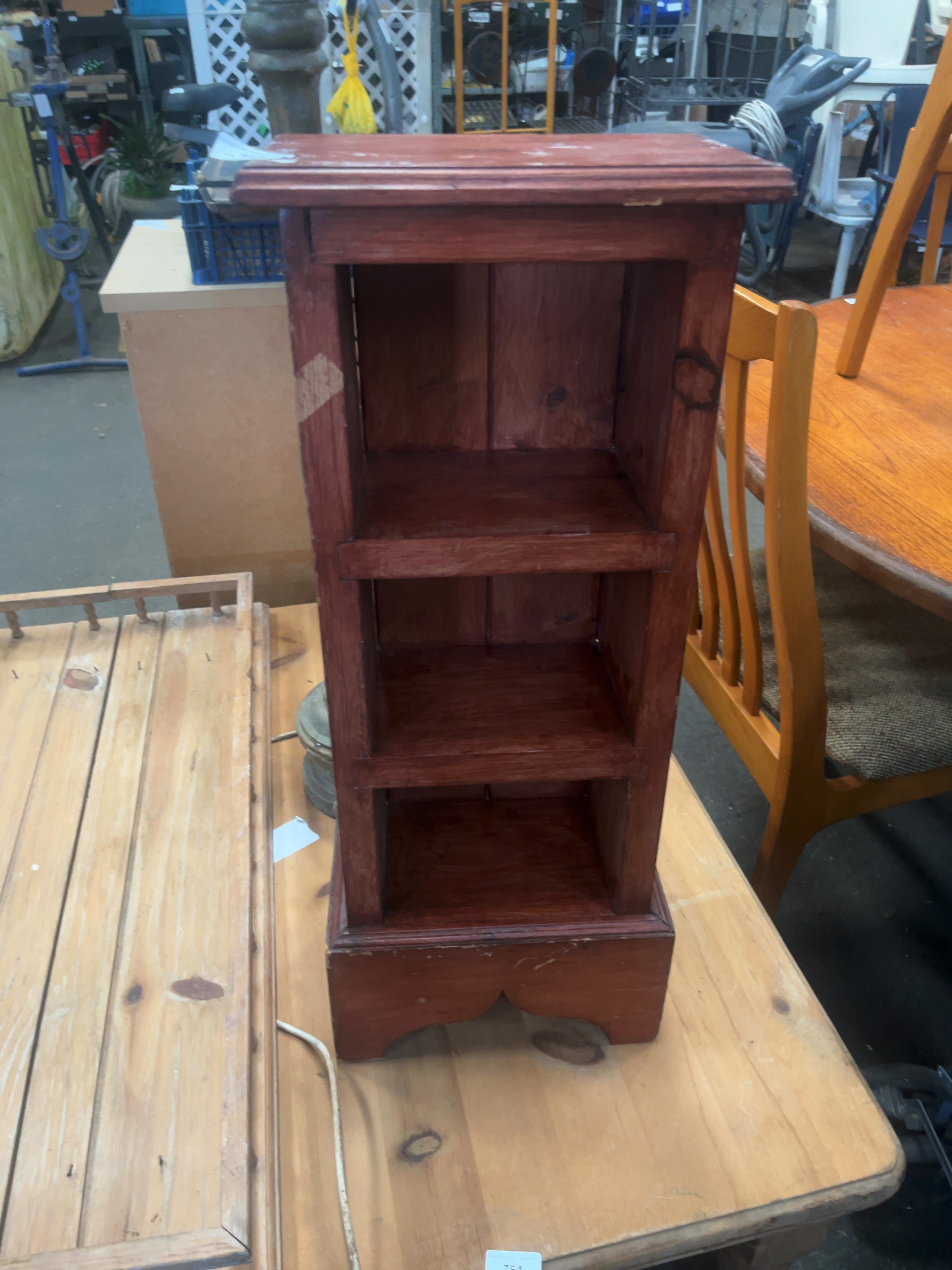 Lot 753: A Trio of Wooden Household Items including a Pine Rack, a Small Bookcase, and a Lamp Base