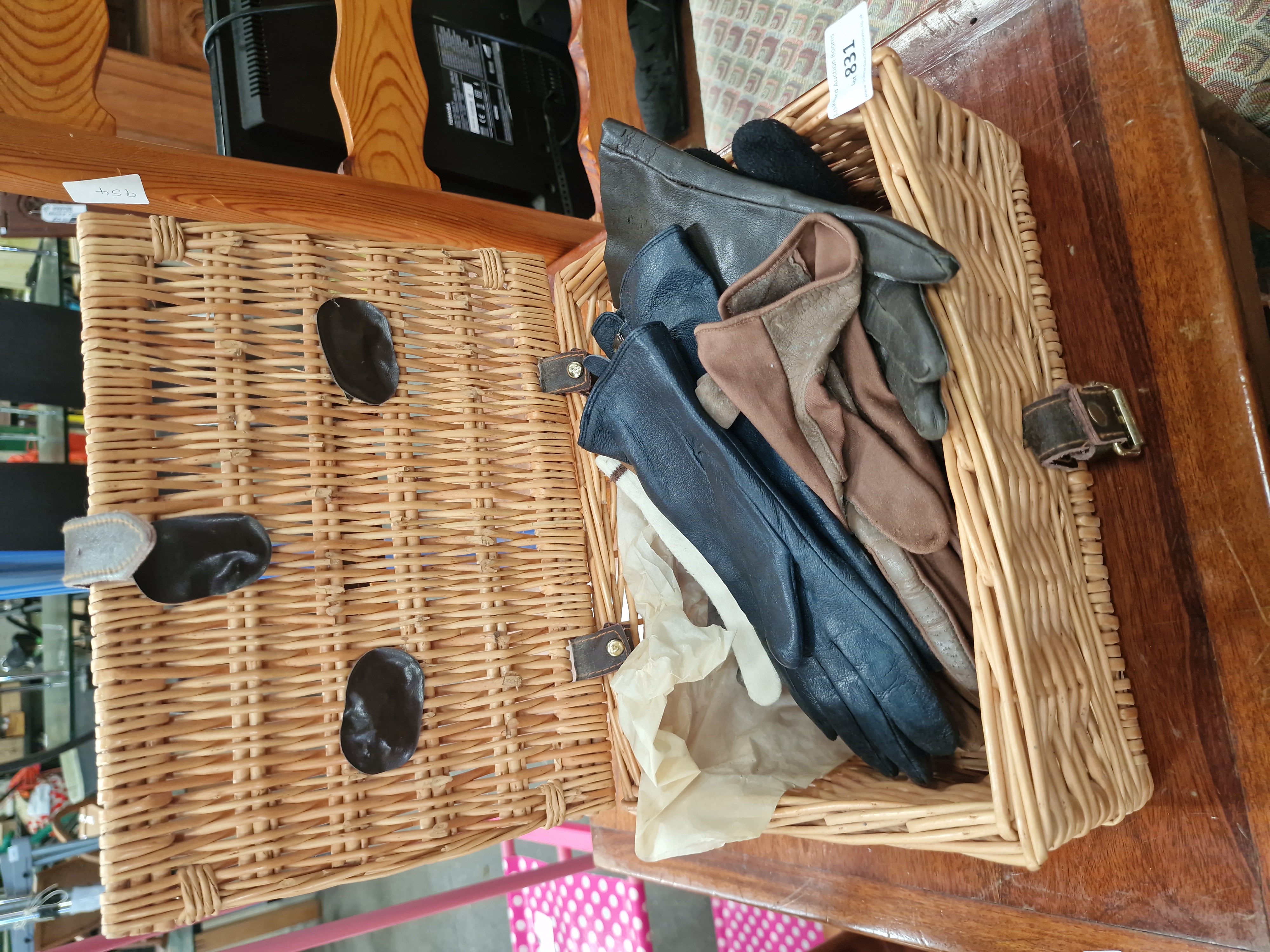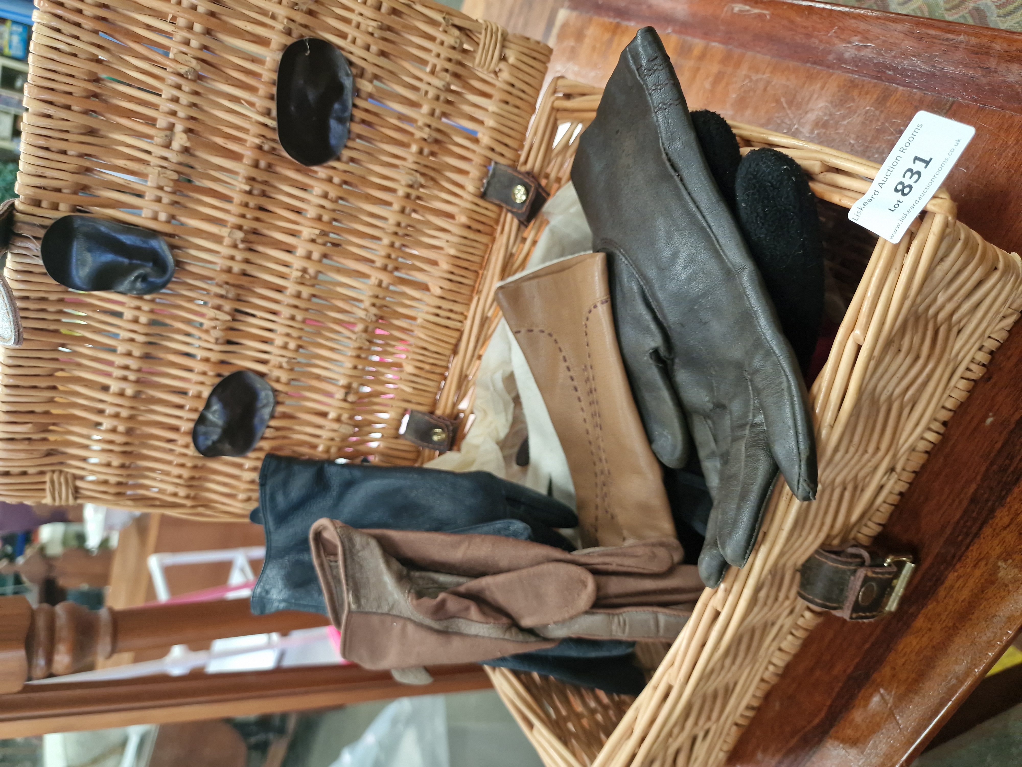Lot 831: A Collection of Vintage Gloves and a Wicker Fishing Creel