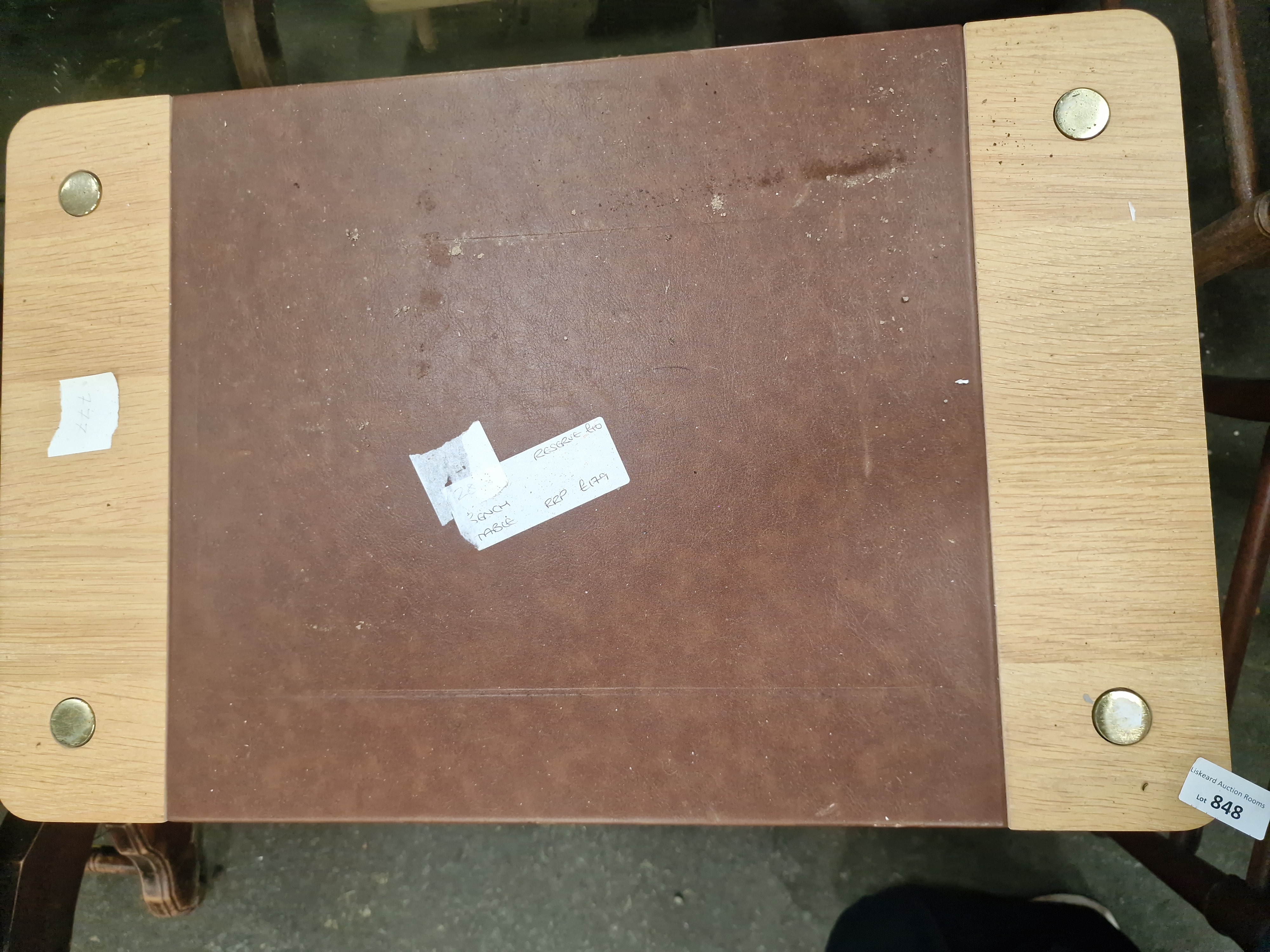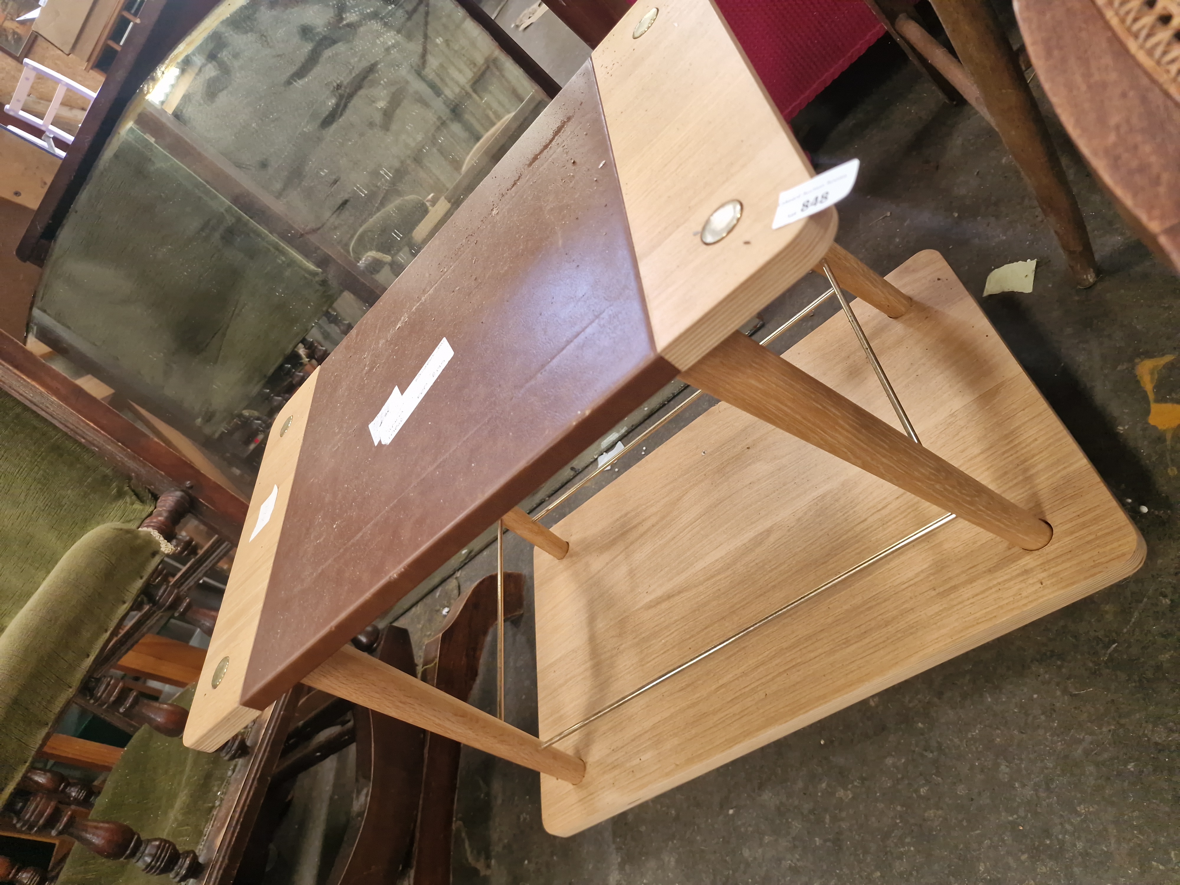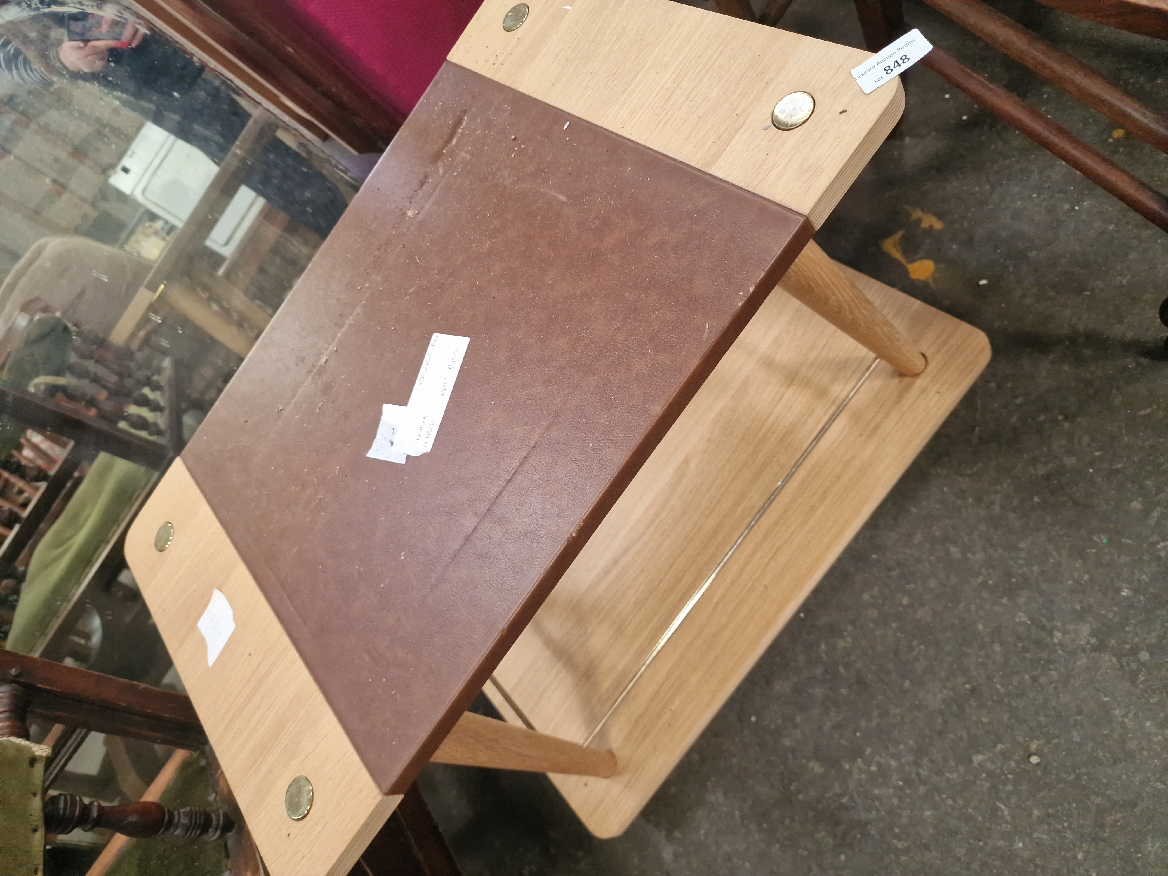 Lot 848: A contemporary two-tier side table with oak-effect finish and faux-leather inset